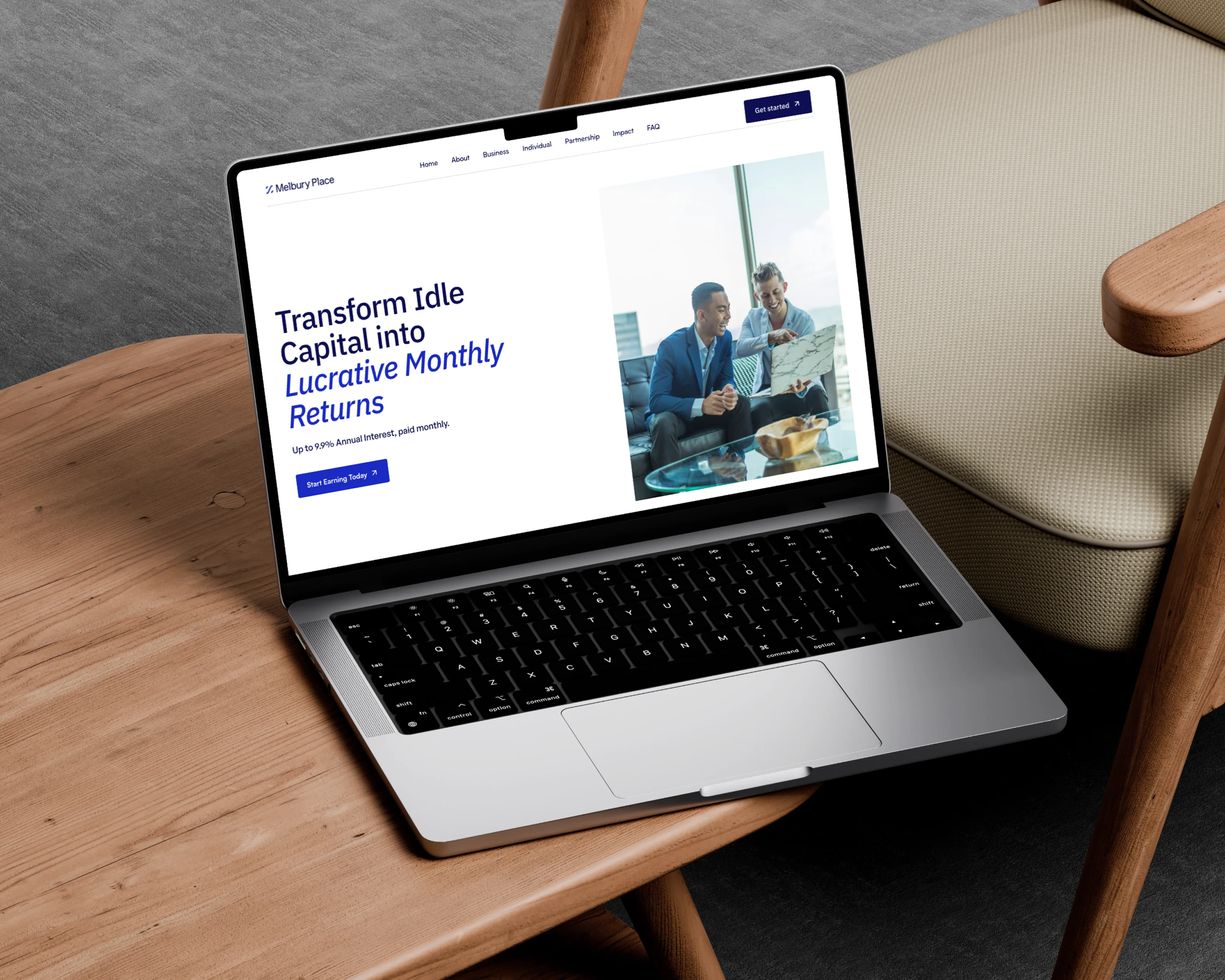 Melbury Place is an investment platform offering "set-and-forget" investing with up to 9.9% annual interest for individuals and up to 12% for businesses, paid monthly. Operating from London, they allocate funds across Mobility, Property Development, and Liquid Finance sectors. With 70+ years of combined expertise, they target high-net-worth individuals and sophisticated investors seeking passive monthly returns with a minimum investment of $15,000.