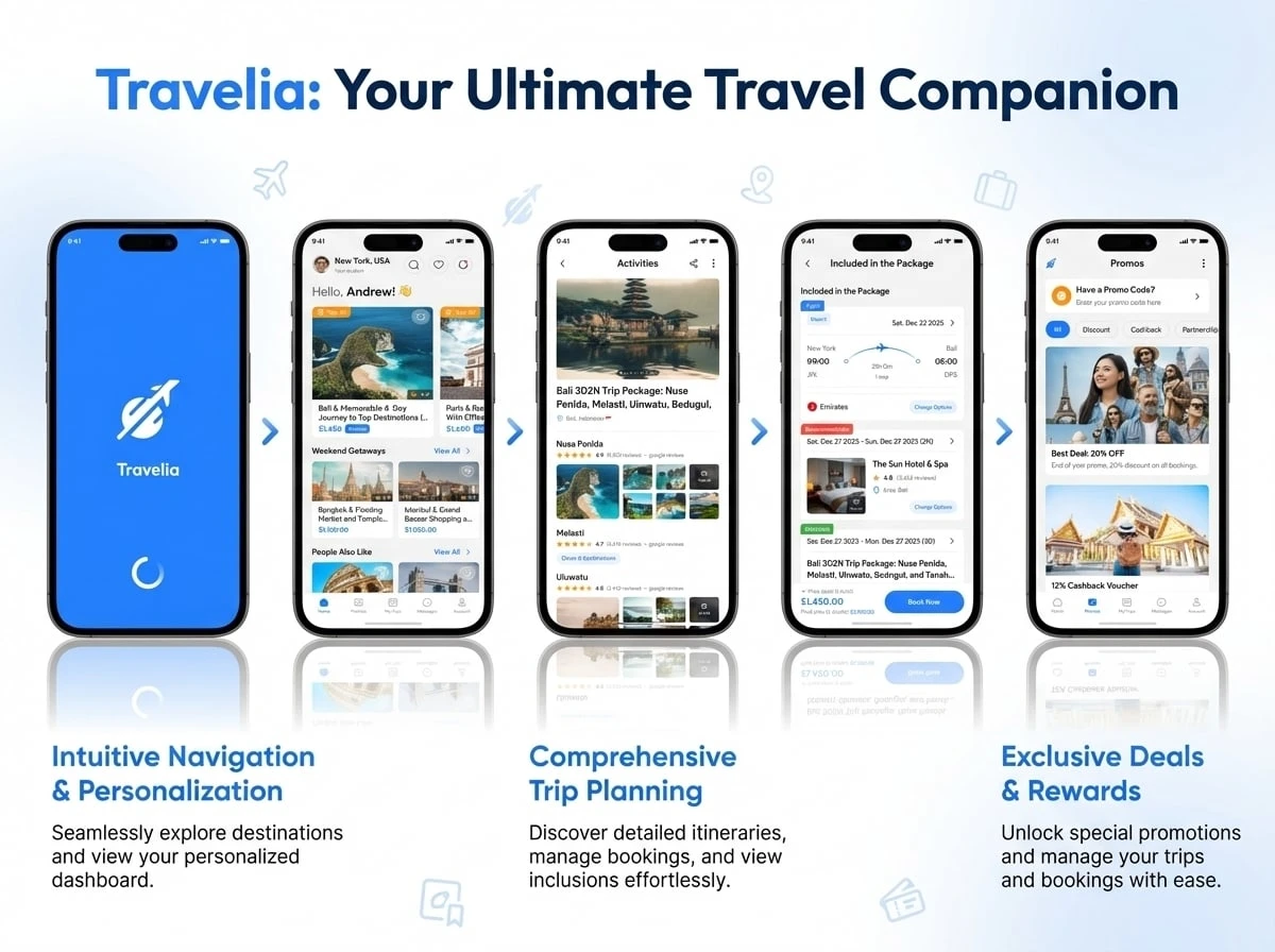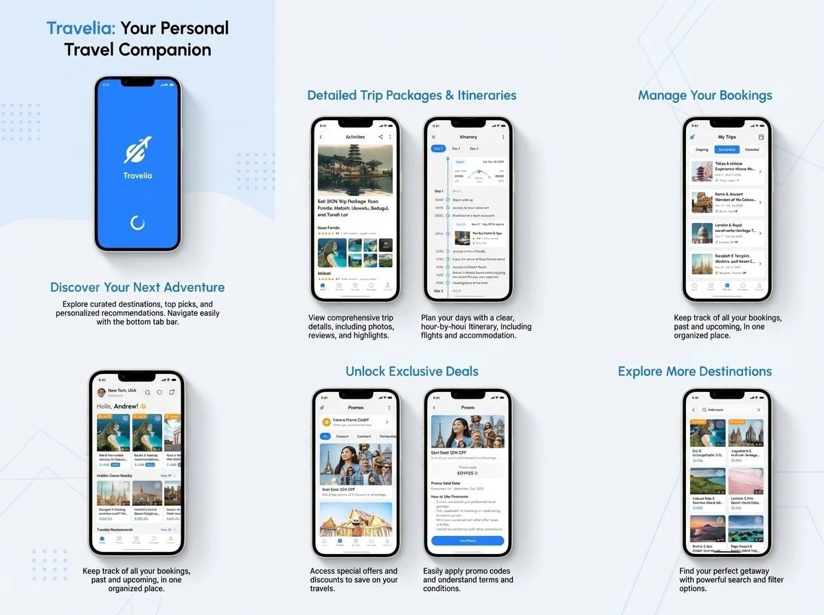 Travelia provides travelers with a simple platform to explore destinations, plan itineraries, and manage travel activities in one place. The application focuses on delivering a smooth user experience with a clean interface and efficient navigation.