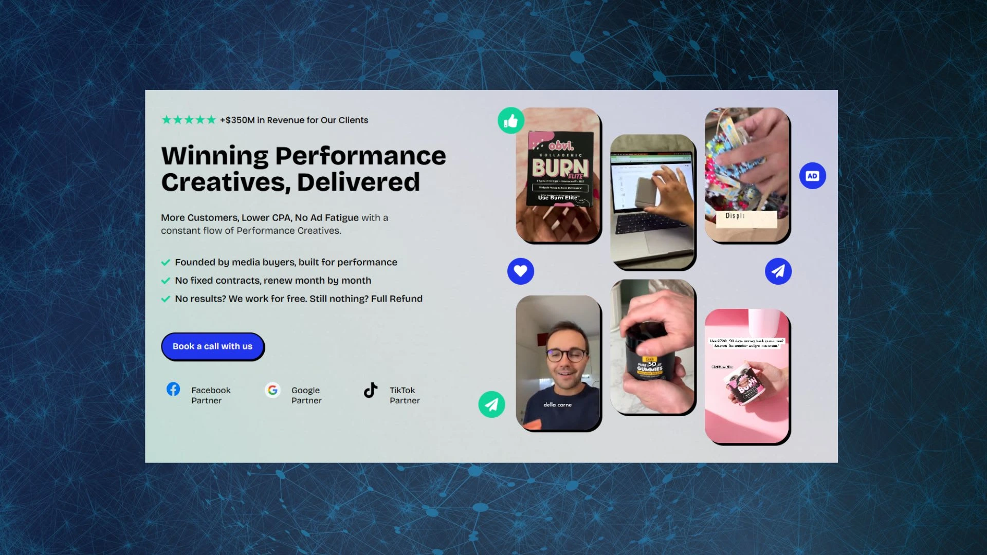 Lead end-to-end ad ops for $350M+ agency; built testing loop cutting CPA 27% & scale on TikTok; ship 70+ fresh creatives monthly.