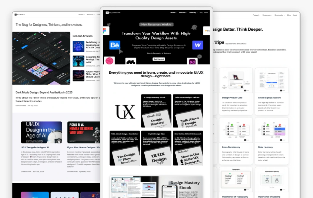 sharing design resources, UI/UX design tips, blogs, podcast, ebook and much more for designers.