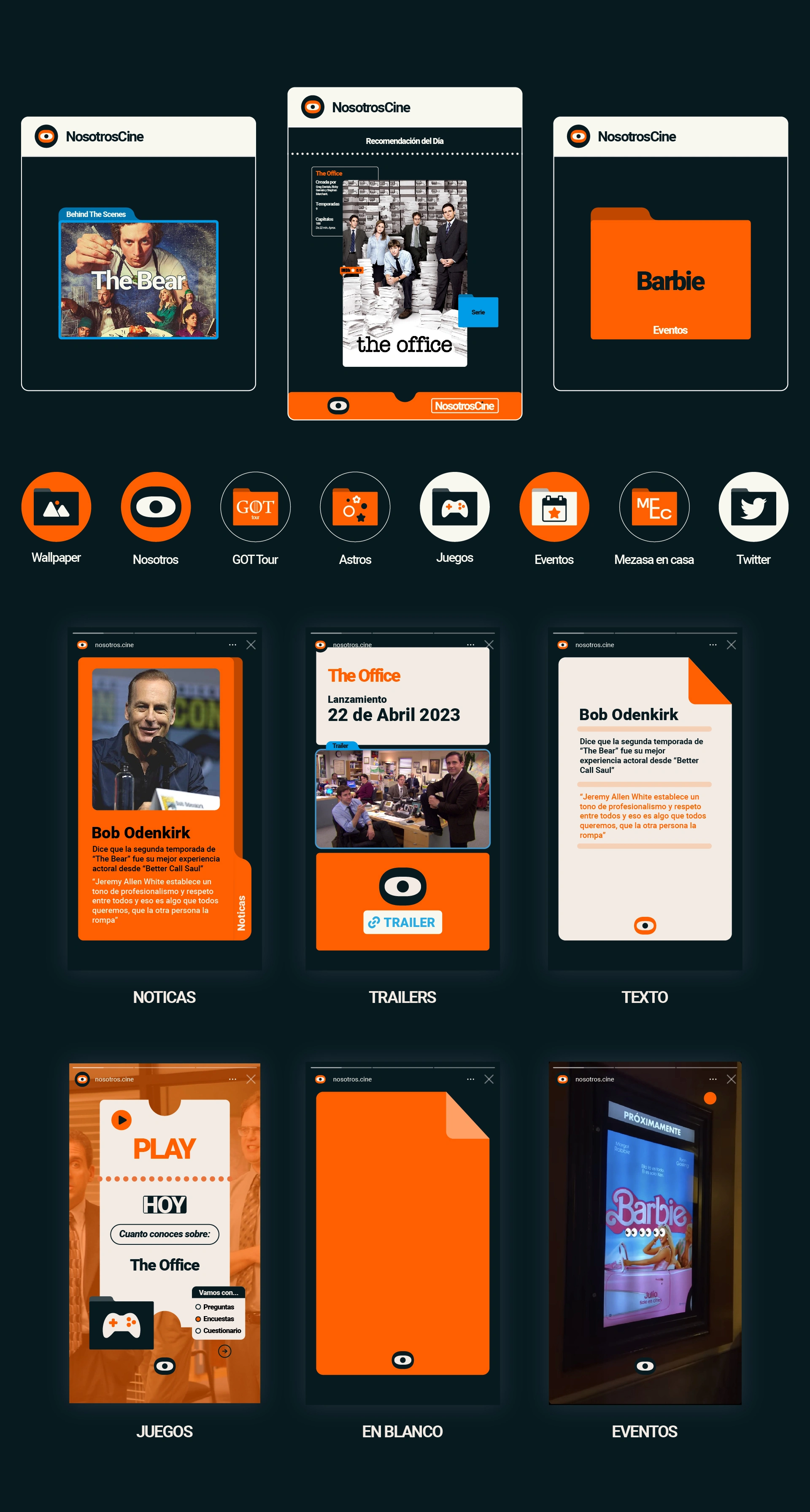 Streamlined Editable Templates: To simplify content production, I created a set of editable templates in Adobe Illustrator. These assets enable the Nosotros Cine team to efficiently produce new content daily by updating text and images, ensuring their frequent publishing schedule remains visually cohesive.