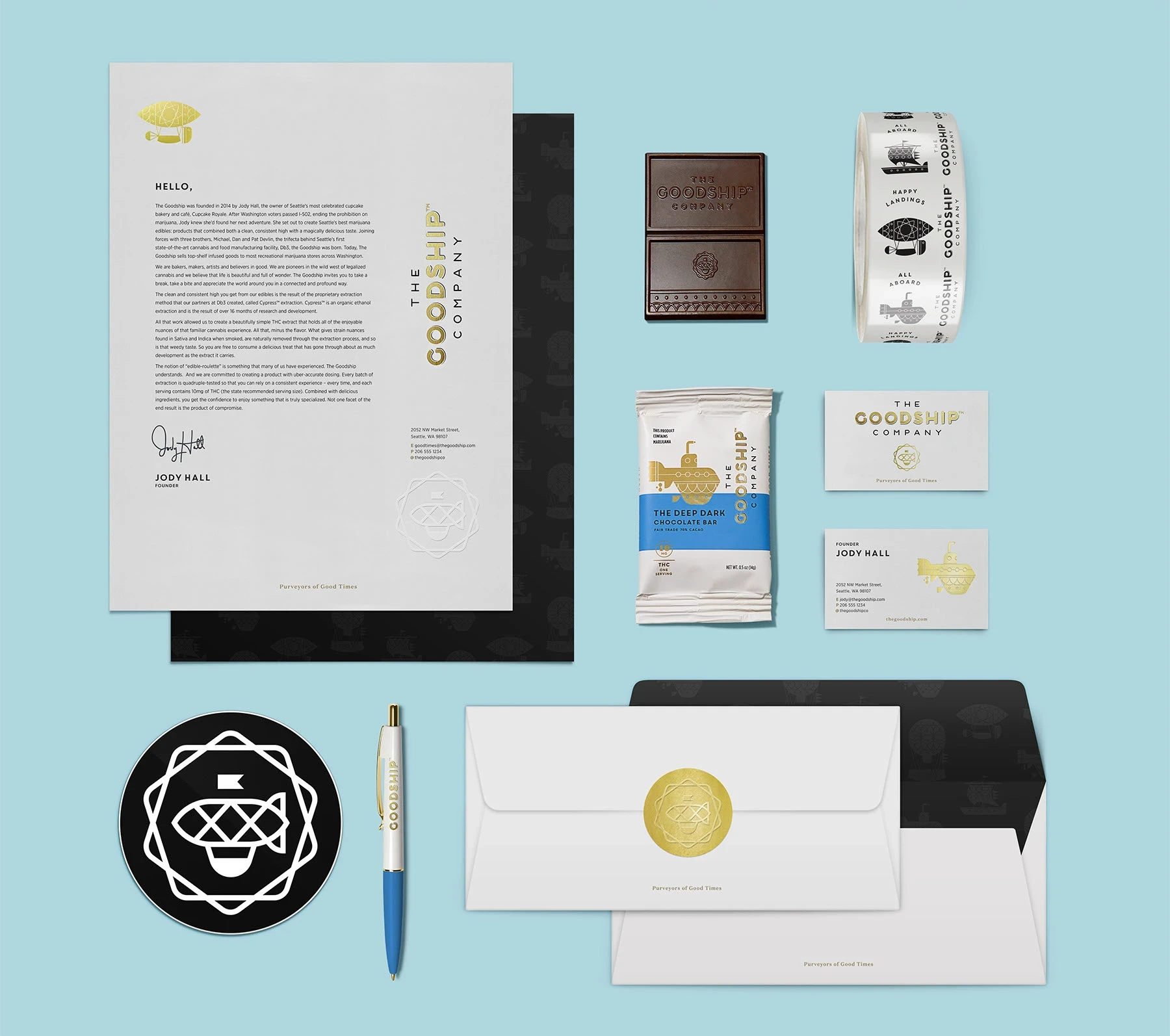 The Goodship Company are purveyors of gourmet baked goods and chocolates infused with THC. It was essential that their branding match the quality and experience that they provide. By shedding any remaining stigma surrounding recreational cannabis, Goodship offers an approachable, yet refined way to enjoy legal cannabis.
