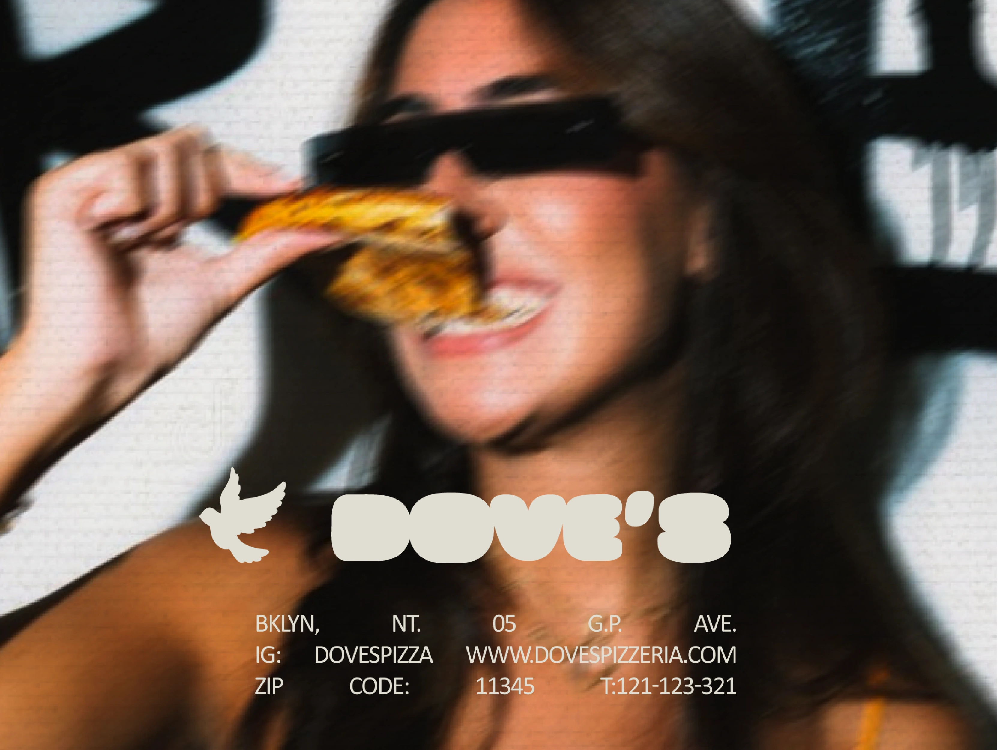 Rebranding Dove's Pizzeria to enhance its 'cool girl' vibe and social media presence. Project was made as a rebrand and booked as a brand in a week.