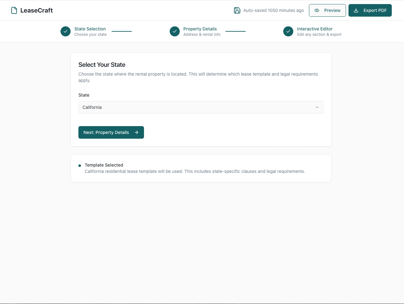 LeaseCraft is an innovative web application designed to streamline the lease creation process for landlords and property managers. By integrating an AI assistant, users can effortlessly generate customized, legally compliant lease agreements tailored to their specific needs. The platform guides users through inputting property and tenant details, after which the AI crafts a comprehensive lease document, complete with state-specific clauses. Additionally, the AI review feature analyzes the lease for potential issues, ensuring accuracy and compliance.