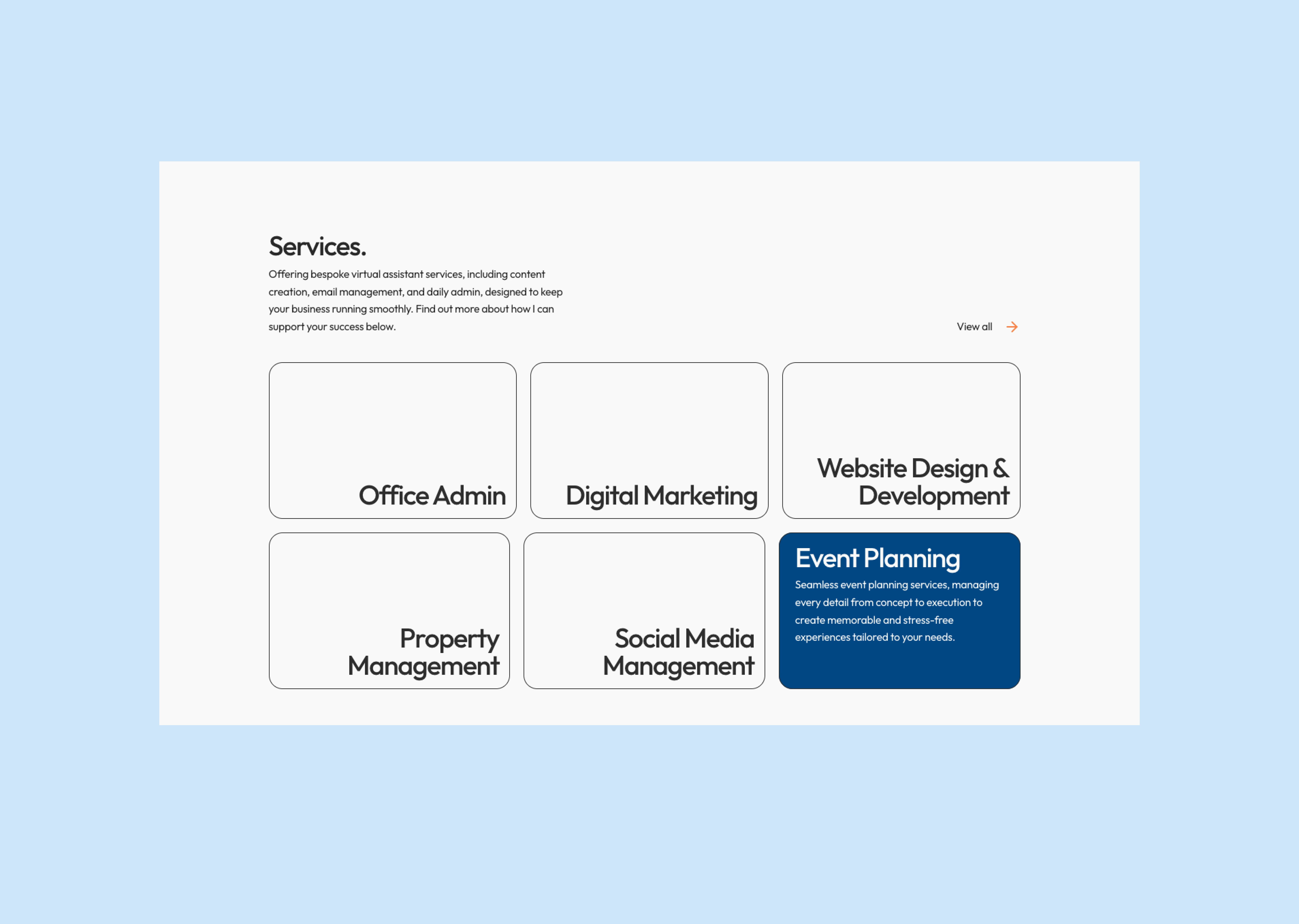 I designed and developed a clean, modern website for a Virtual Assistant service, combining a professional feel with a vibrant, approachable edge. Built in Framer and delivered in just three days, the project showcases rapid execution without compromising on quality.