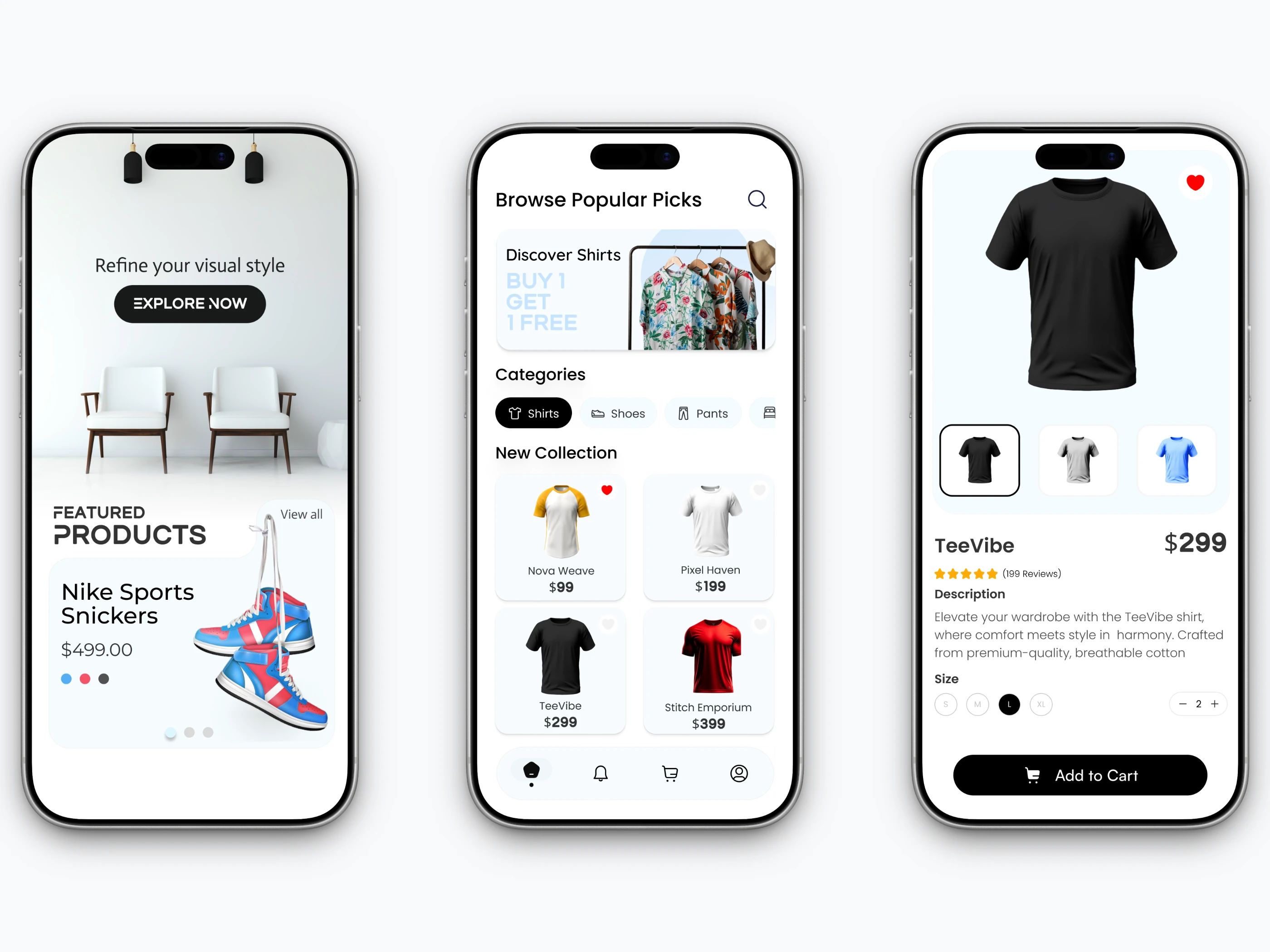 A modern and engaging mobile app UI designed for online shopping. It highlights clarity, usability, and smooth navigation for the perfect shopping experience.