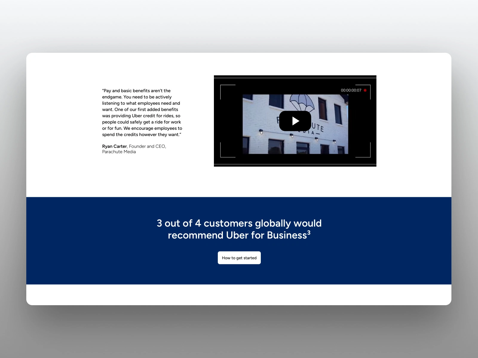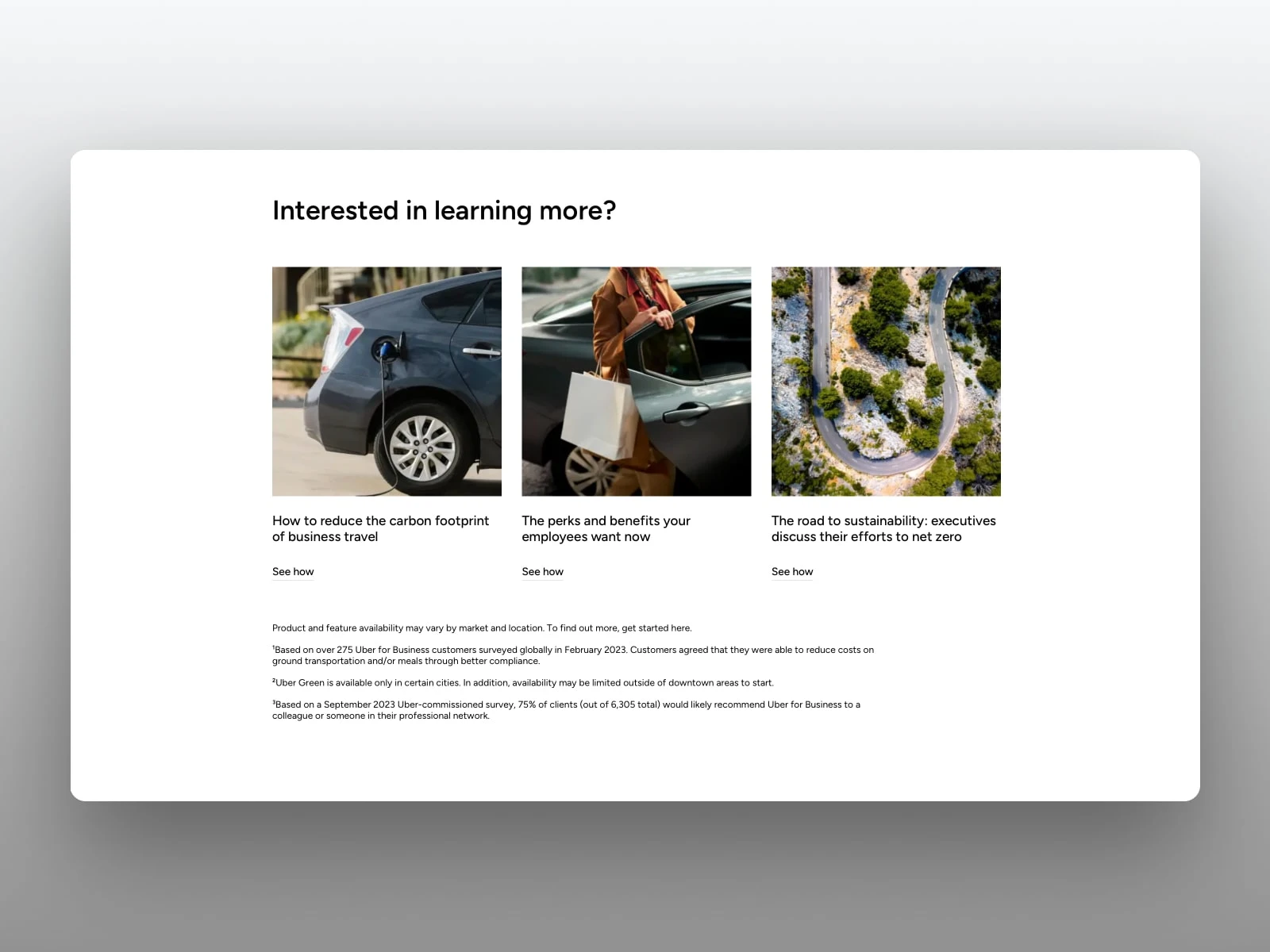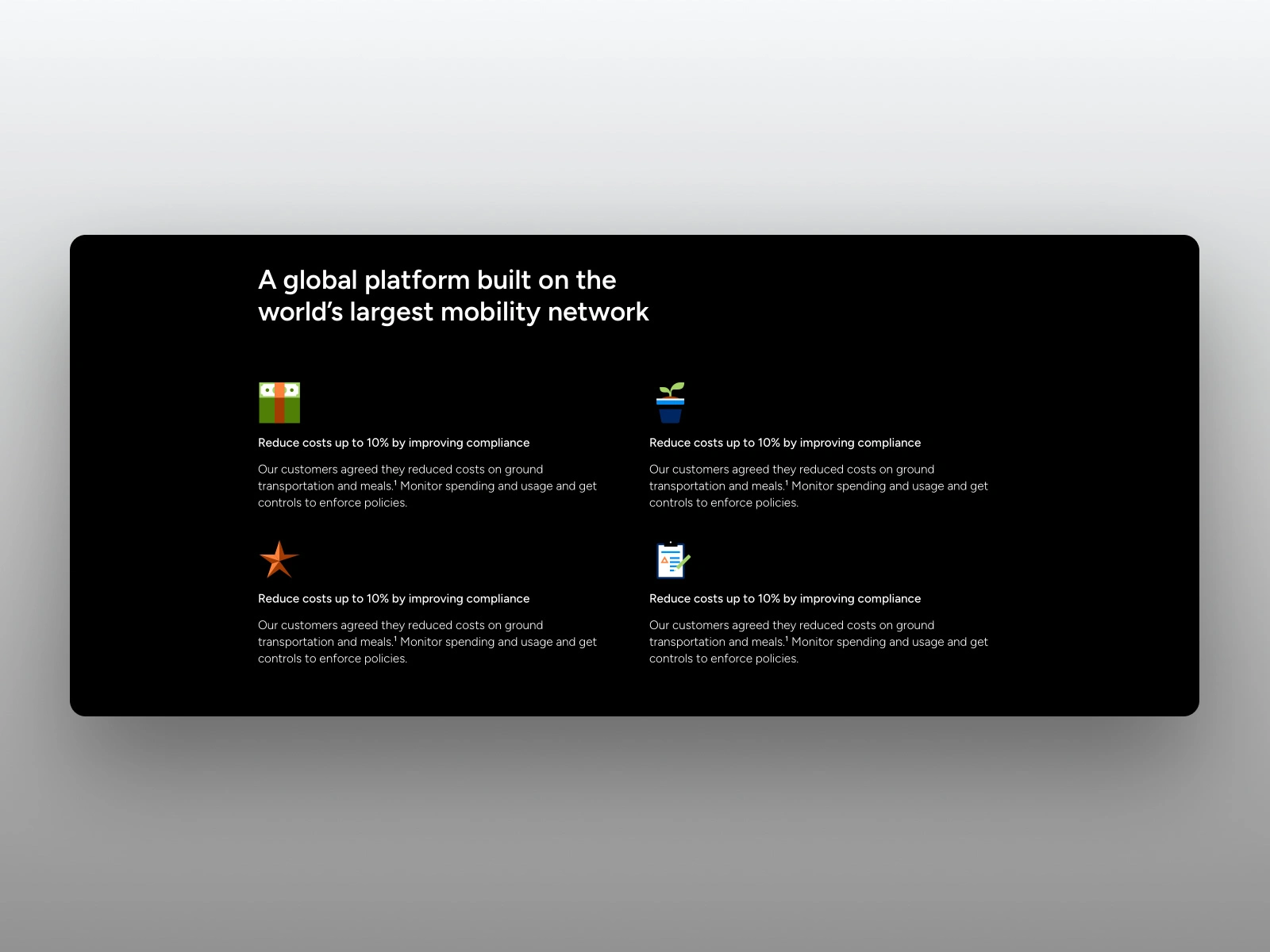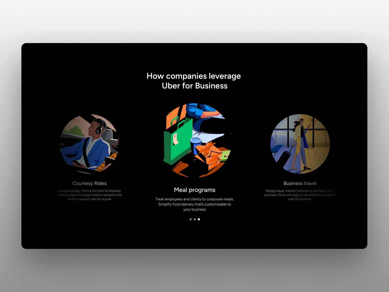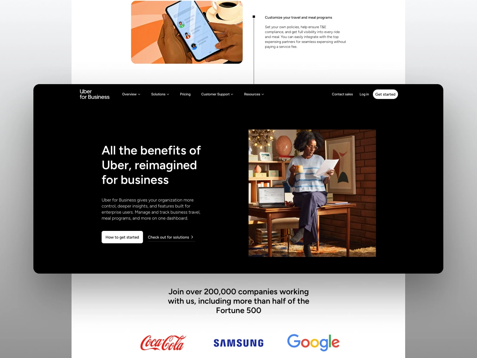 I started by reviewing Uber for Business’s current website and brand materials, mapping their key offerings (travel, meals, commute, vouchers) and identifying user journeys for enterprise decision-makers. Together with the Framer team, we defined the objective: convey “the best of Uber, for business” while showcasing analytics, savings, integrations and program capabilities.