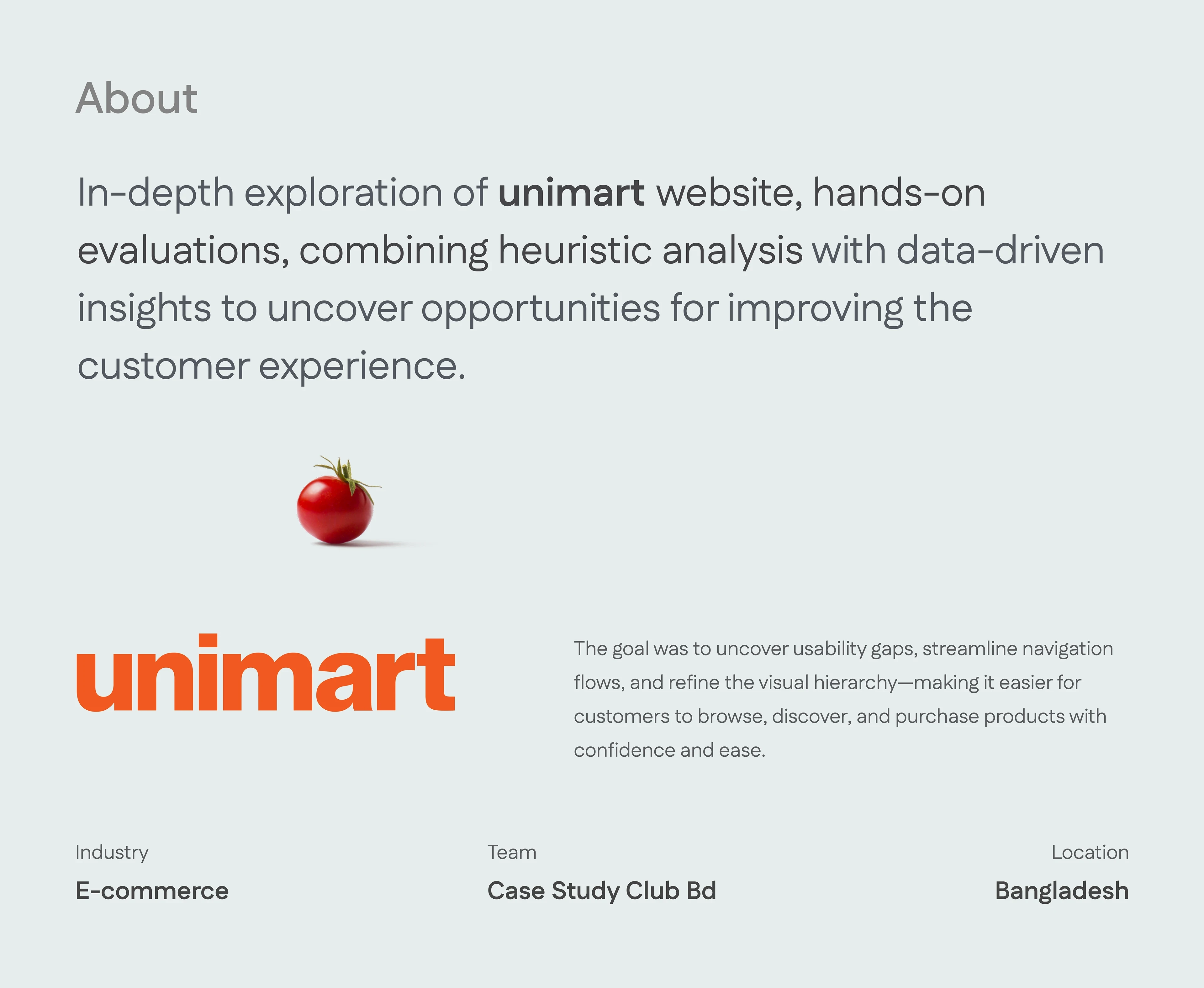 In-depth exploration of unimart website, hands-on evaluations, combining heuristic analysis with data-driven insights to uncover opportunities for improving th…