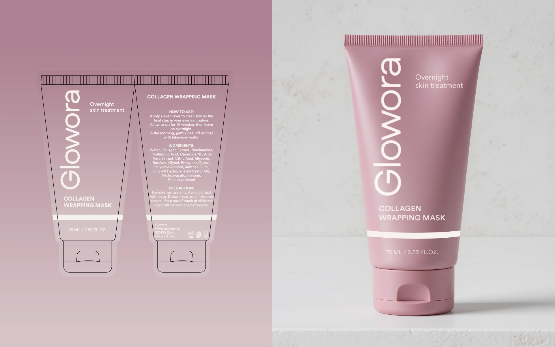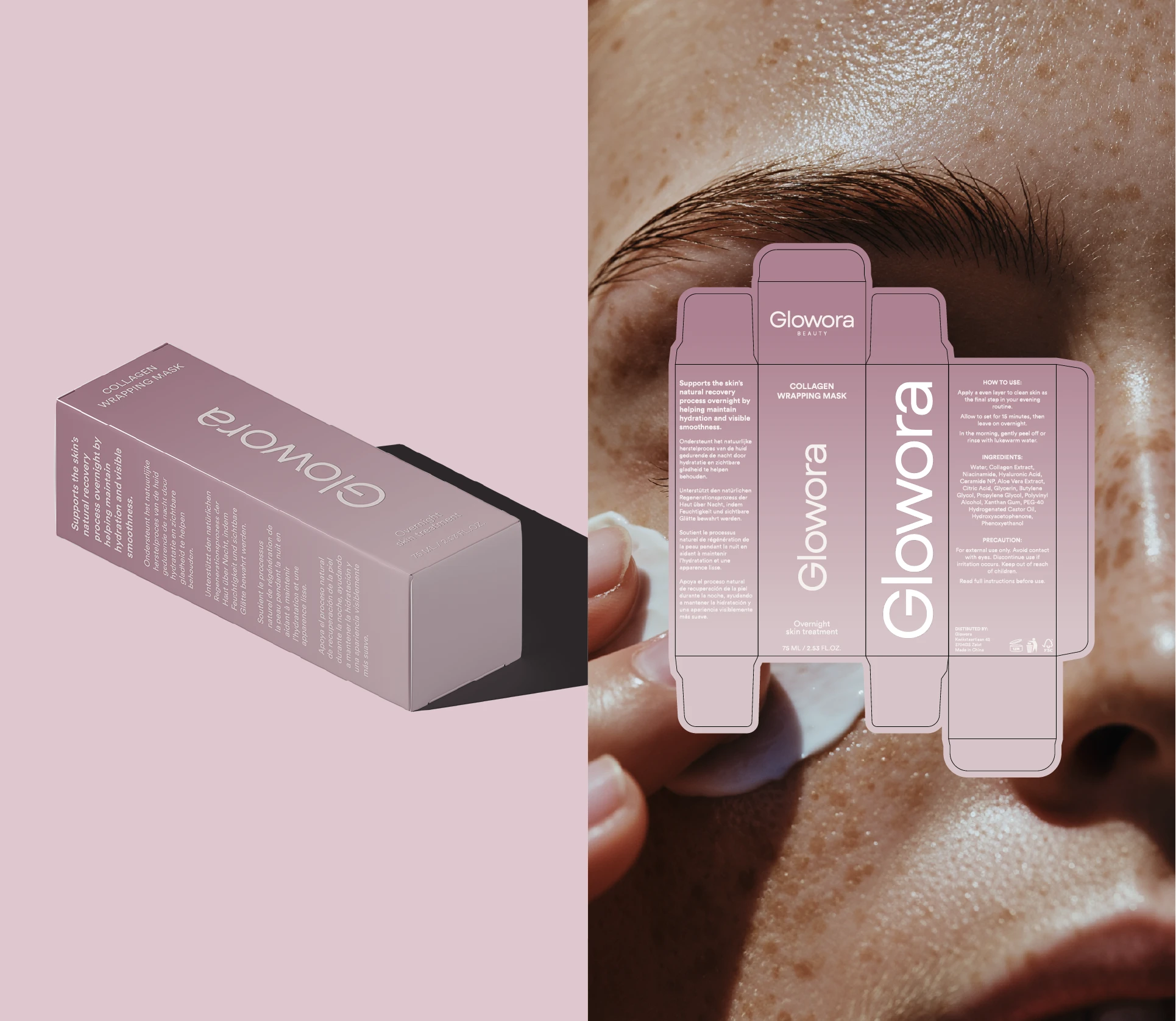 The final outcome is a cohesive packaging and label system that brings Glowora’s brand to life with clarity and intention.
