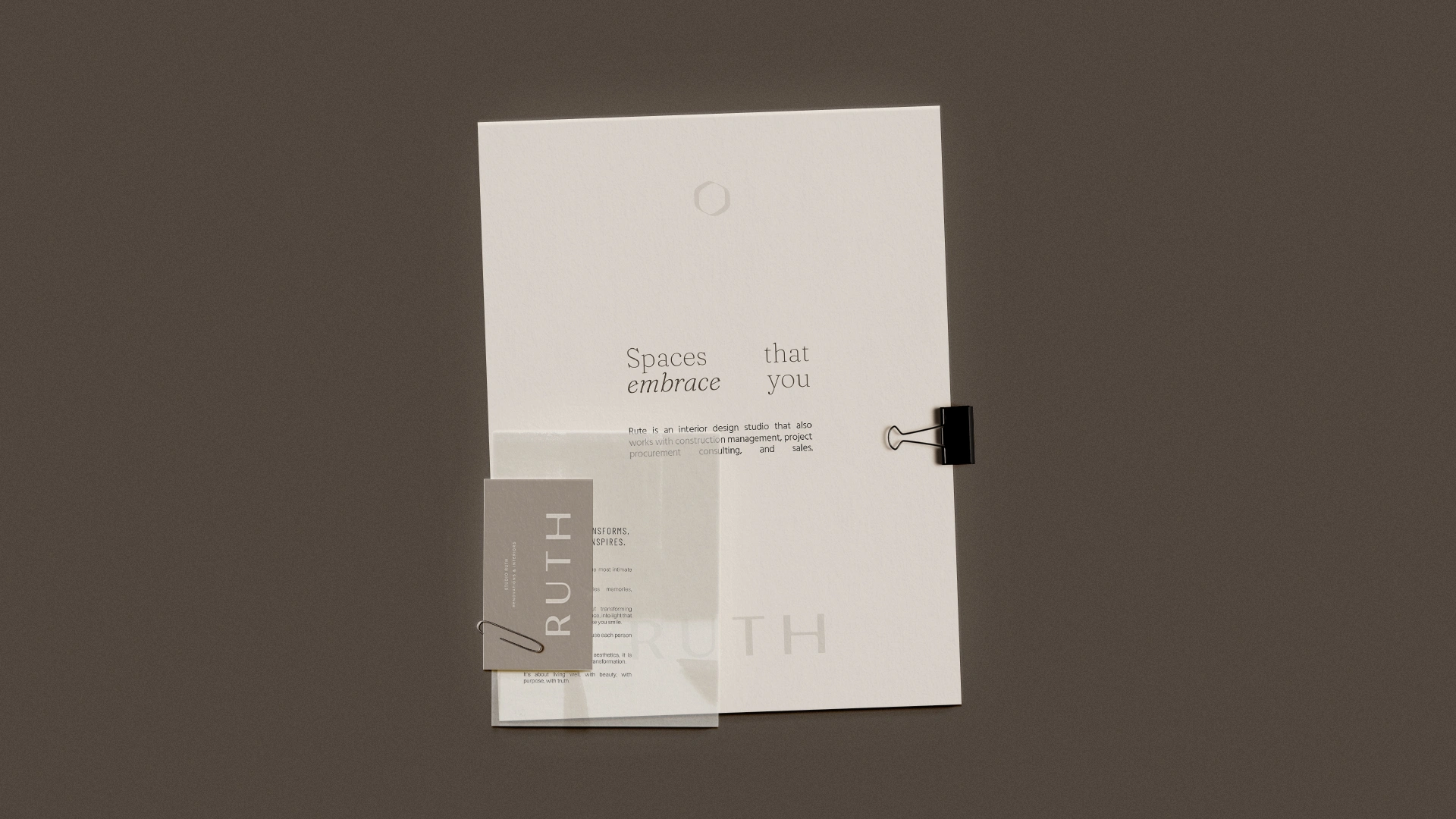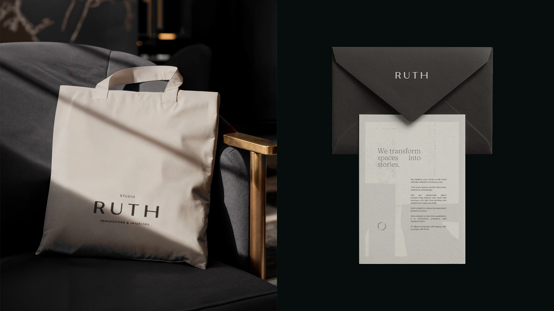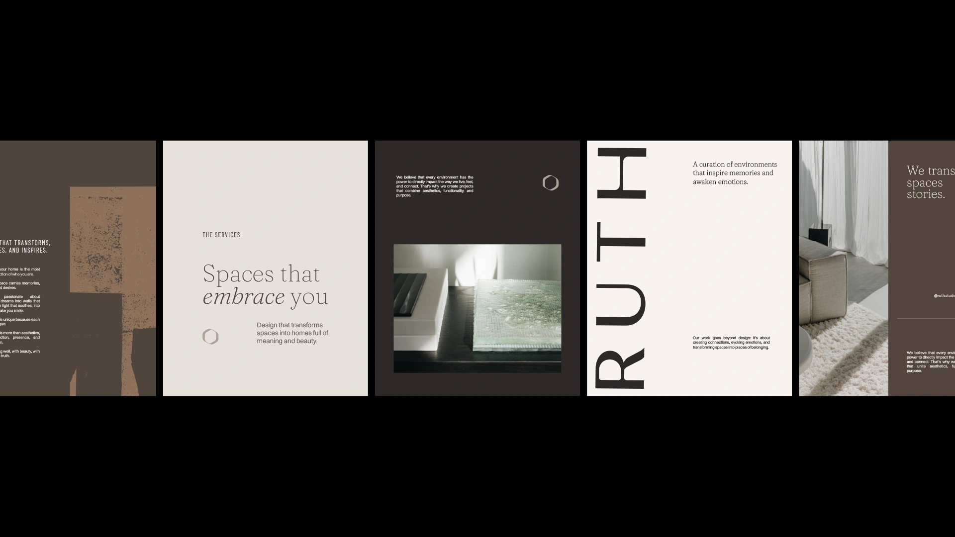 Ruth is an interior design studio that transforms spaces into stories. The visual identity was crafted to reflect its sensitive, human, and sophisticated essence, uniting minimalism, intention, and warmth. The symbol, inspired by an organic frame, represents authenticity, reflection, and a design approach that places the client at the center. The earthy and neutral palette reinforces the studio’s elegant and timeless atmosphere, while the typographic combination balances editorial sophistication with contemporary clarity. Abstract illustrations complete the visual language, bringing texture, rhythm, and humanity to the applications. The result is an identity that expresses Ruth’s purpose: to create spaces that welcome, inspire, and reveal who we are.