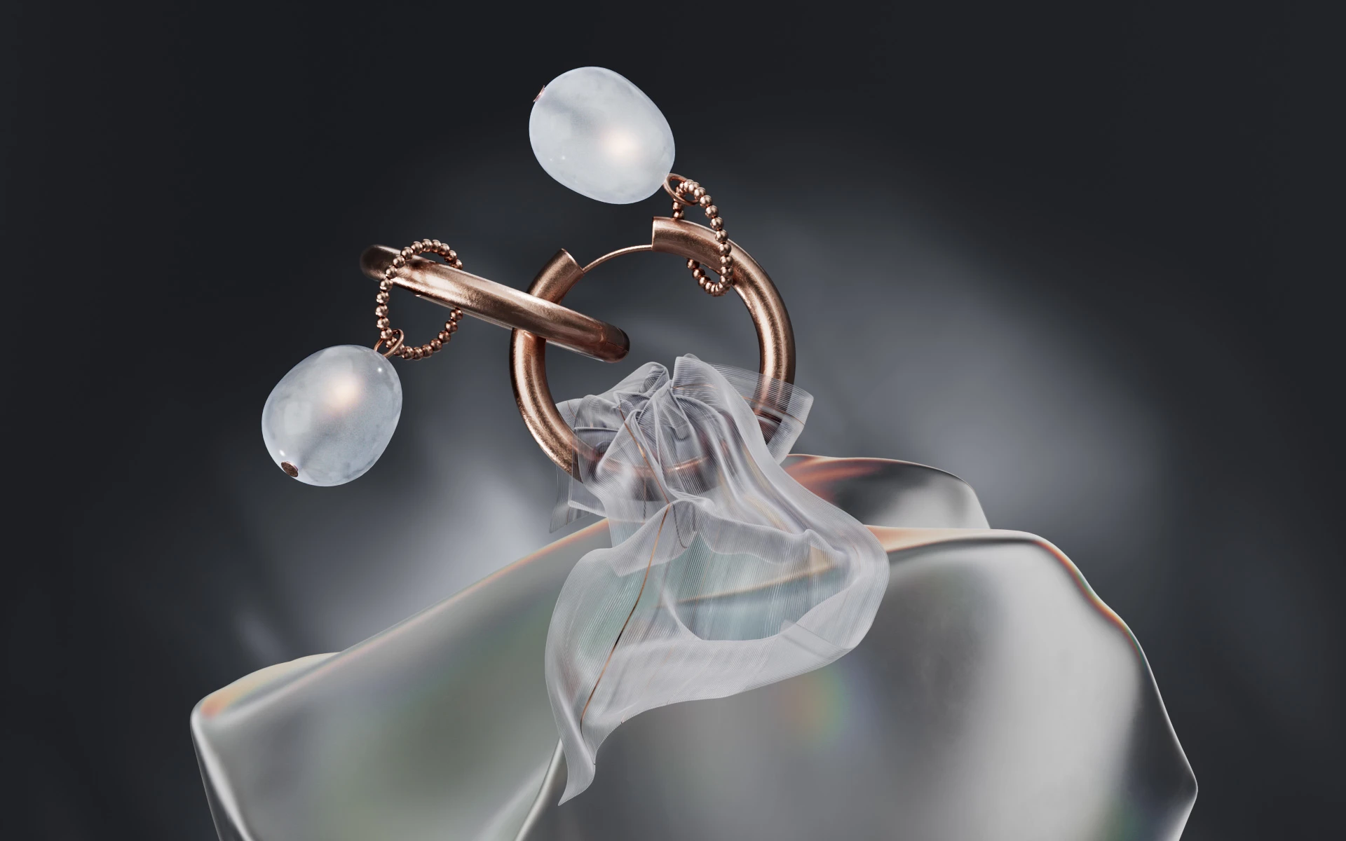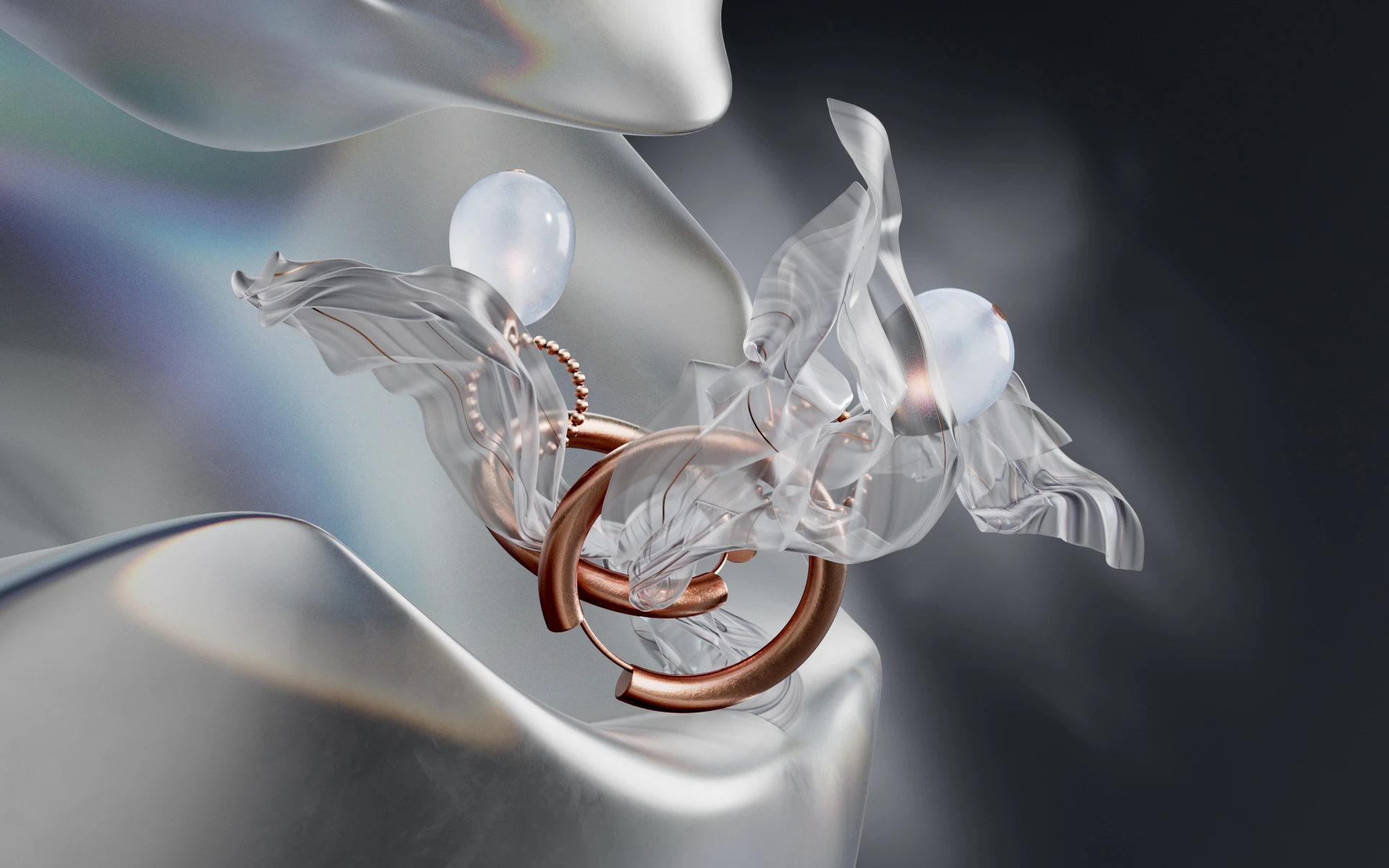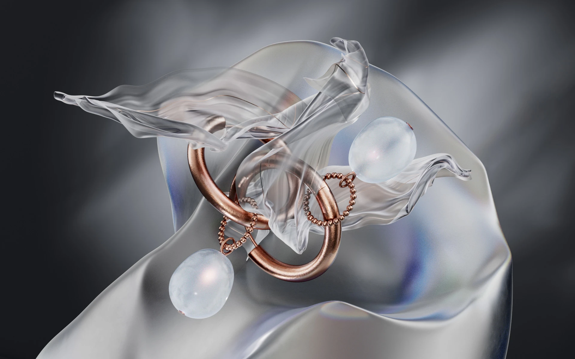 This Look Dev explores the interplay of composition, light, and material to evoke a sense of lightness. Using cloth simulations, I evaluated how different arrangements of gold and pearl elements can enhance their visual harmony. The study also investigates the contrast between the structured shapes of the fabric and the smooth, even surfaces of the pearl, enriching the overall visual composition. Special attention was given to the placement of objects to maximize different lighting effects, making this look a detailed study in the balance of form and light.
