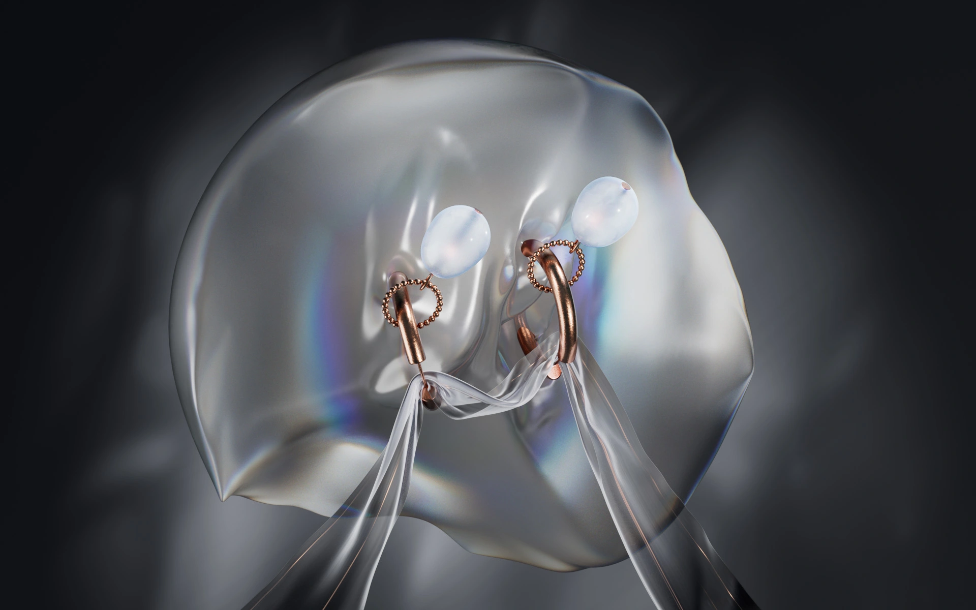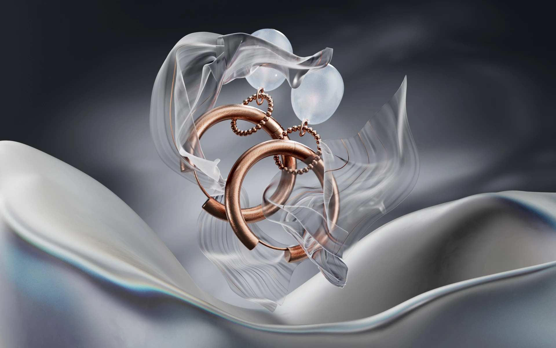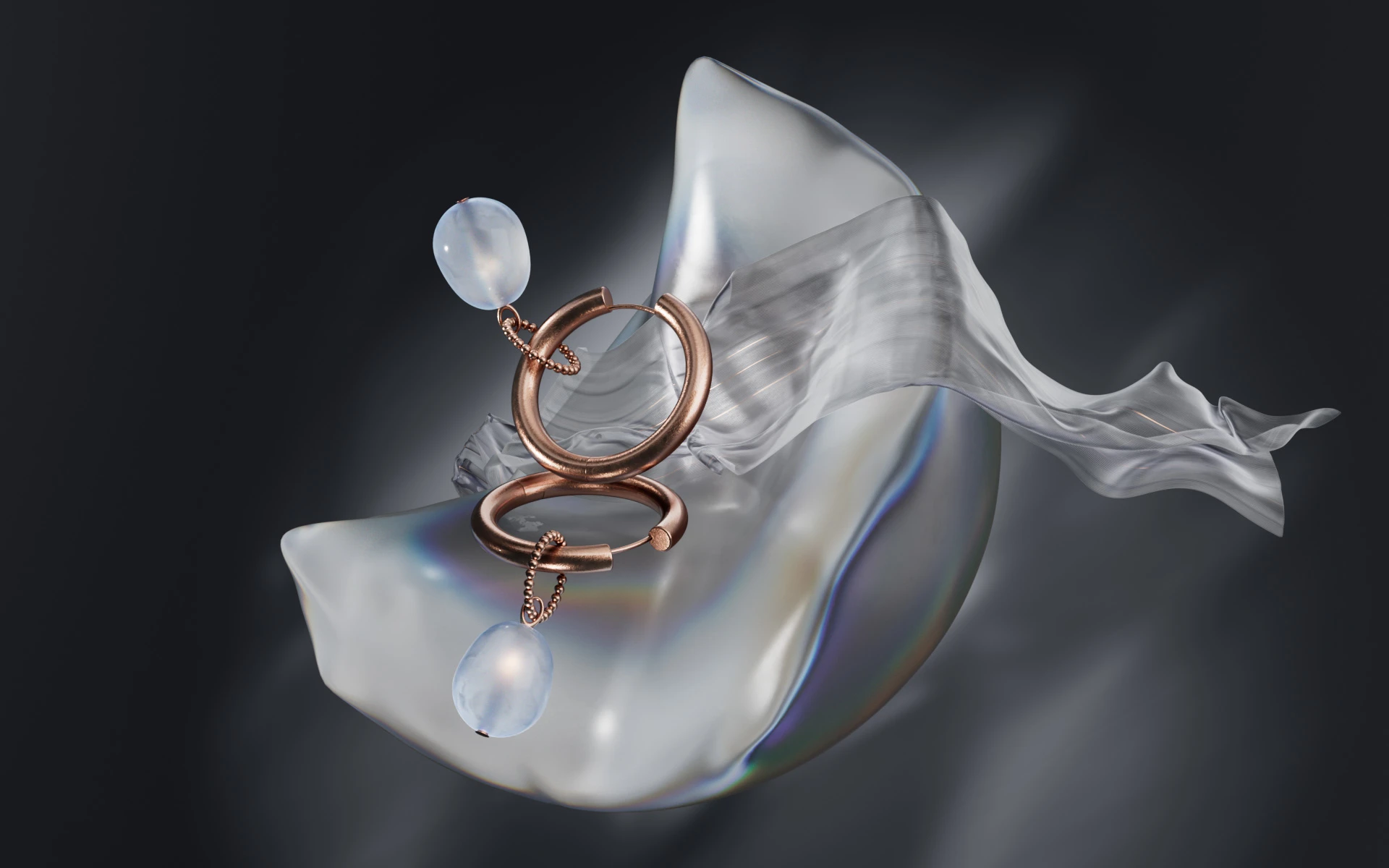 This Look Dev explores the interplay of composition, light, and material to evoke a sense of lightness. Using cloth simulations, I evaluated how different arrangements of gold and pearl elements can enhance their visual harmony. The study also investigates the contrast between the structured shapes of the fabric and the smooth, even surfaces of the pearl, enriching the overall visual composition. Special attention was given to the placement of objects to maximize different lighting effects, making this look a detailed study in the balance of form and light.