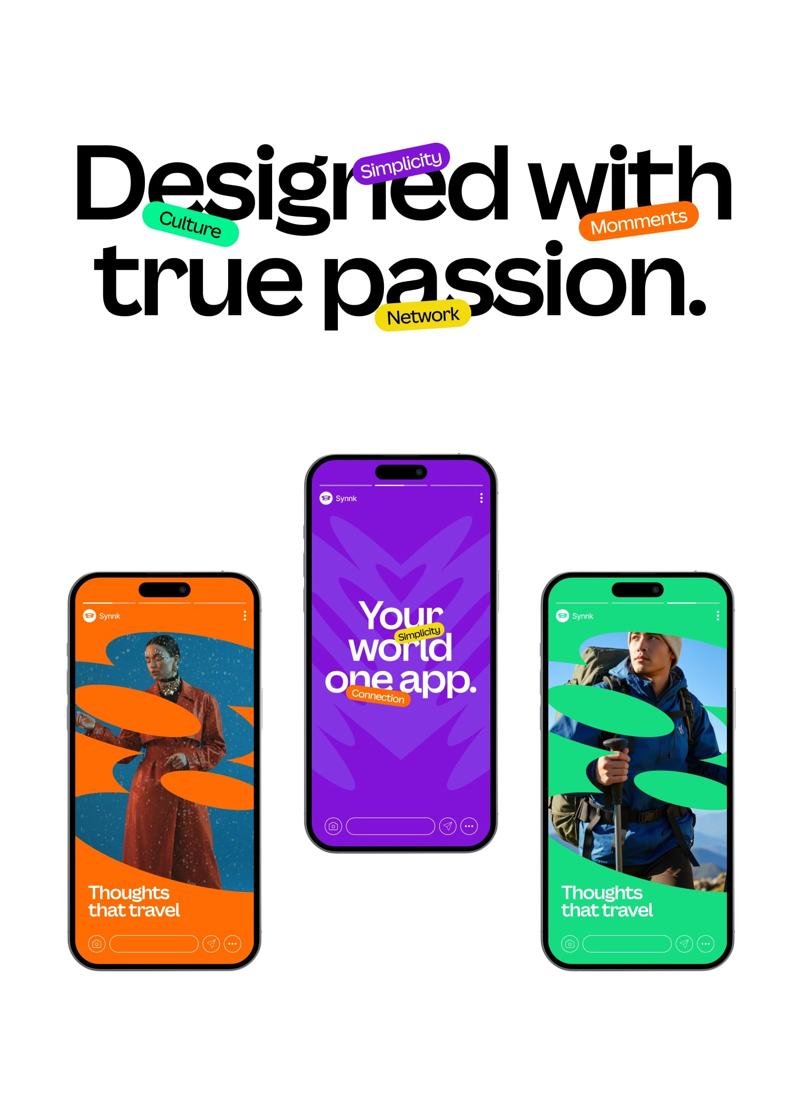 Synnk is a conceptual social media platform designed for people who feel overwhelmed by today’s noisy, cluttered apps. The idea is simple — create a space that feels lighter, friendlier, and more playful without losing the fun of sharing moments with close friends.