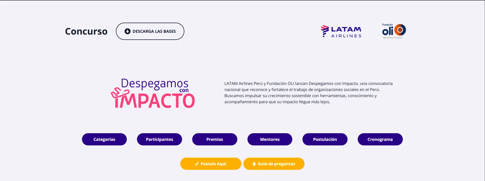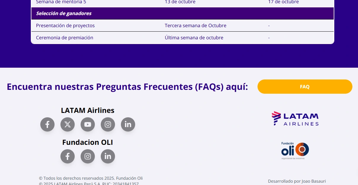 Developed a landing page for LATAM Airlines' and Oli Foundationo NGO contest.