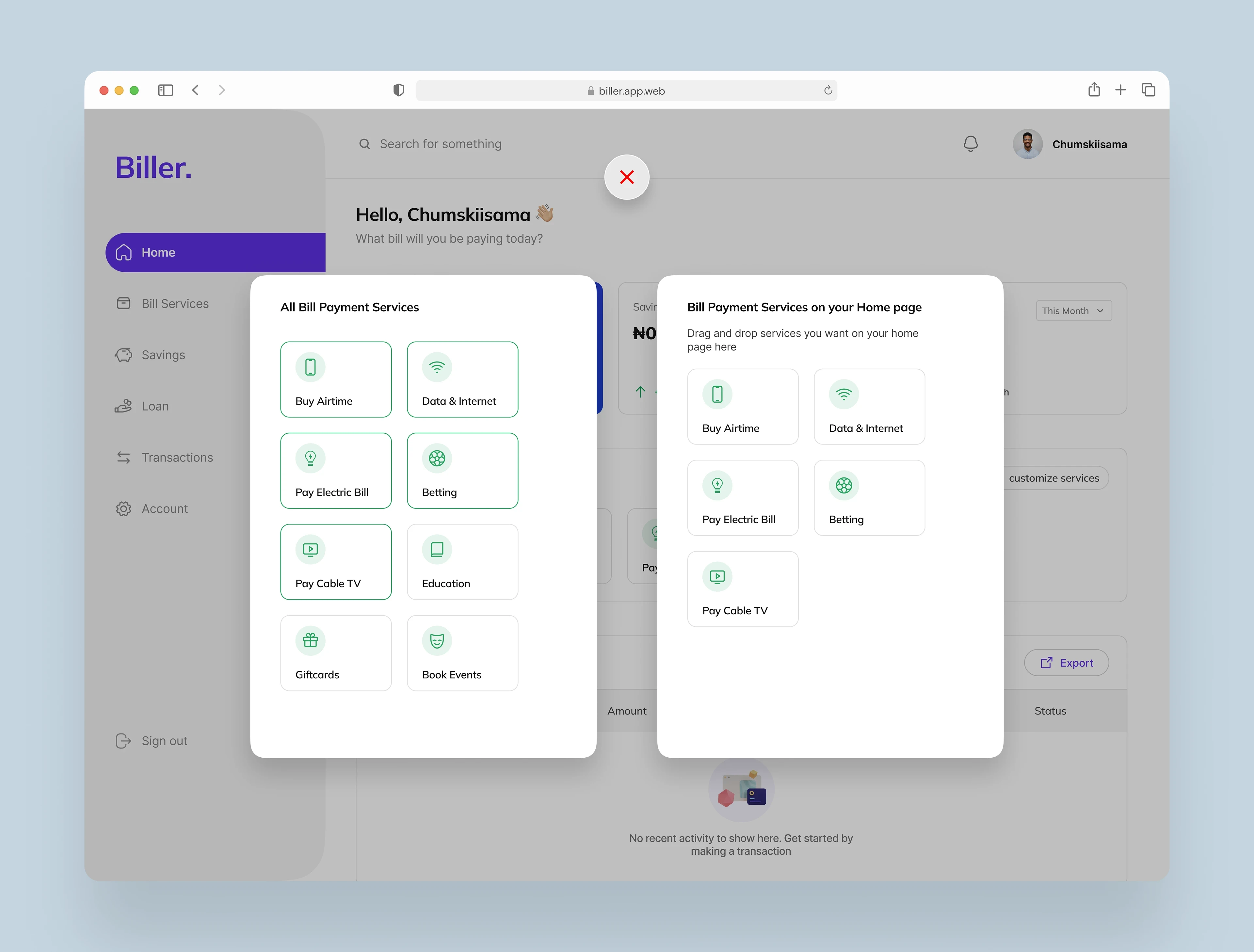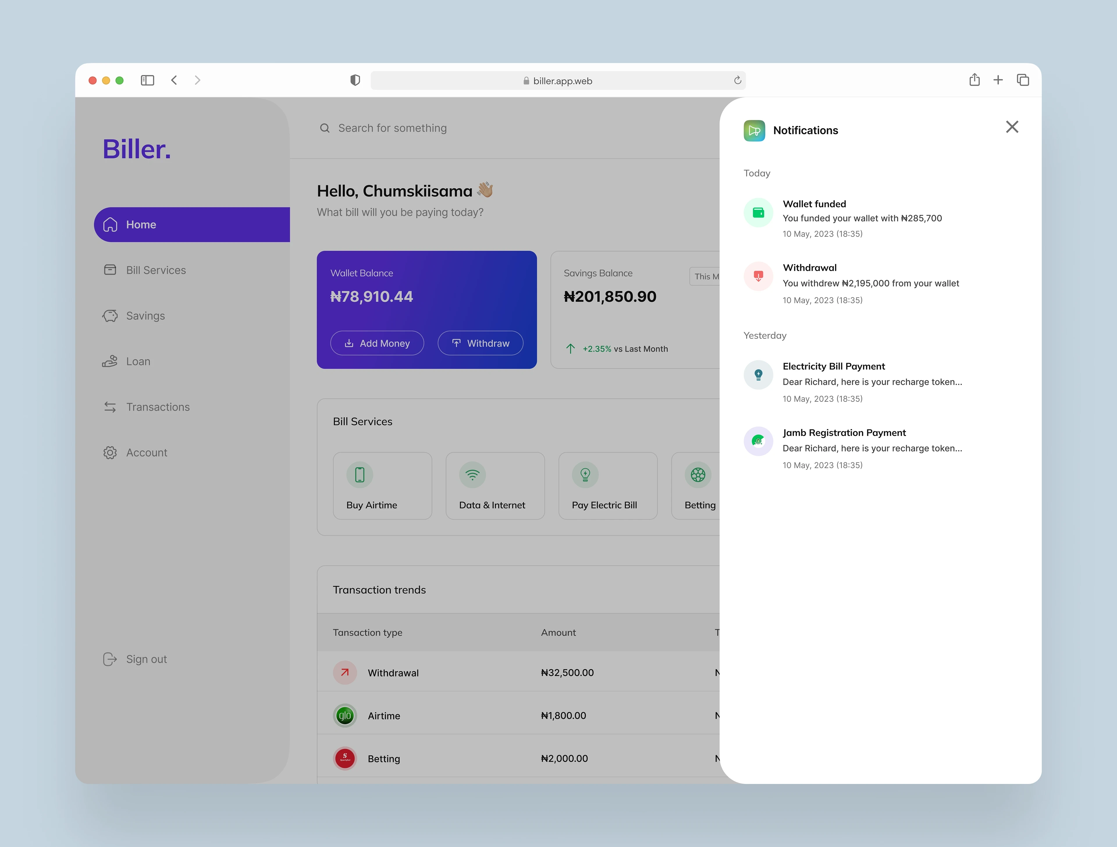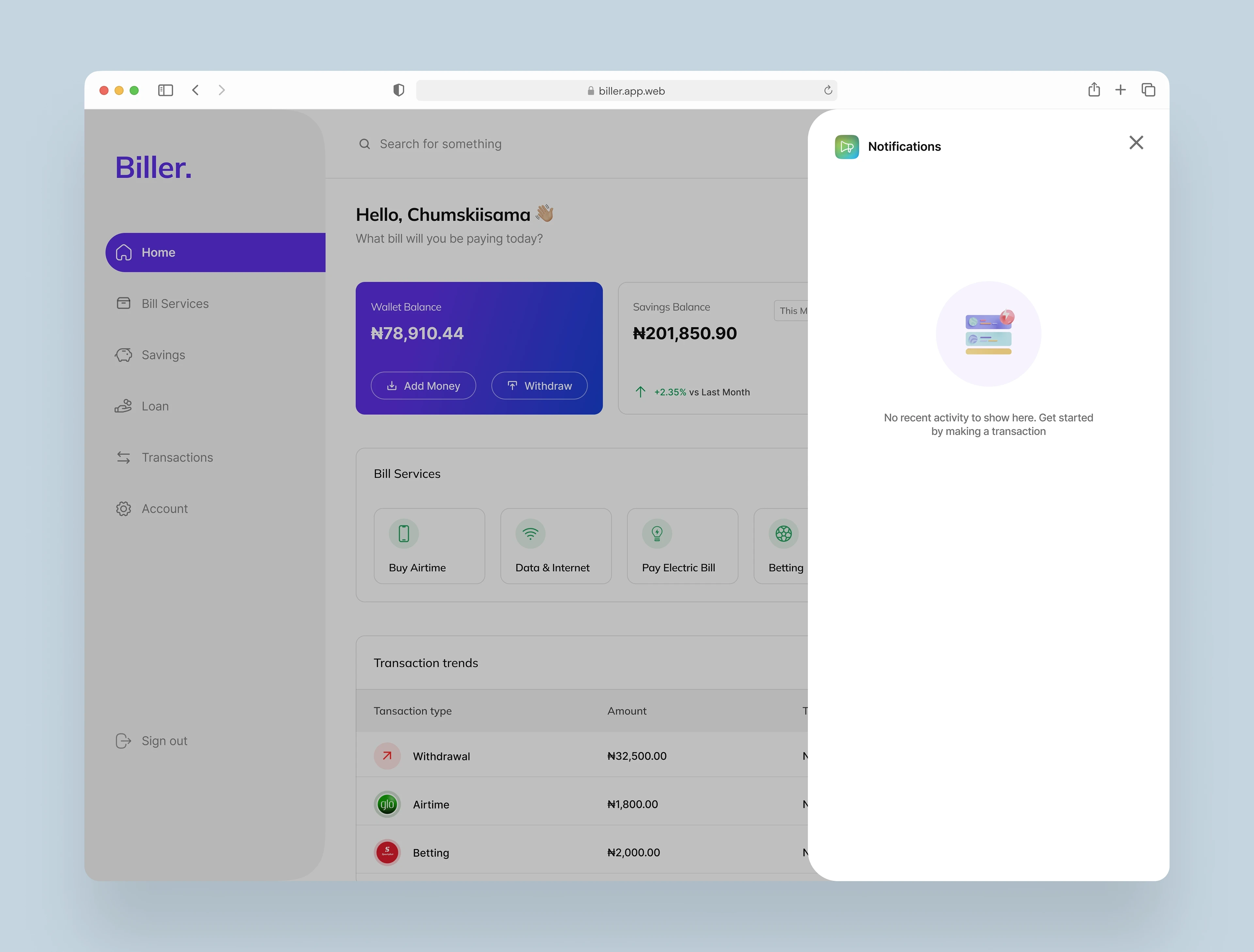 User-Centric Navigation: I created a navigation structure that puts the user first. This means designing clear pathways for users to access features like bill payments, airtime top-ups, savings, and loans effortlessly.