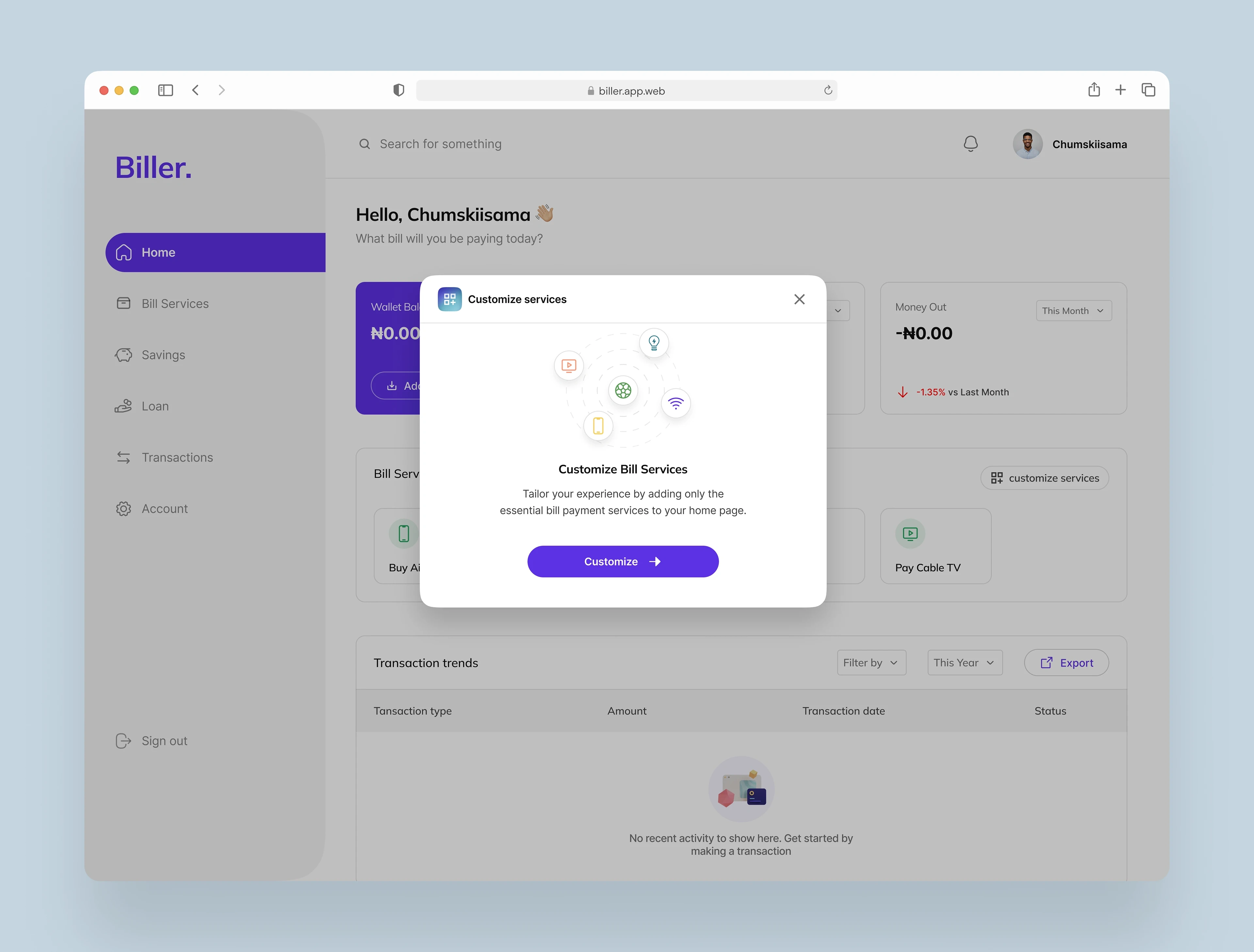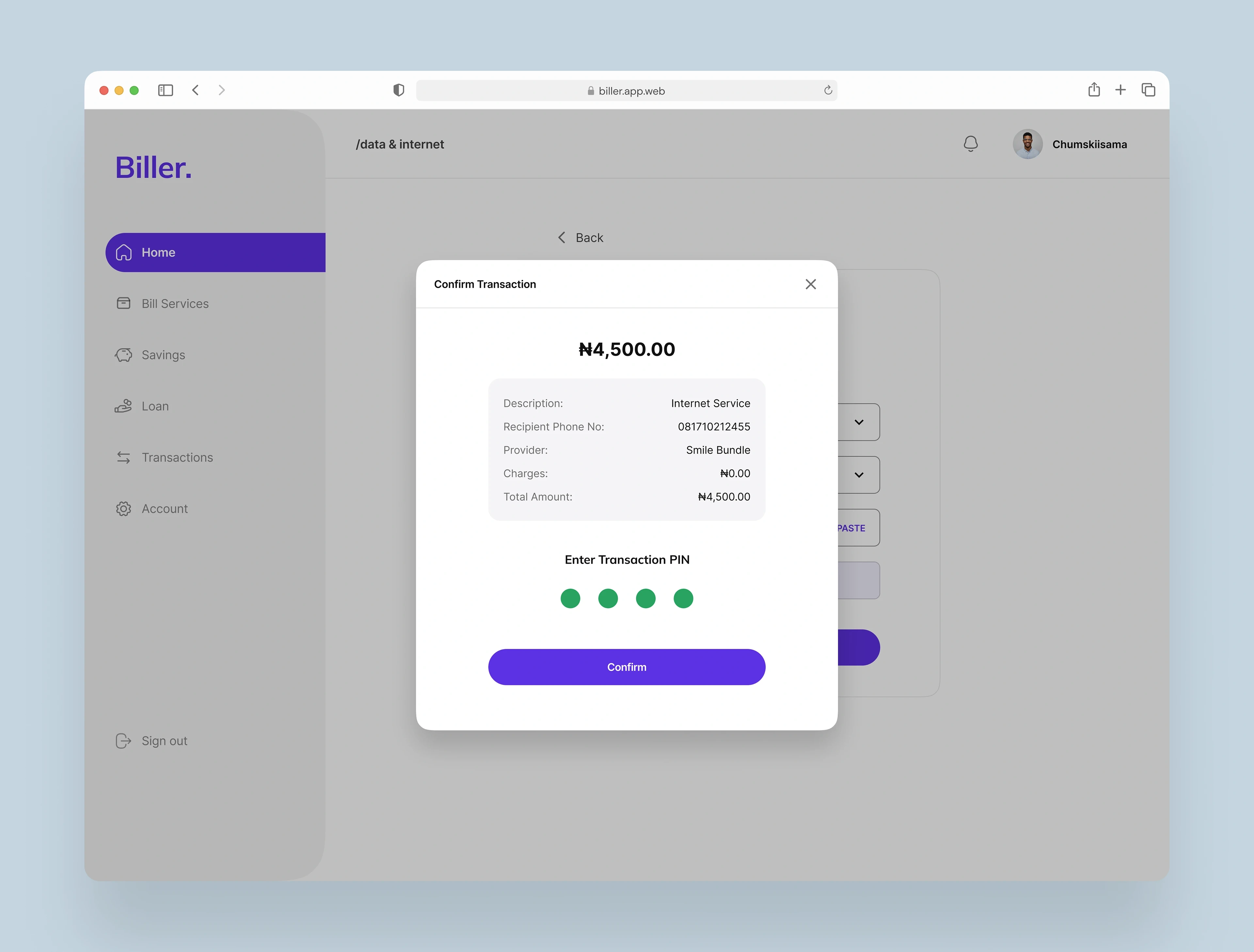 Efficient Transactions: Users should be able to complete common tasks, like bill payments and airtime top-ups, in just a few clicks. Quick-action buttons and a detailed transaction history section were implemented to streamline the process, enhancing transparency.
