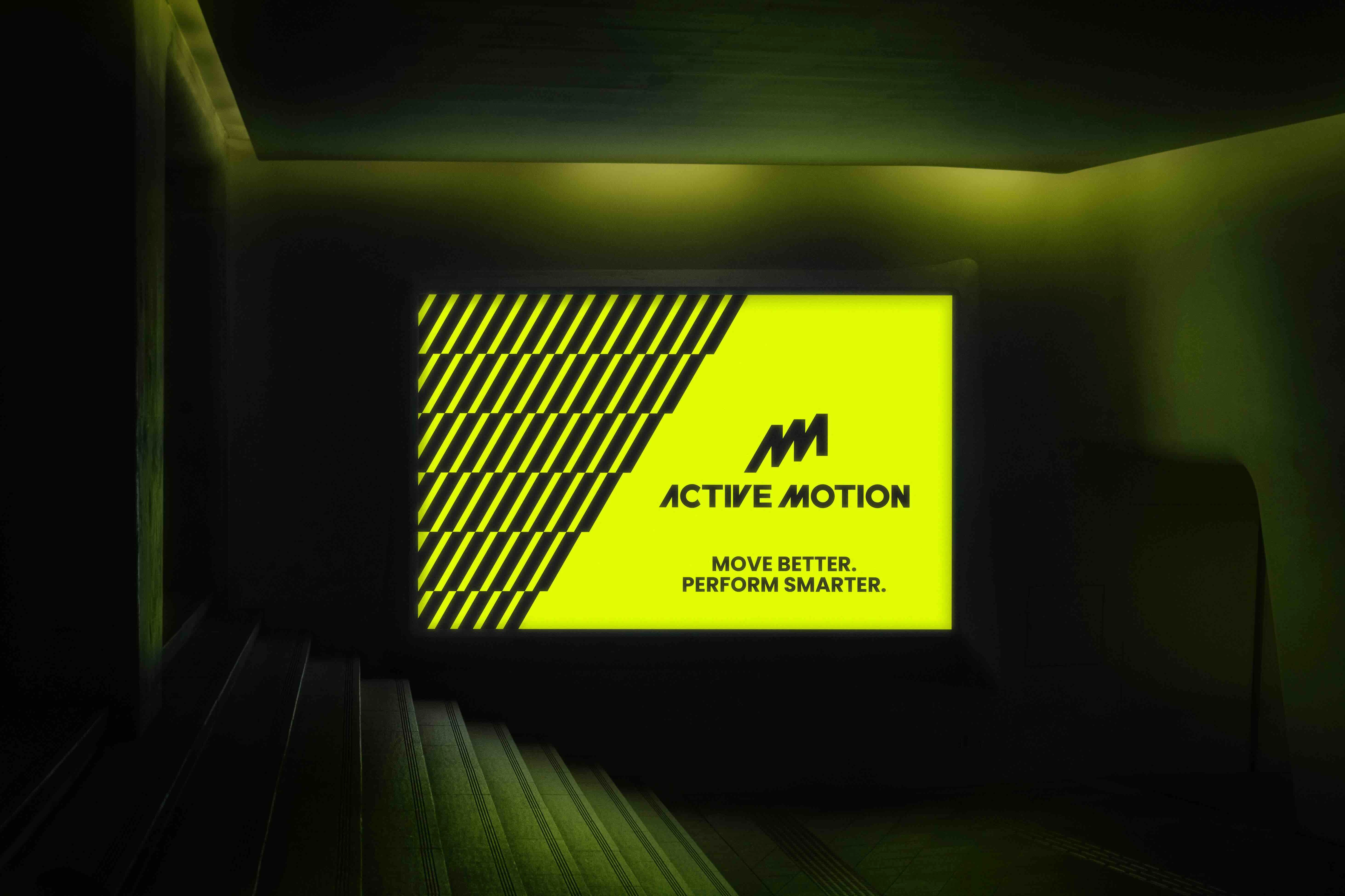 The design of the full branding of Active Motion. Including logo design, color palette, typography and a brand pattern.