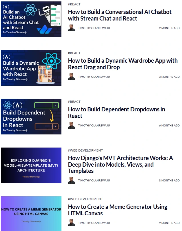 Blend of different types of technical content ranging from developer-focused to enterprise-level articles. Crossing more than 150k+ reads on freeCodeCamp alone.
