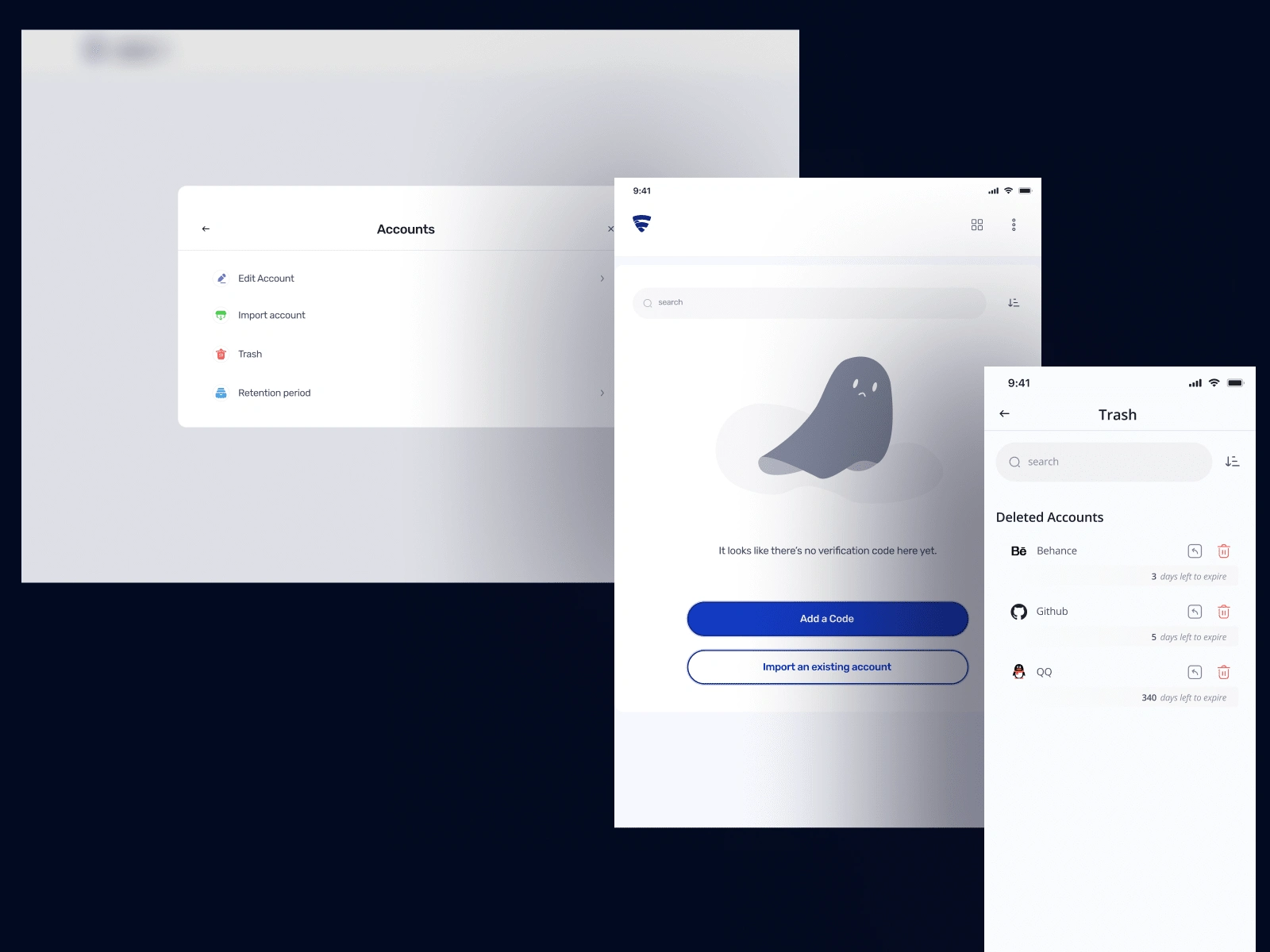 Designed for all screen sizes( Desktop, Tablet & Mobile) version for a 2FA mobile aimed at competing with Google Authenticator at ease of use.