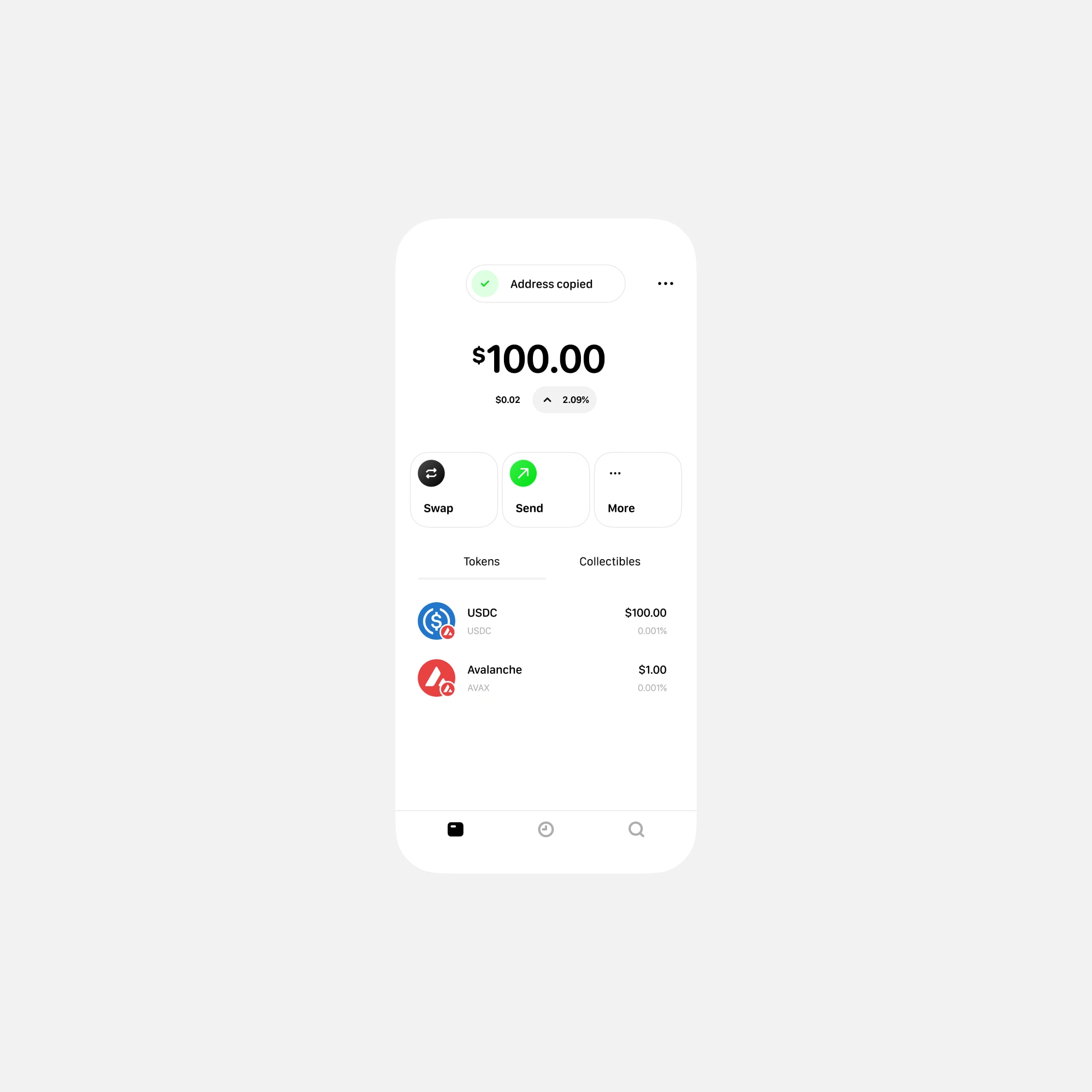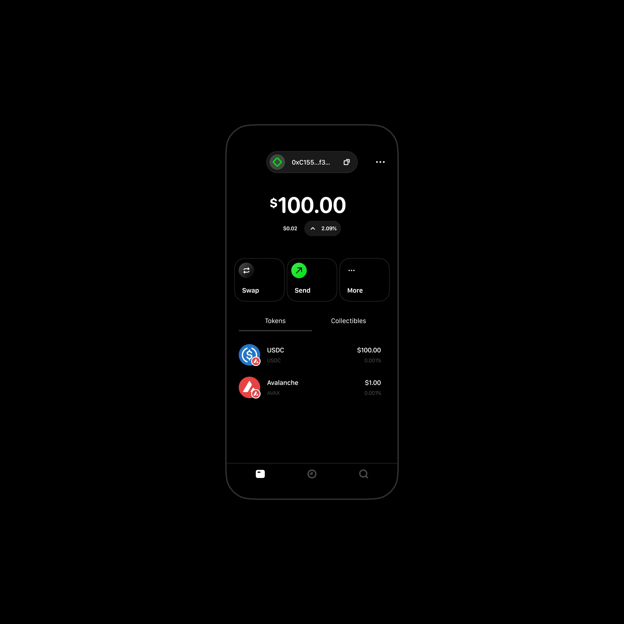 The Wallet combines all the essential features - send, receive, swap, scan and manage multiple wallets.