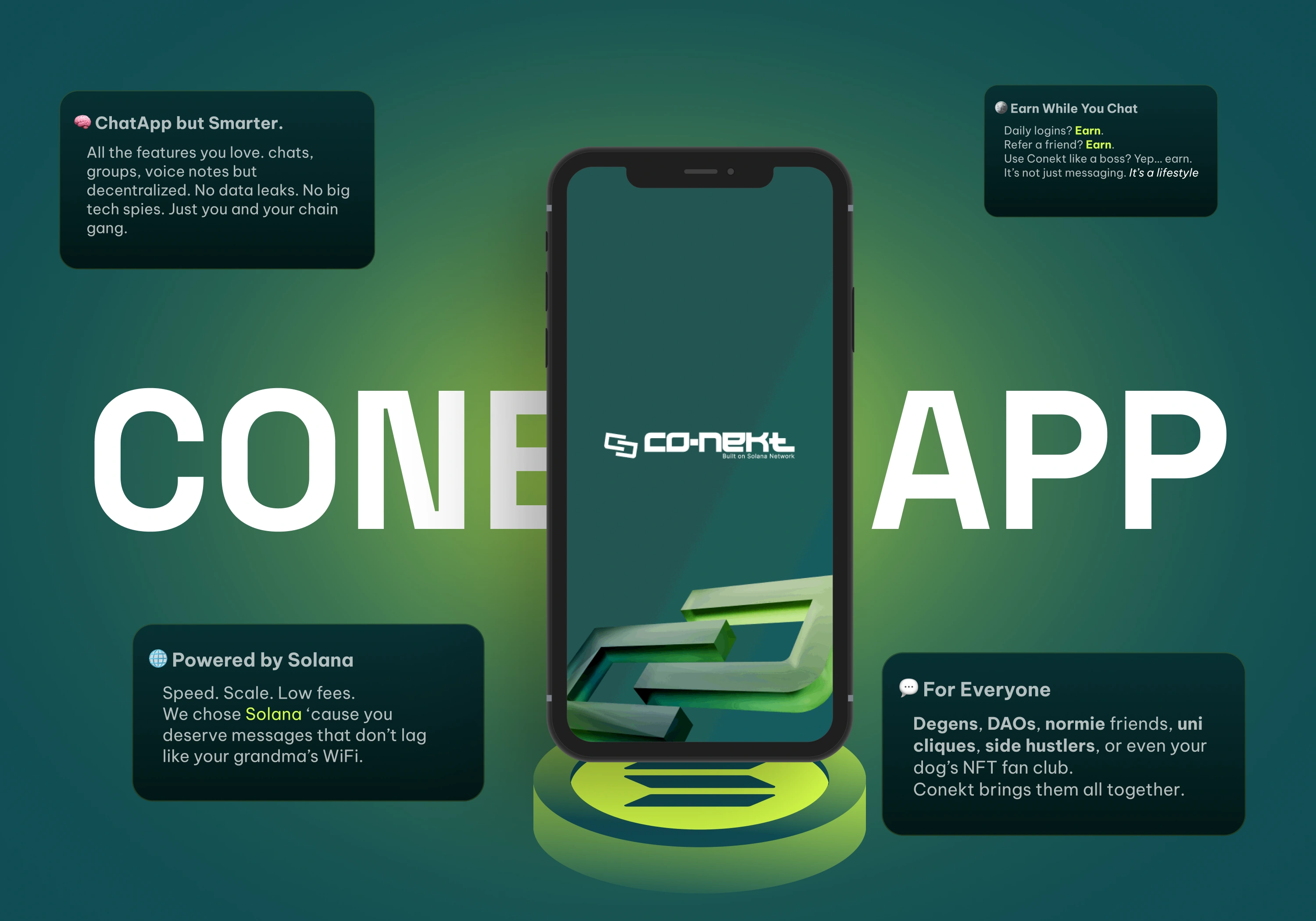 Conekt is a social networking app designed to connect Web3 creatives through instant messaging and real-time discovery. Blending the familiarity of apps like WhatsApp with swipe-based matching, Conekt empowers creatives to build meaningful connections, share ideas, and collaborate โ all in a decentralized ecosystem.