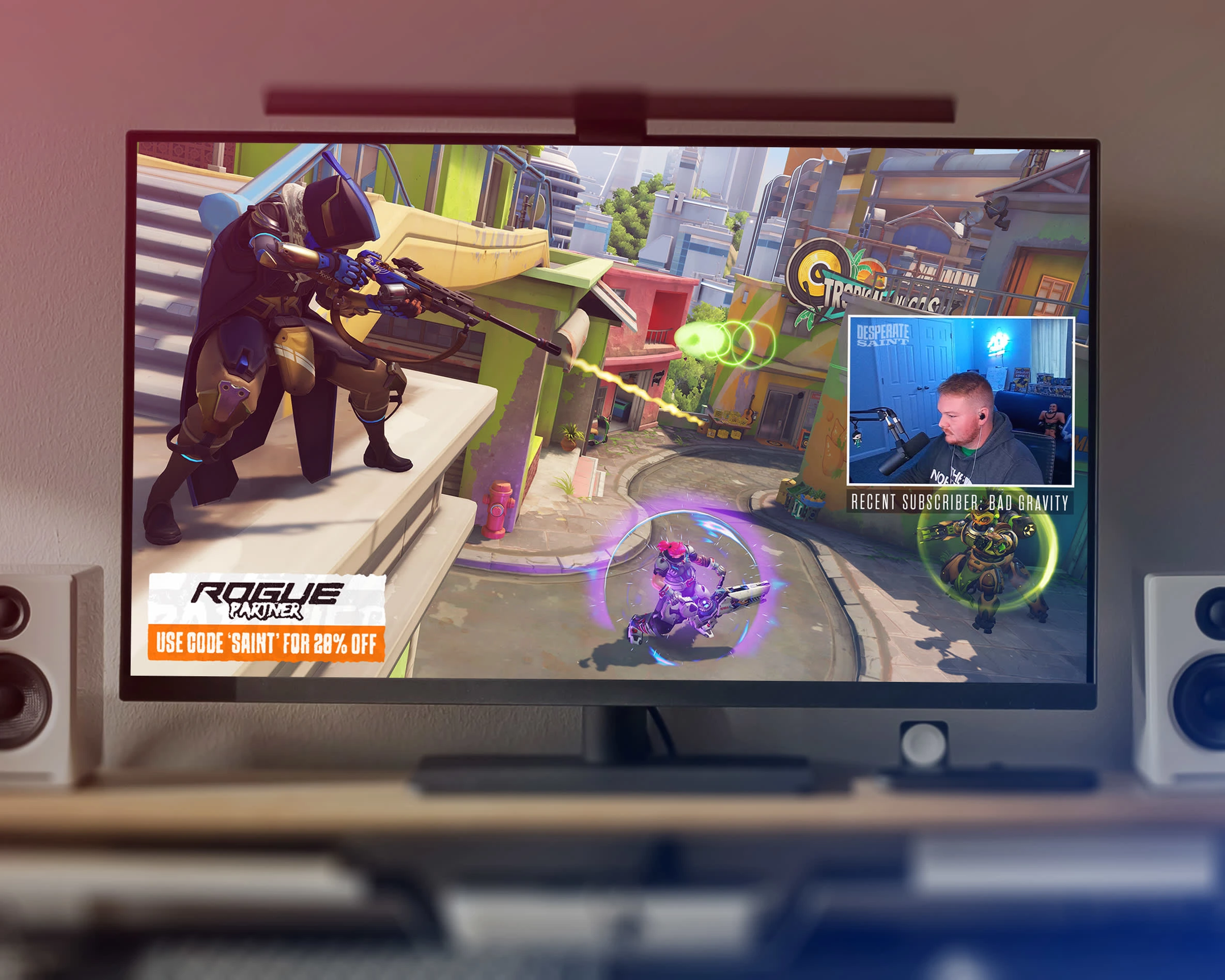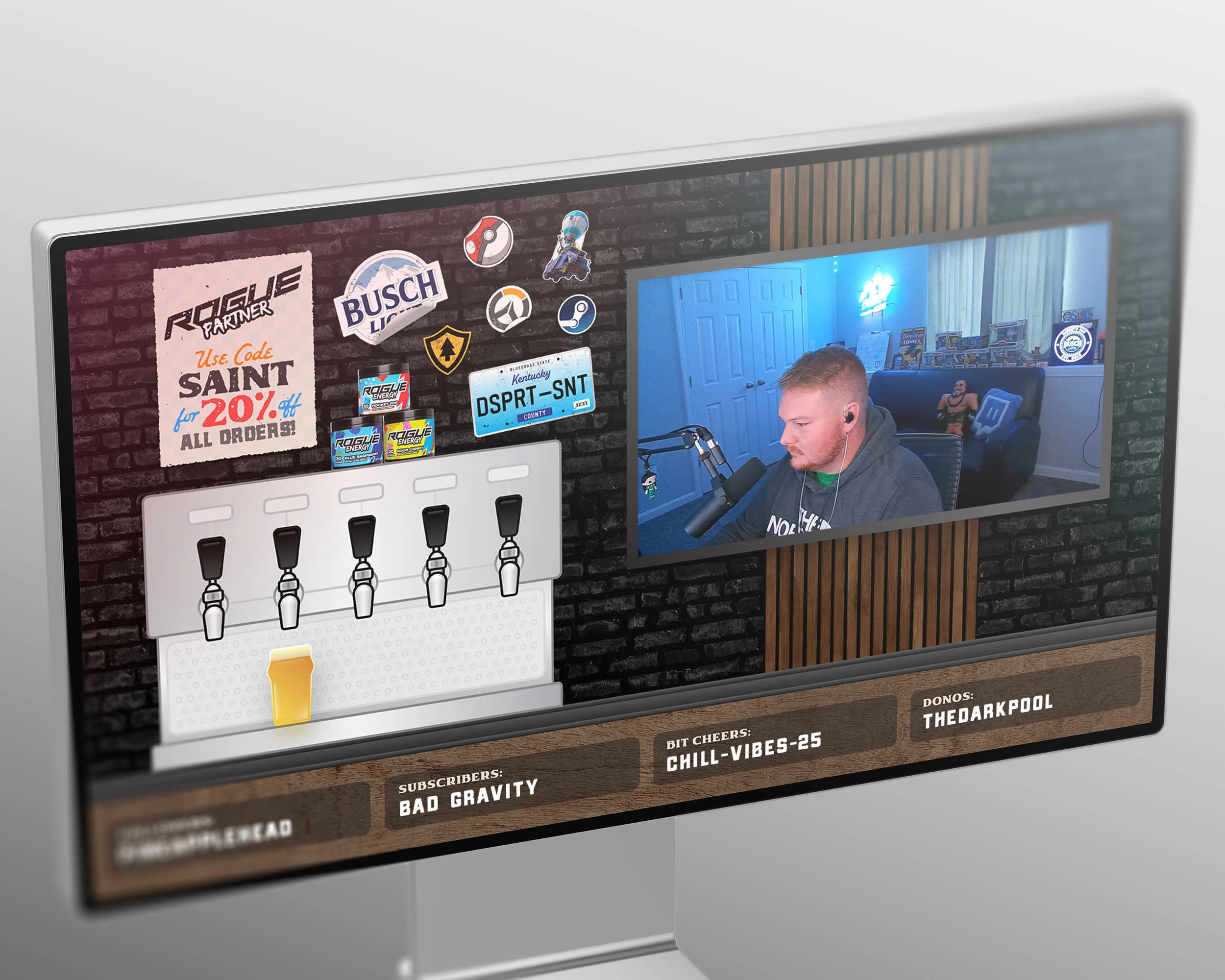 Being a gamer, Saint's stream is mainly focused on the gameplay, so it was important not to have too many overlays that covered up the screen. There's the section for his webcam with a simple border and a transparent box underneath for stream labels containing recent followers, subscribers, etc.
