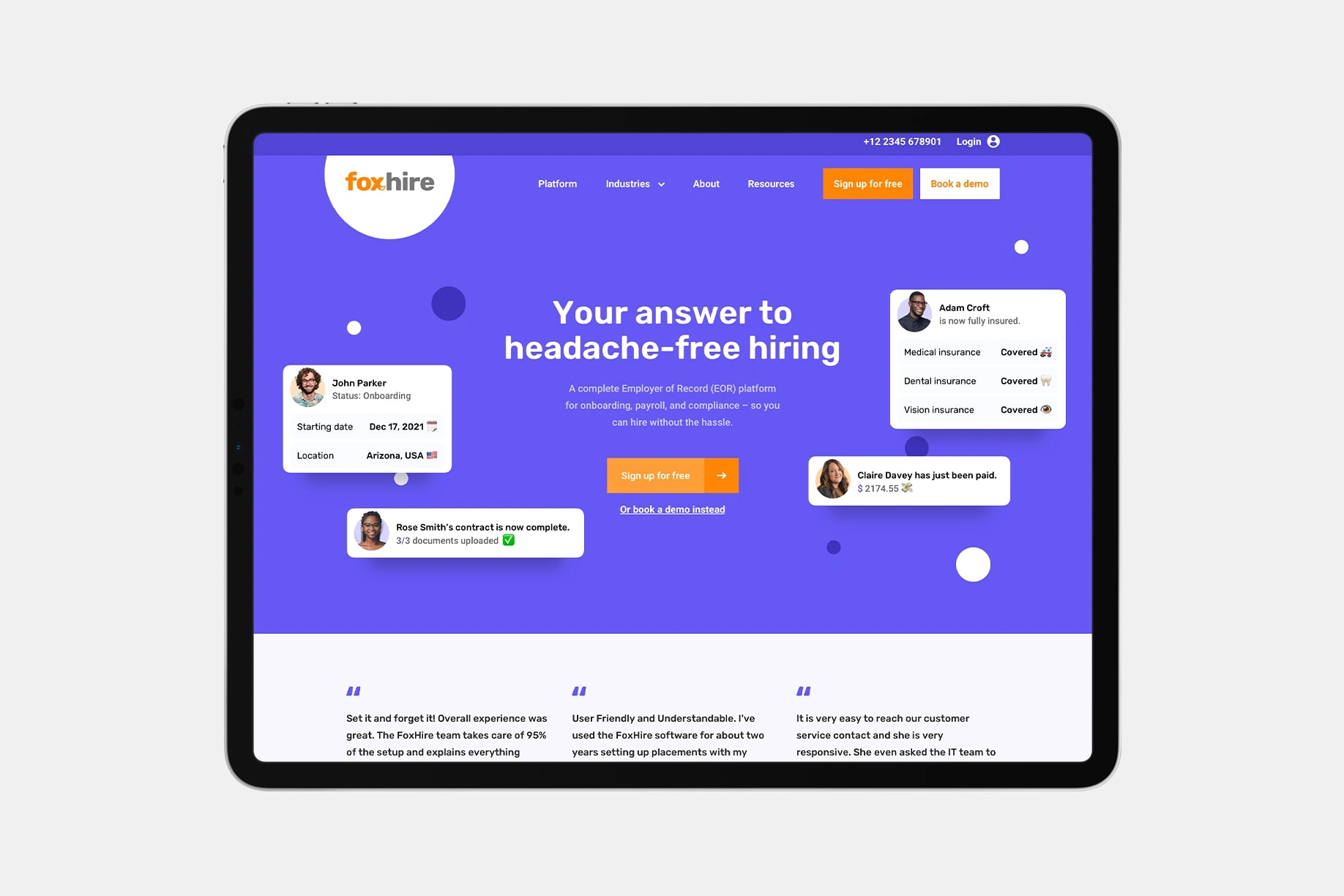 FoxHire’s innovative Employer of Records (EOR) platform makes hiring top talent anywhere in the US easy. No more admin burdens, no more payroll, no more compliance worries. As a legal Employer of Record, they help recruiting firms and employers hire talent, without the hassle. Since 1992 they have been supporting their clients in growing their business and simplifying the hiring process with over 25,000 US workers hired through their platform (and counting)!