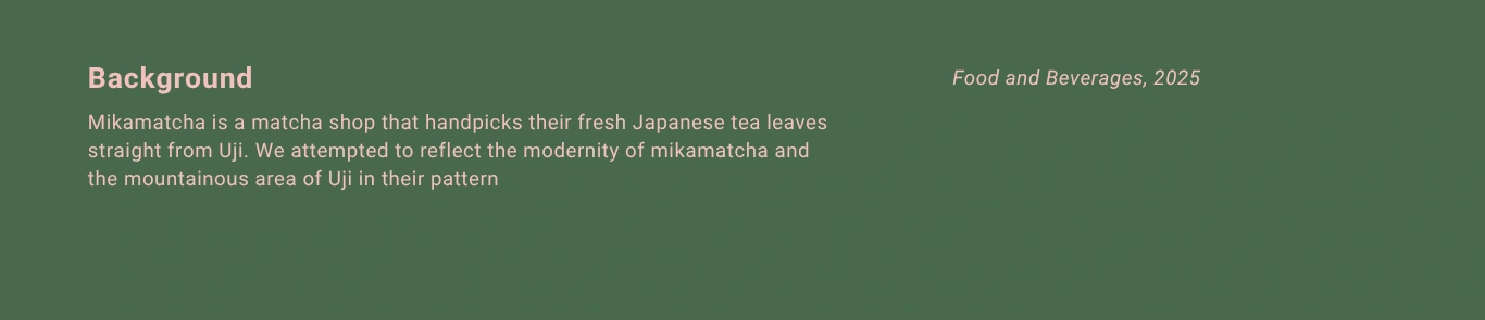 For a ceremonial grade matcha brand, Mika Matcha wanted to be a more laid back, but still professional and hinted it's originality ingredients from Uji, Japan.
