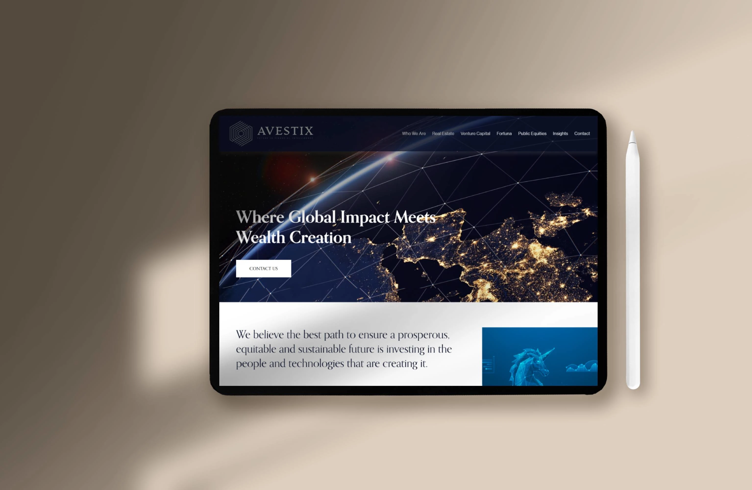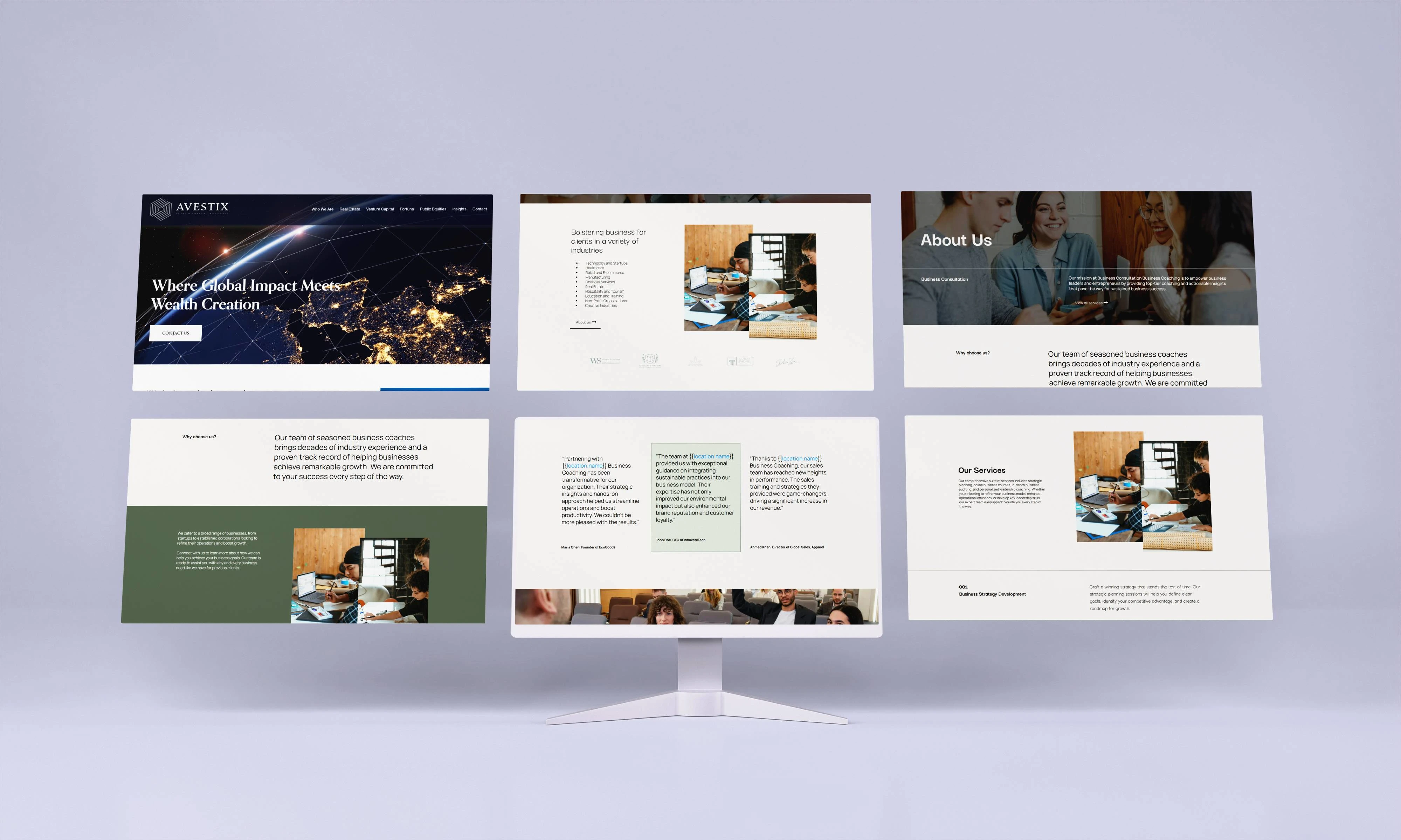 We also developed dedicated sections for Current Areas of Focus, Insights, and Testimonials, creating a narrative that connects investment expertise with human impact. Subtle motion effects, high-contrast typography, and deep navy tones convey stability and sophistication, while intuitive navigation ensures seamless exploration for both institutional and private investors.
