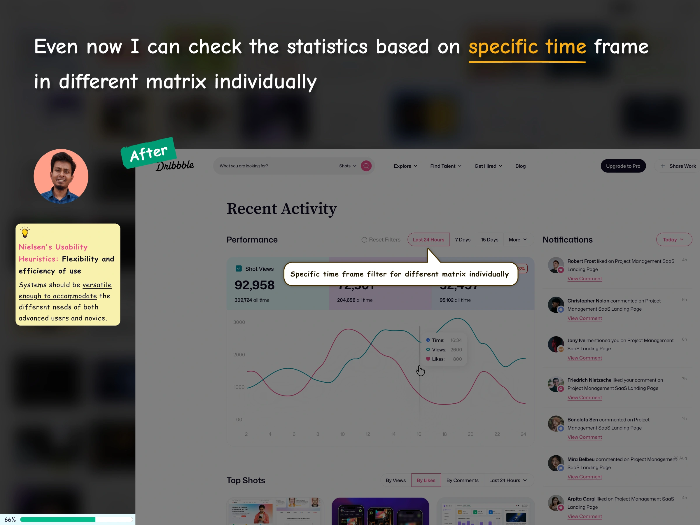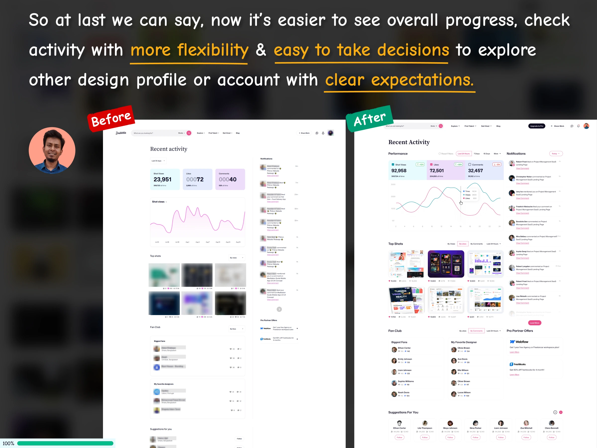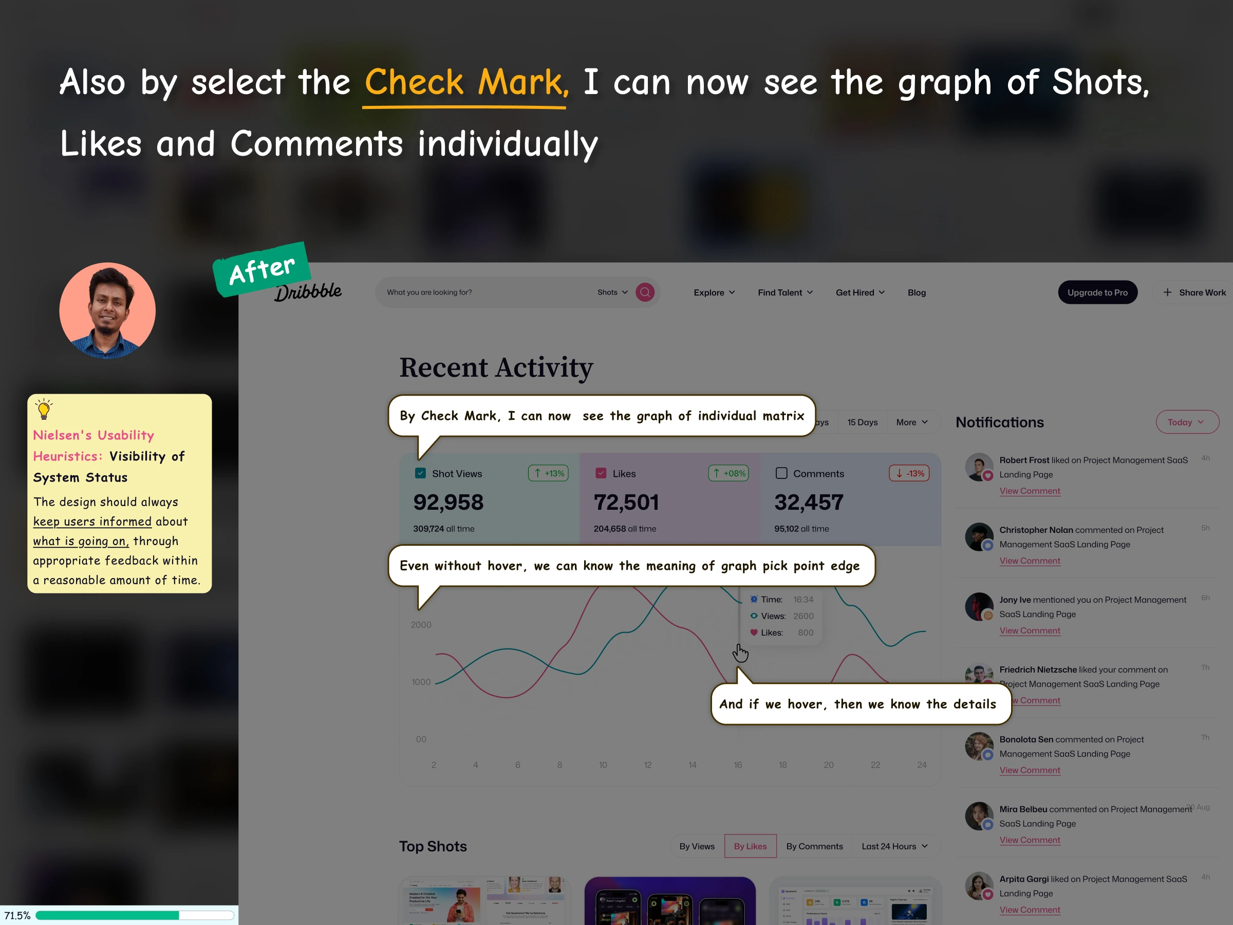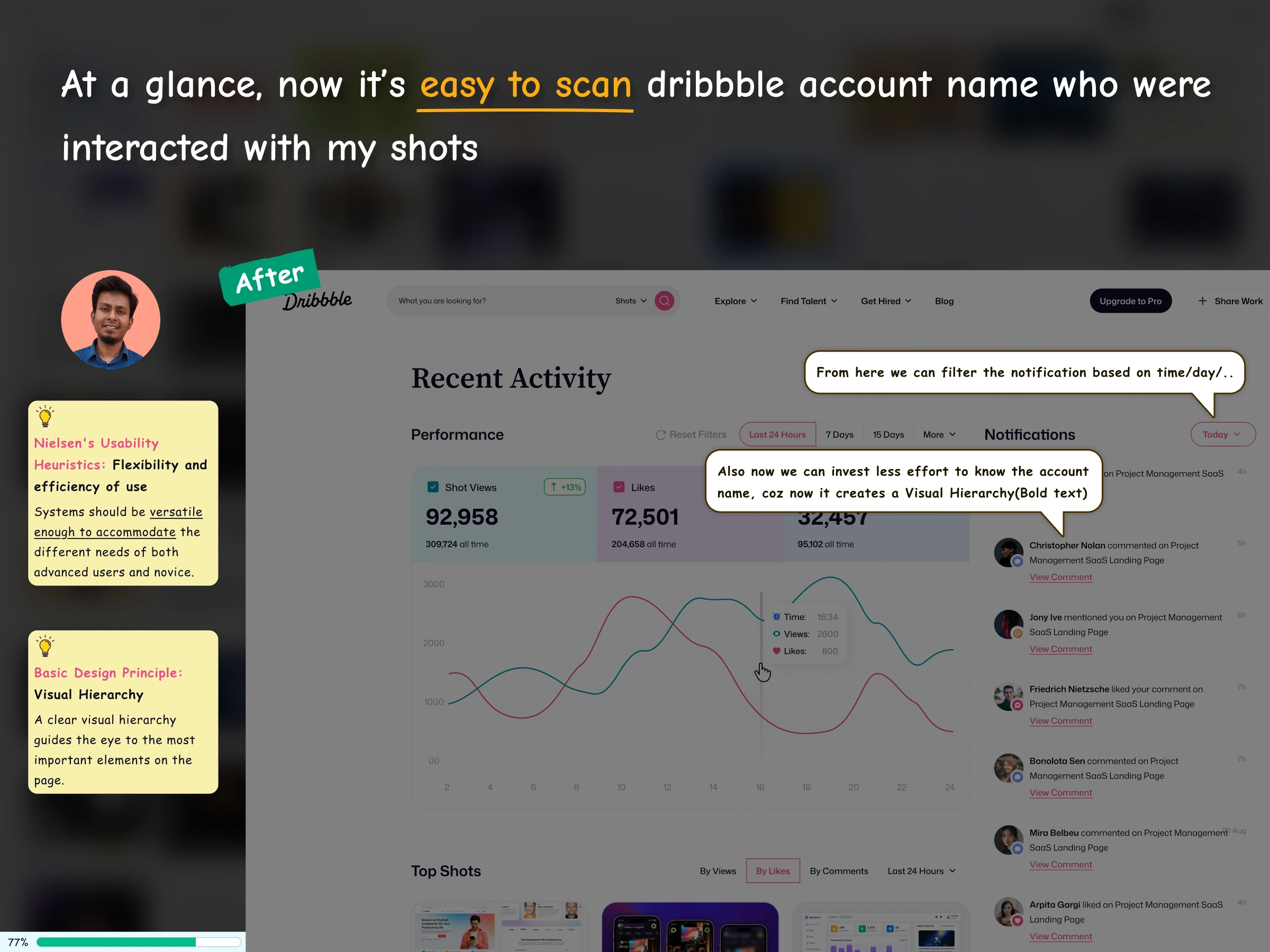 I've done this UX Improvement of Dribbble Recent Activity Page with some UX Laws and 10 Usability Heuristics for User Interface Design of Jackob Neilson.