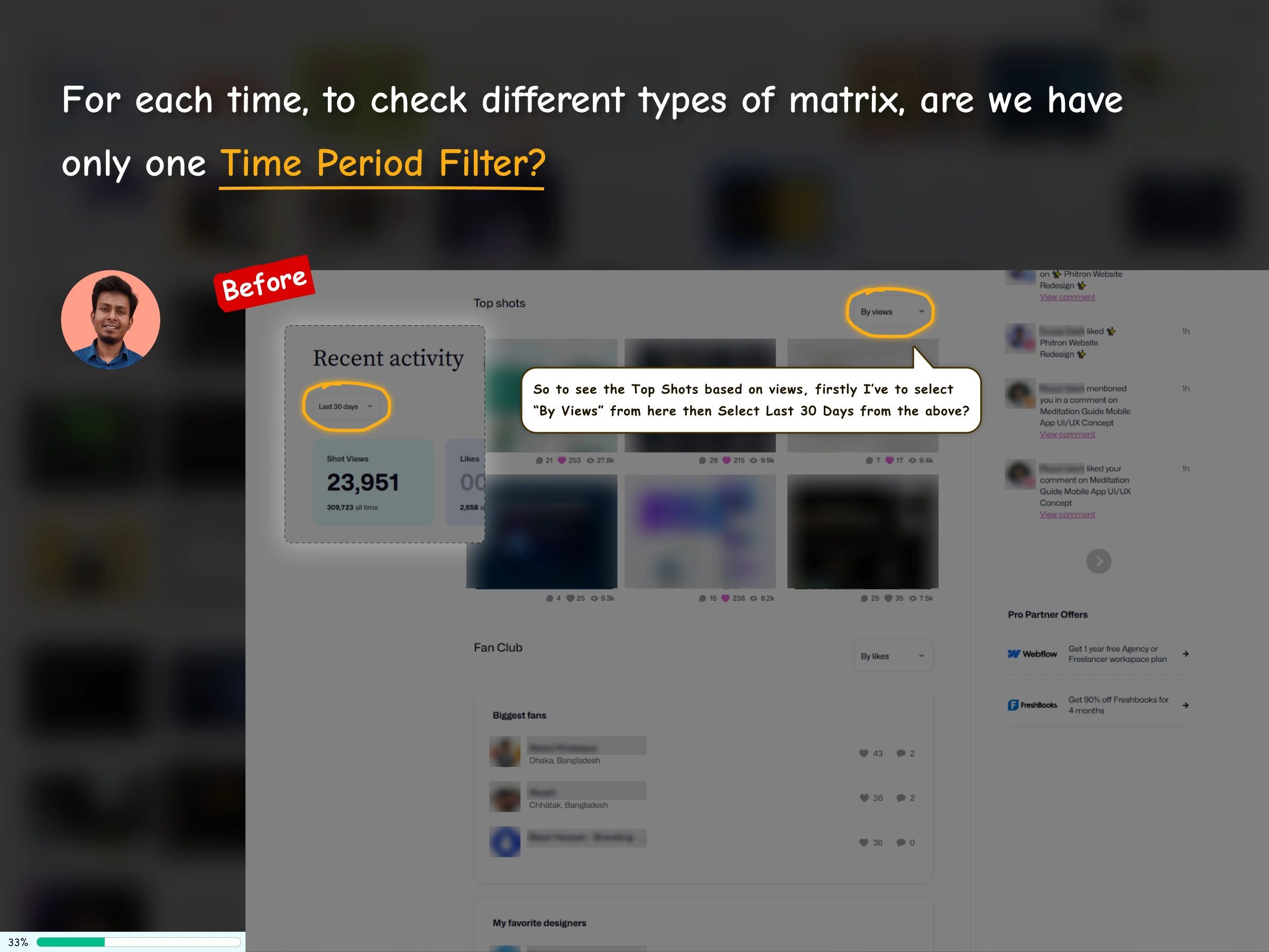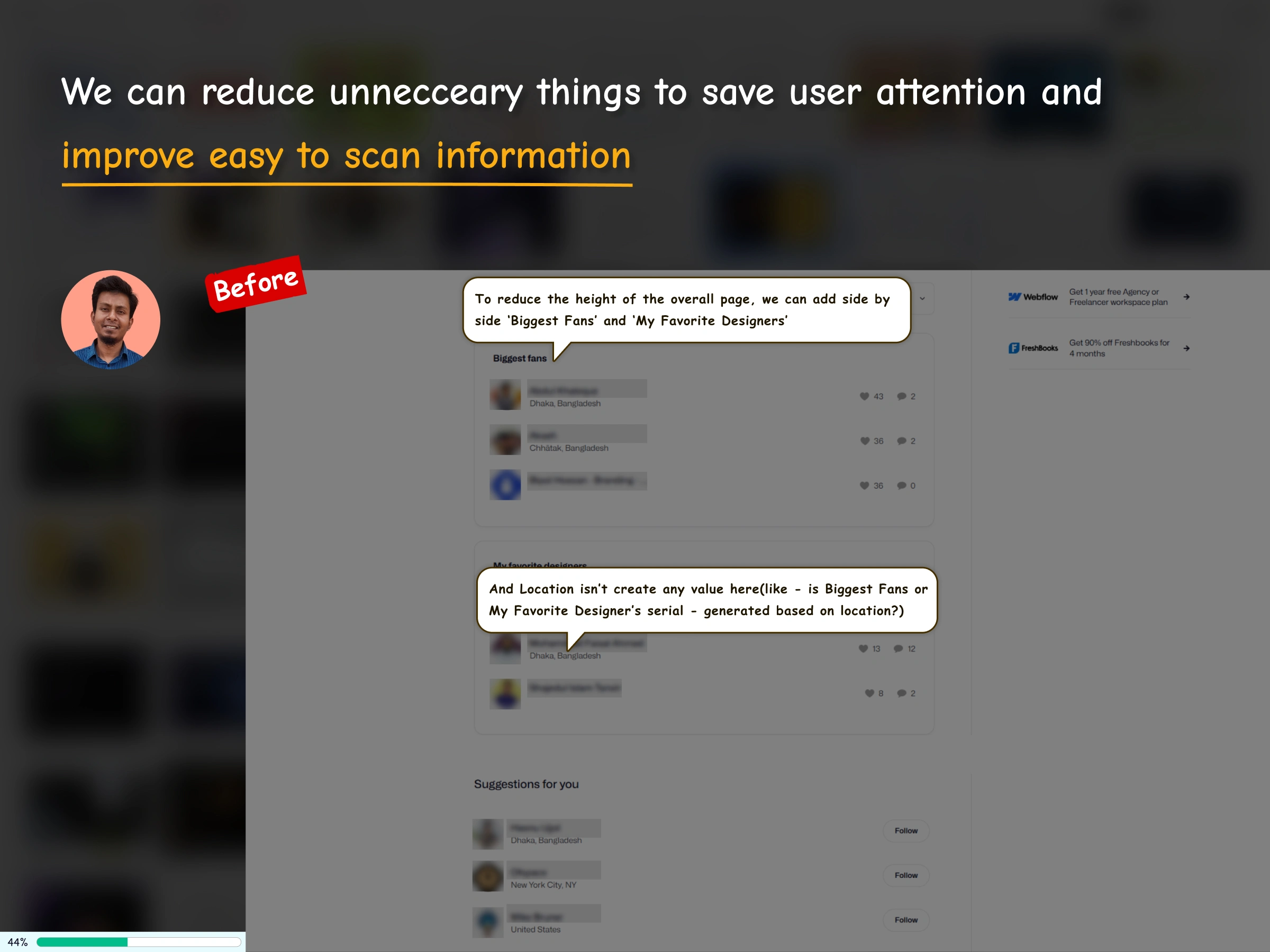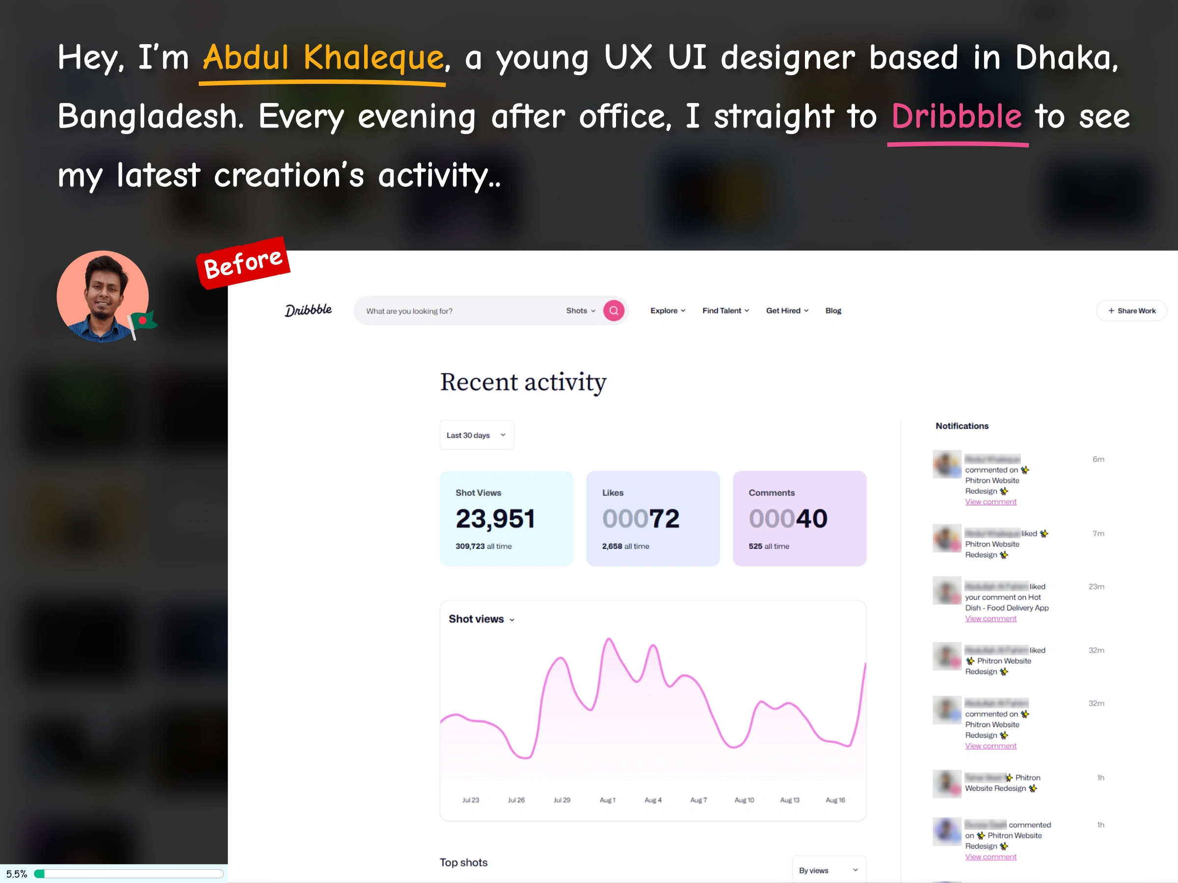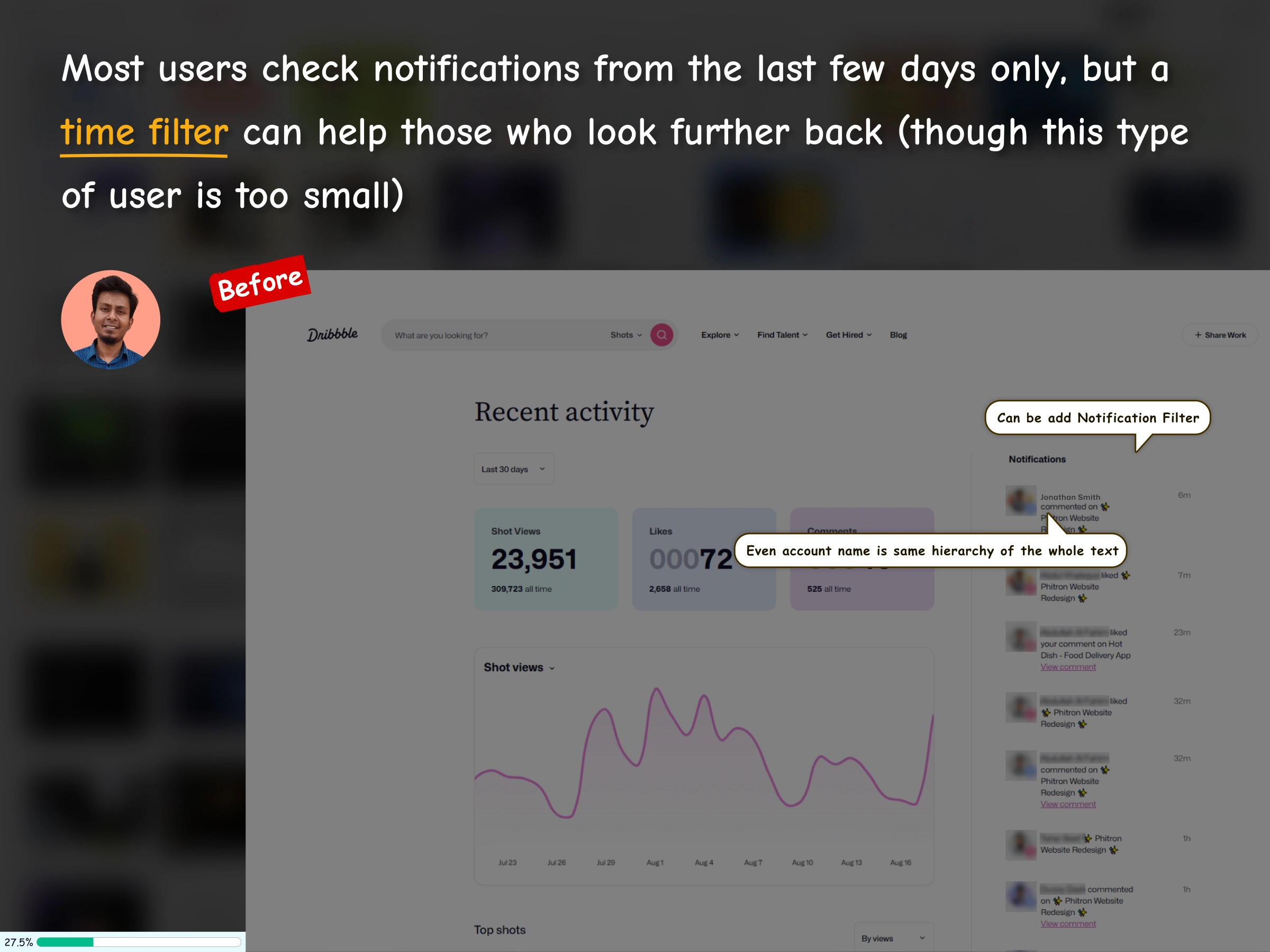 I've done this UX Improvement of Dribbble Recent Activity Page with some UX Laws and 10 Usability Heuristics for User Interface Design of Jackob Neilson.