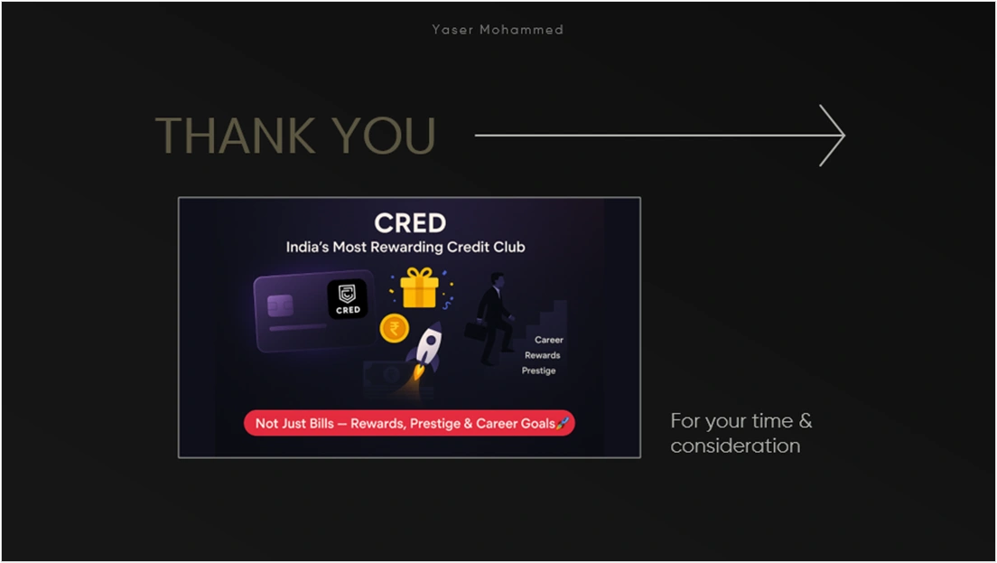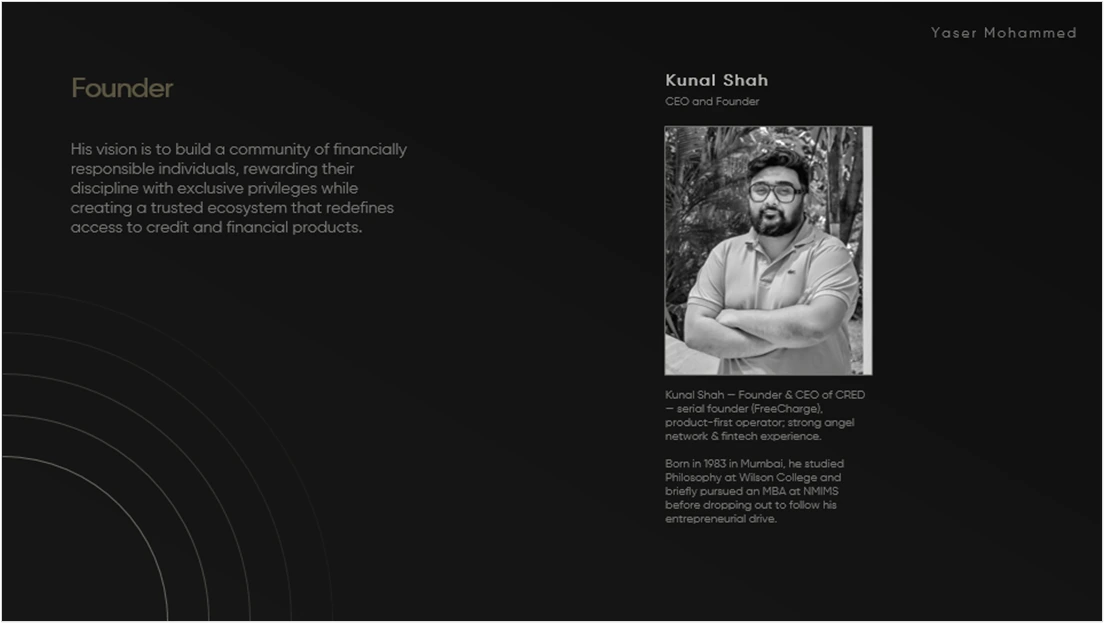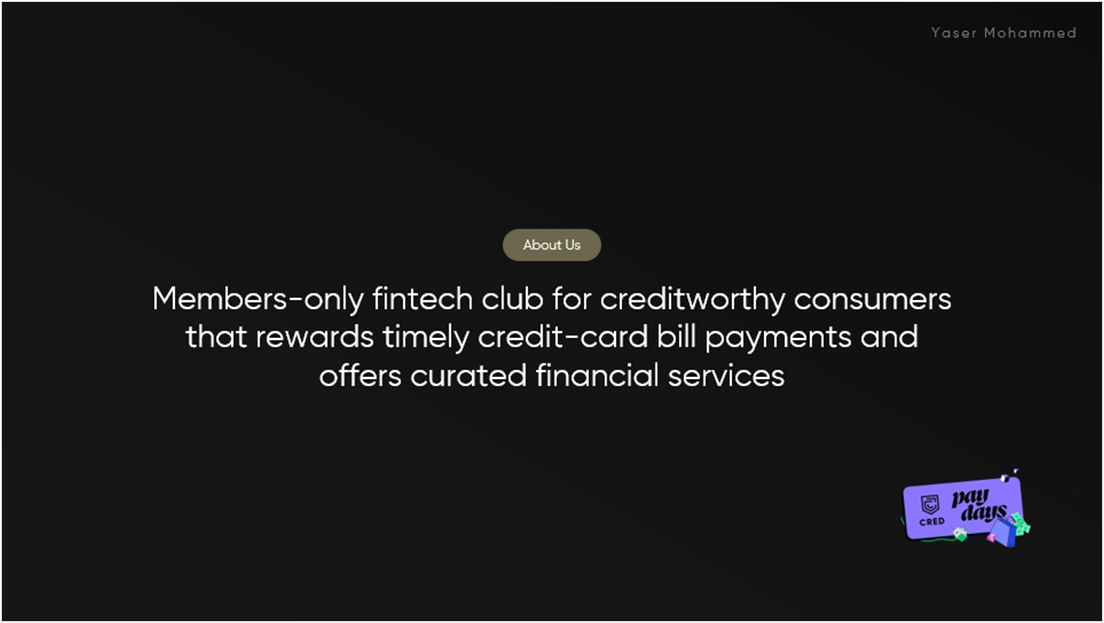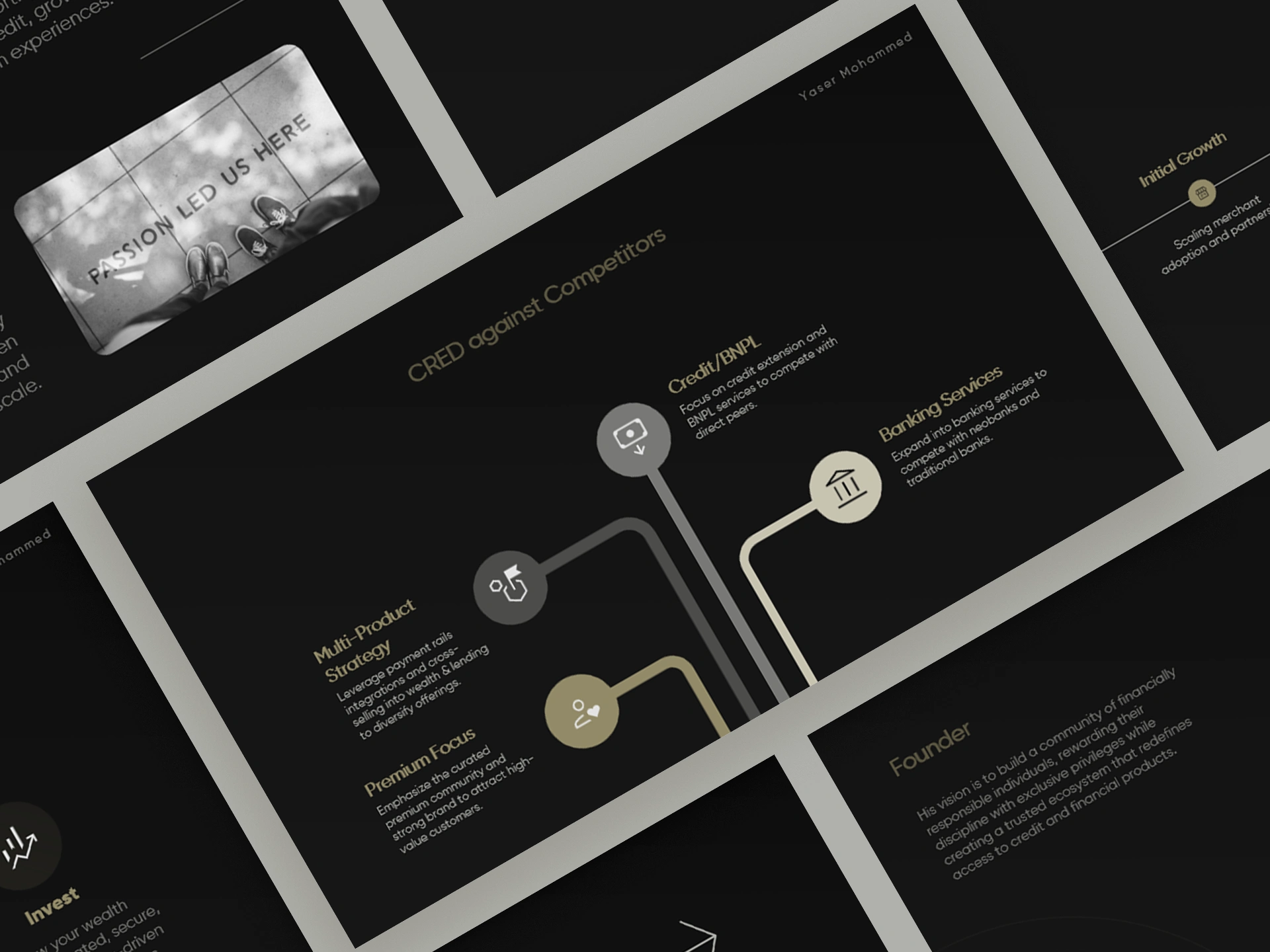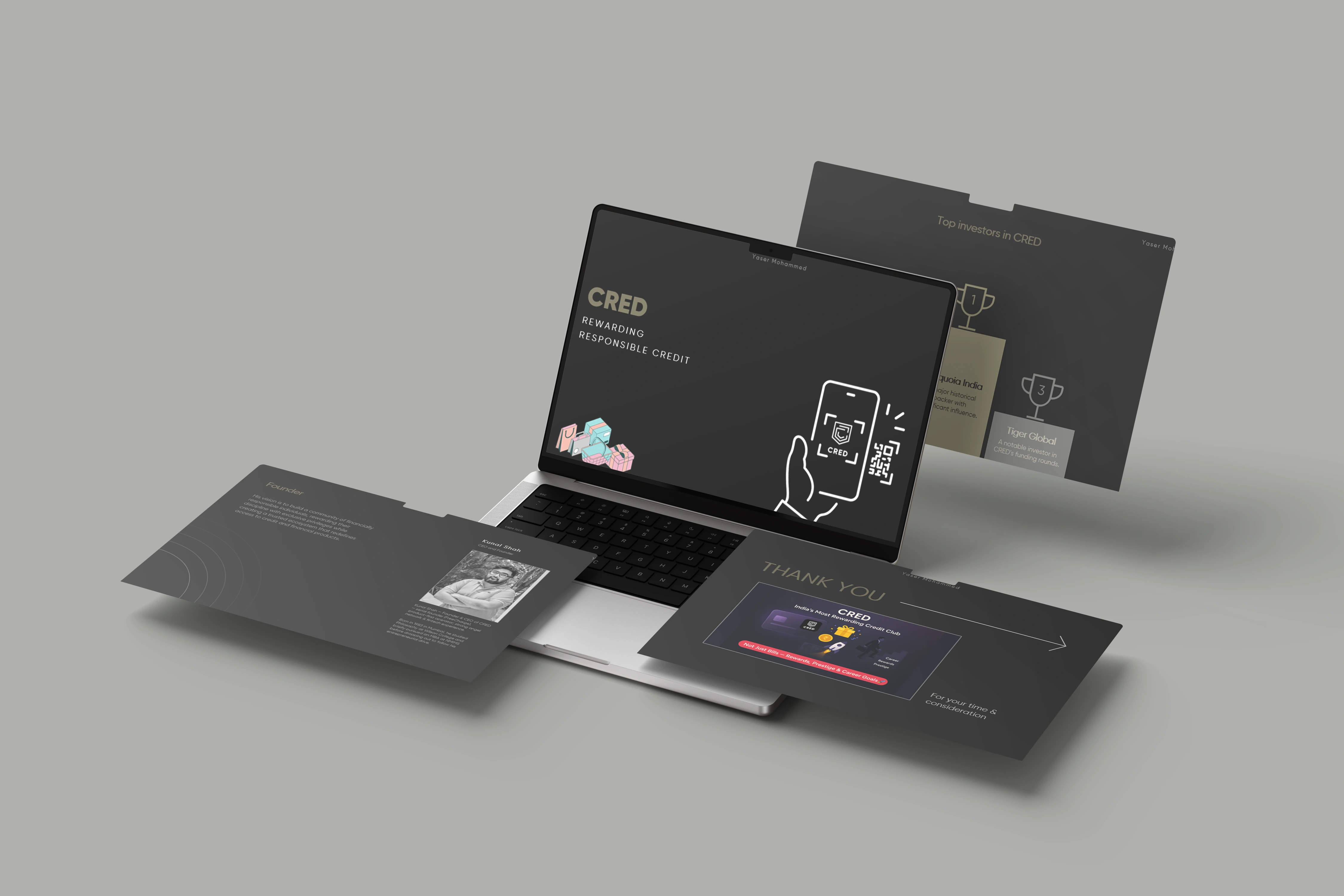 Designed a 17-slide investor pitch deck for CRED with a minimalist, data-driven design and clear storytelling to engage investors and reflect the brand.