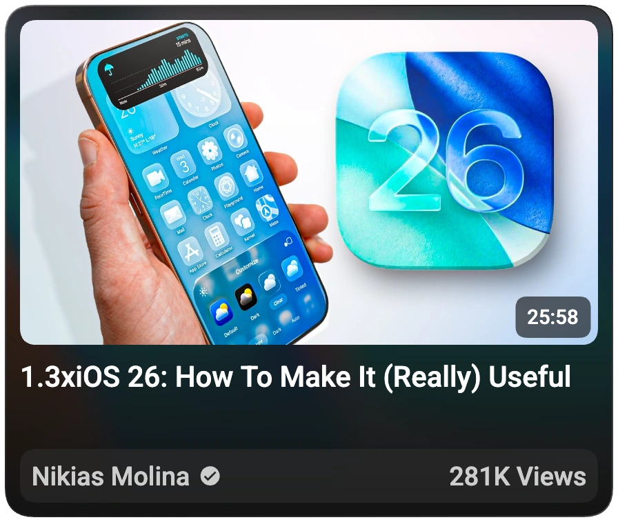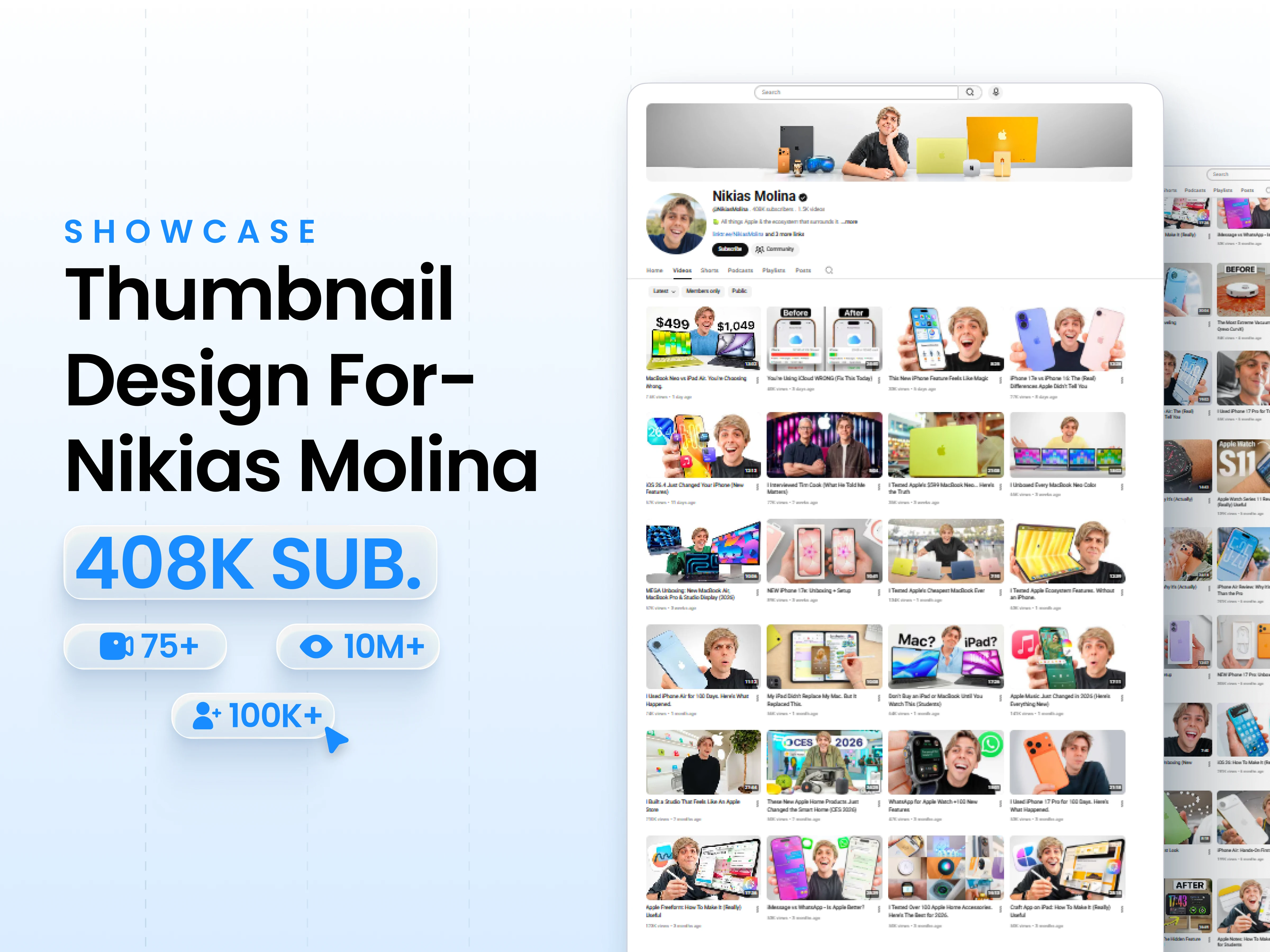 Worked across a full content system, not just individual uploads, building thumbnails designed to improve click-through rate while maintaining a clean, Apple-focused visual identity.