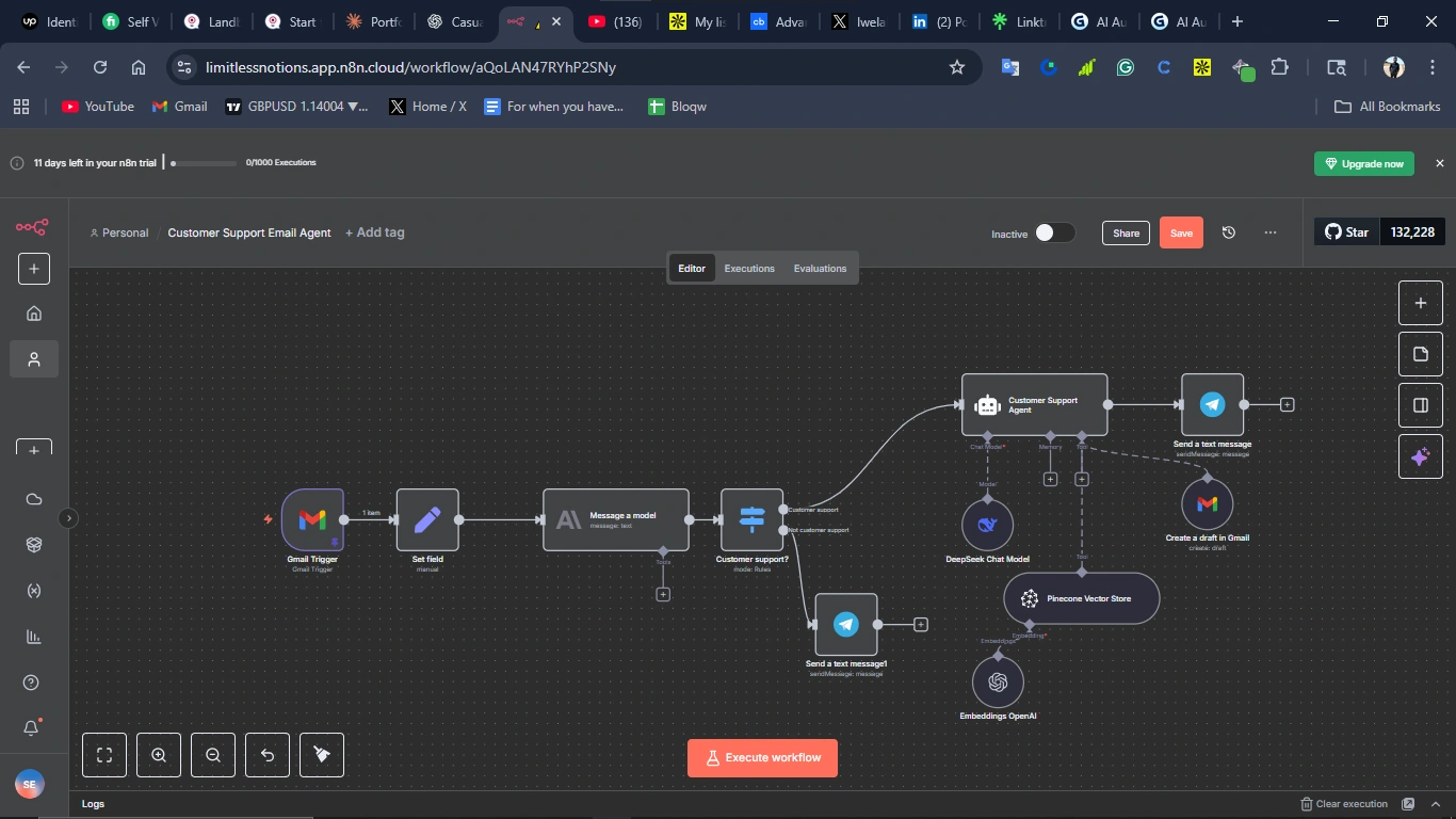 ✅ New emails trigger automation ✅ AI classifies if it’s a support request ✅ Draft responses are generated automatically ✅ Notifications are sent instantly