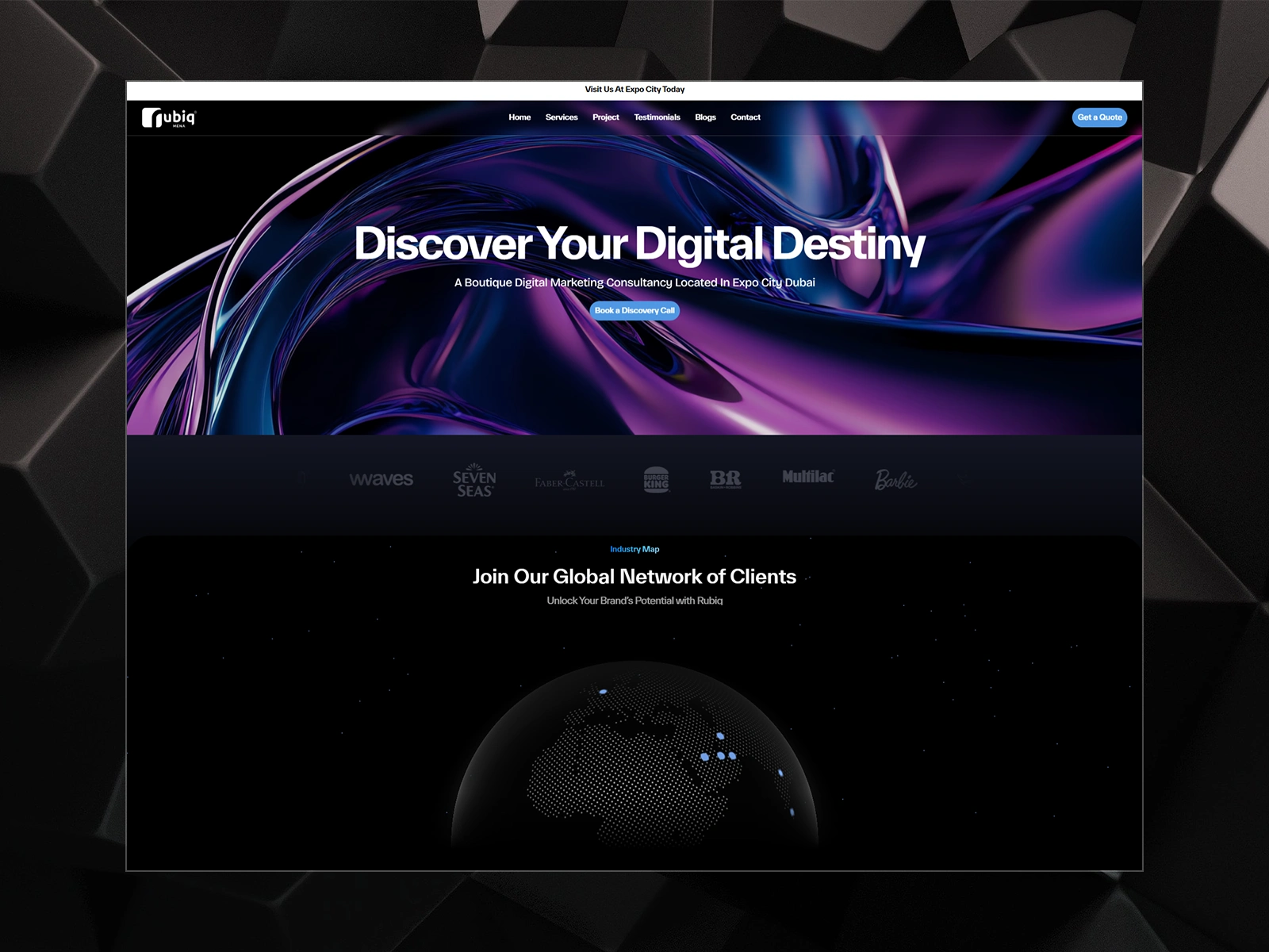 I created a dynamic, full-scale website for RUBIQ MENA, a leading digital marketing agency, designed to showcase their services, expertise, and client success stories. This custom-built website features a modern aesthetic, seamless navigation, and a responsive design to provide an exceptional user experience. Perfect for agencies looking to elevate their online presence and attract high-value clients.