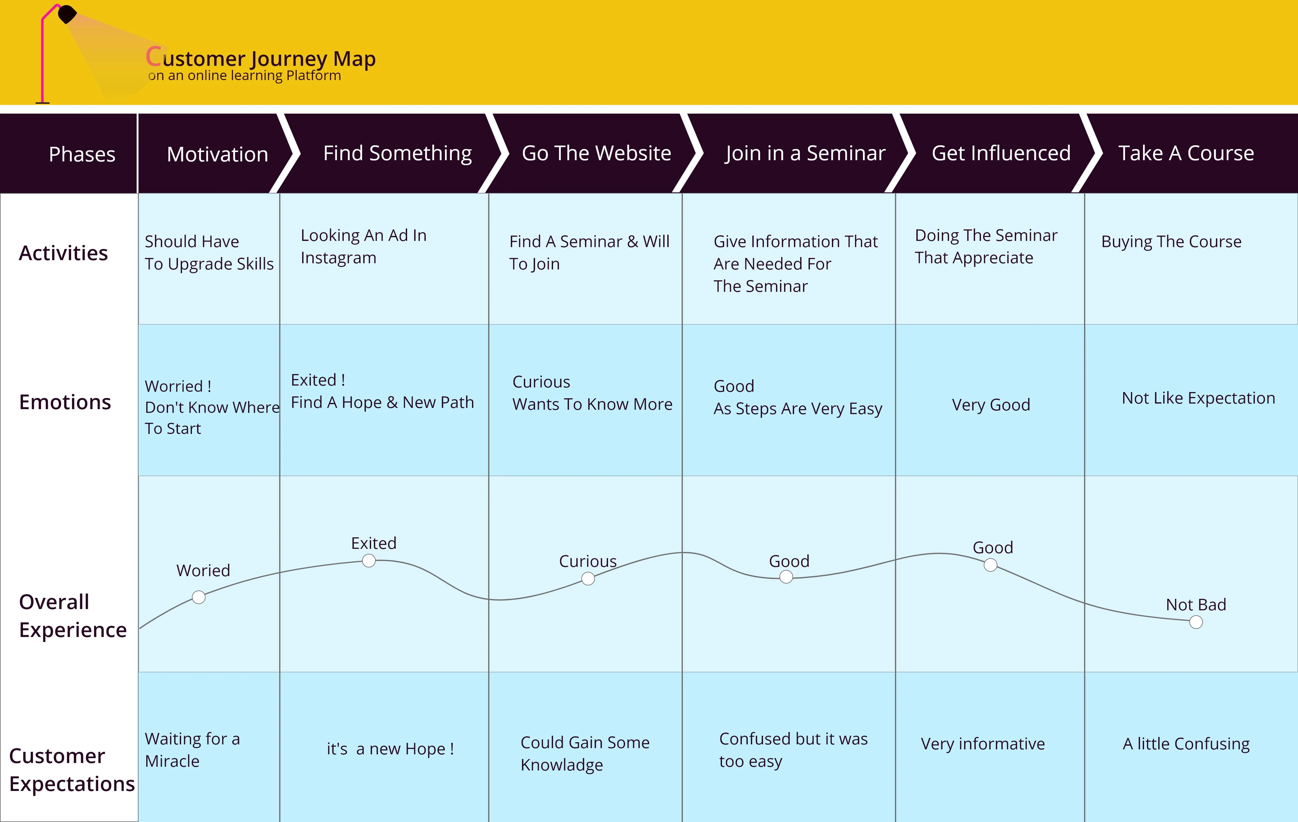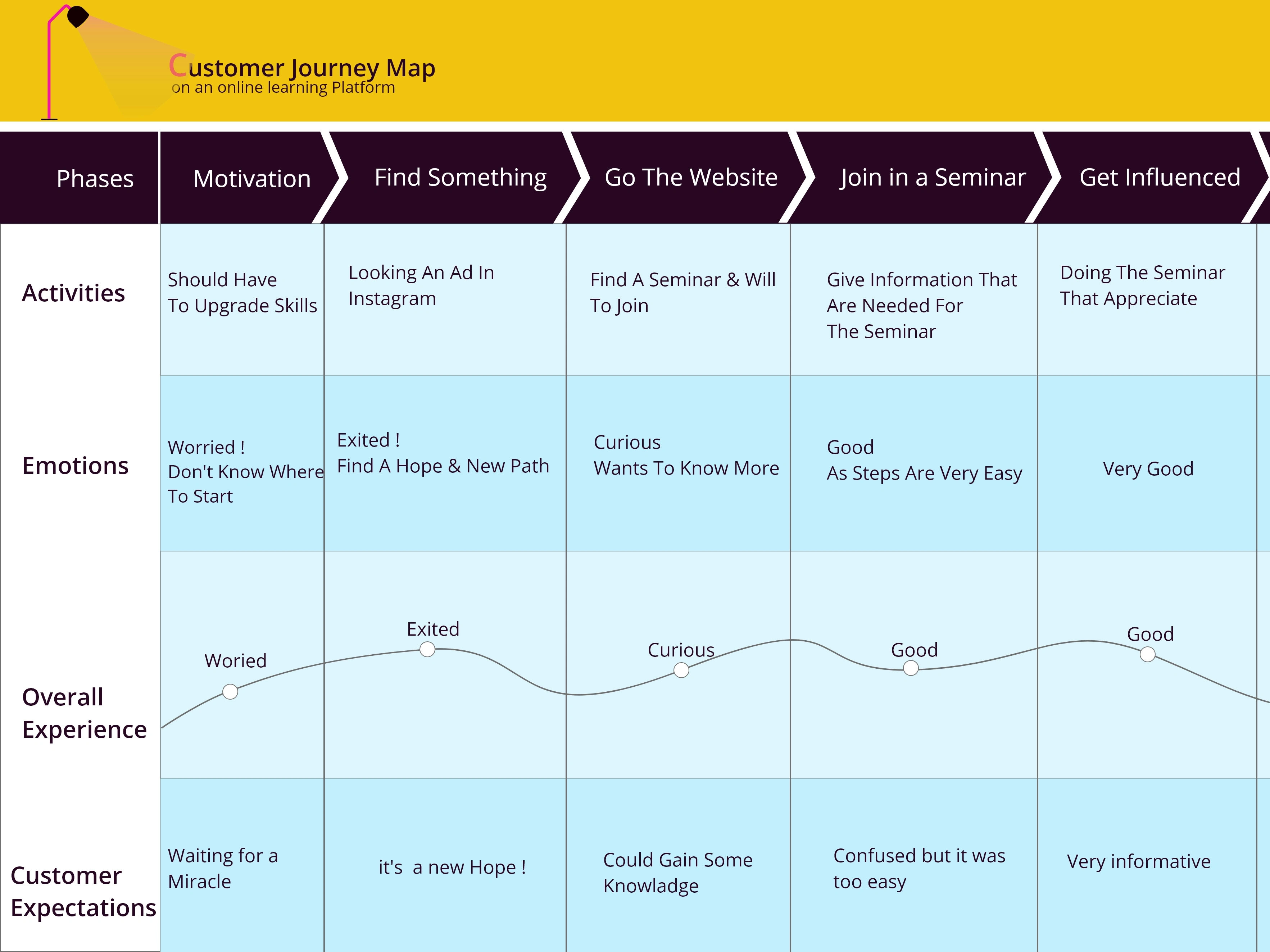 User journey map for an online learning platform
