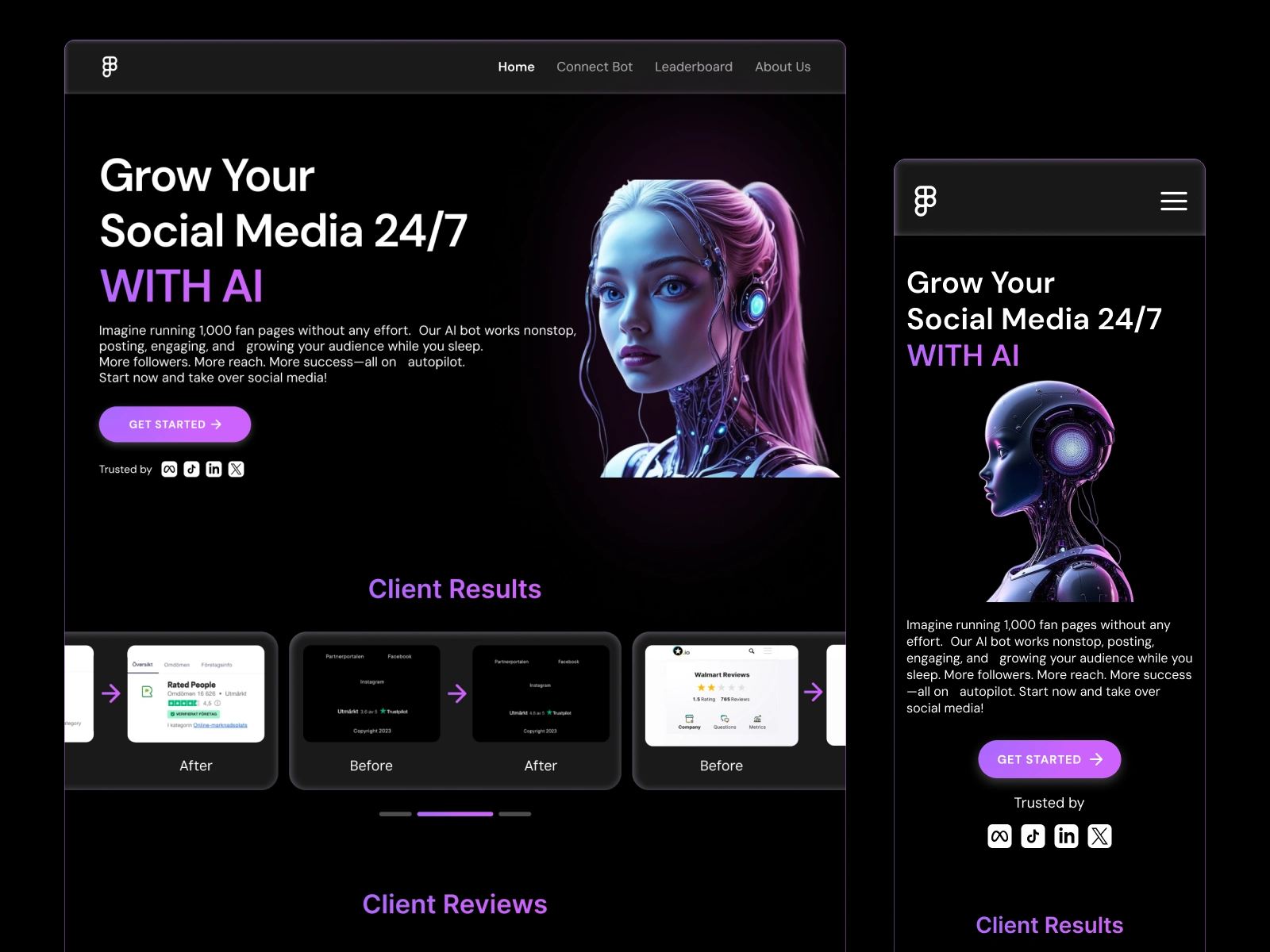 Designed a sleek, responsive website for Her AI, a beauty platform featuring AI-powered tools to manage and grow social media presence effectively.