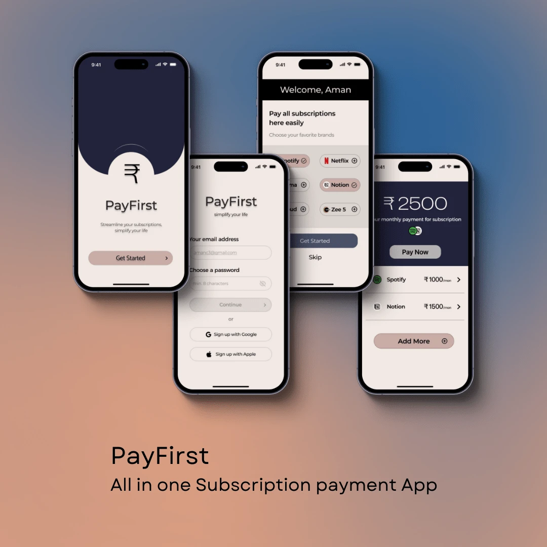 PayFirst: A subscription management app designed on Figma