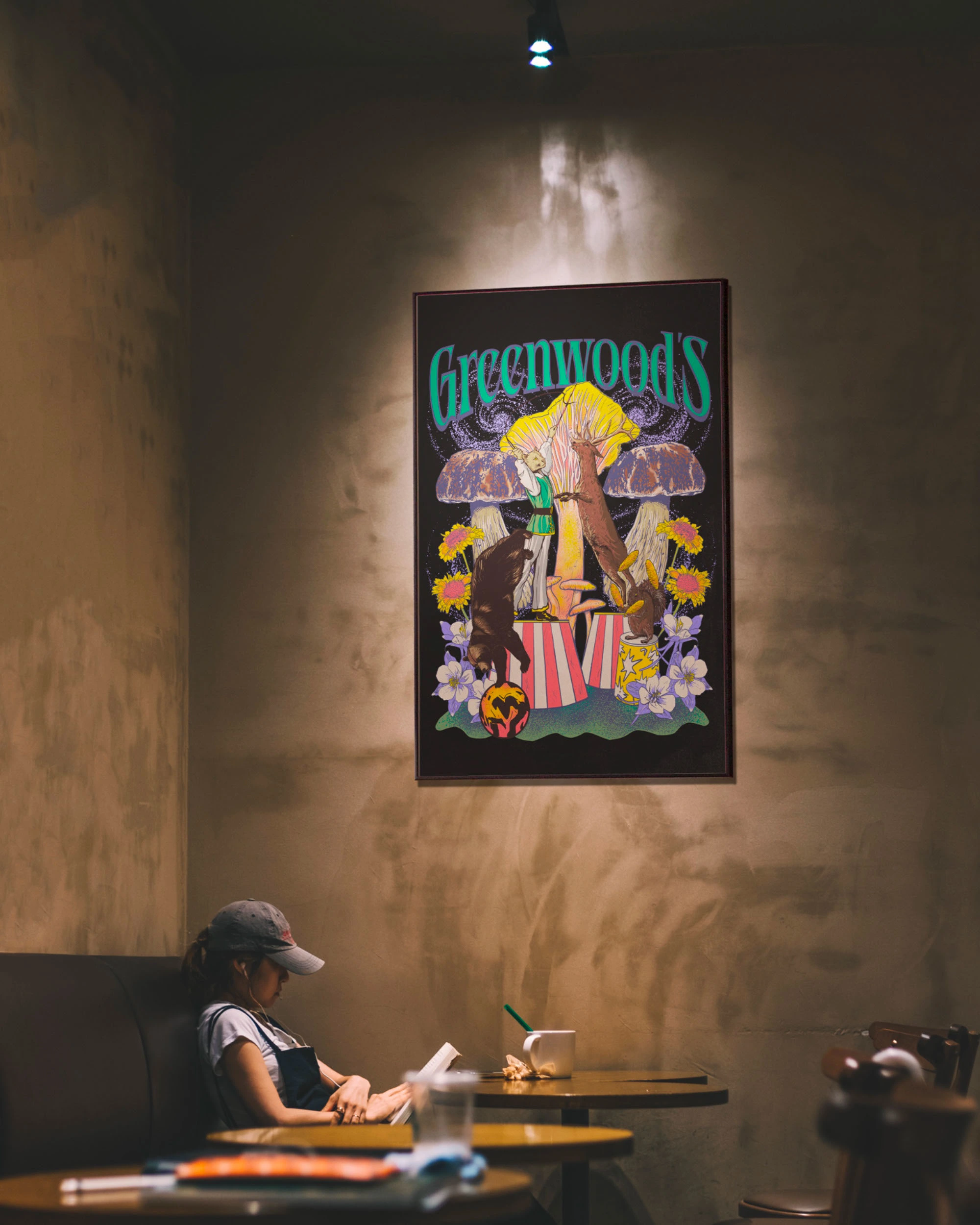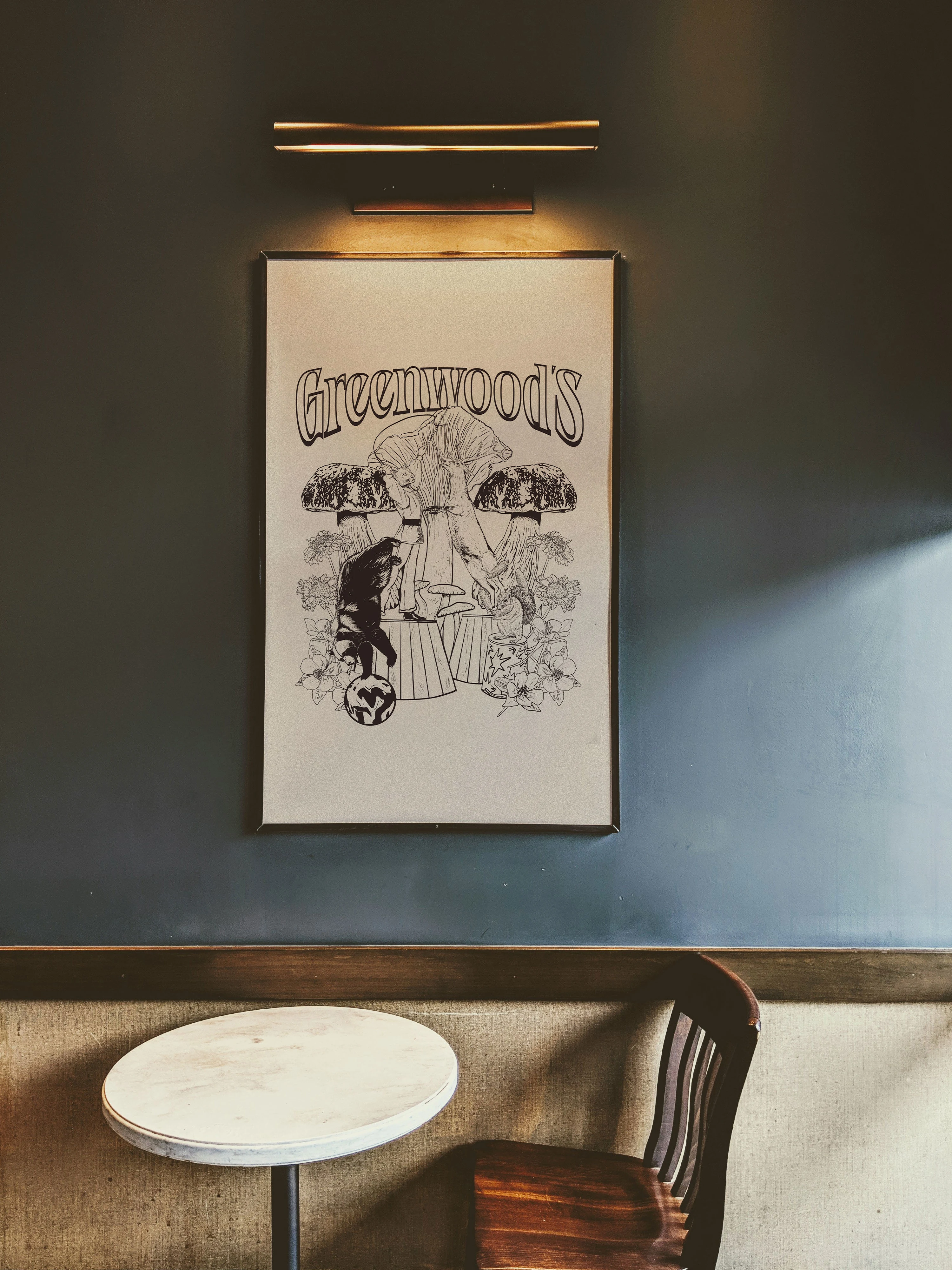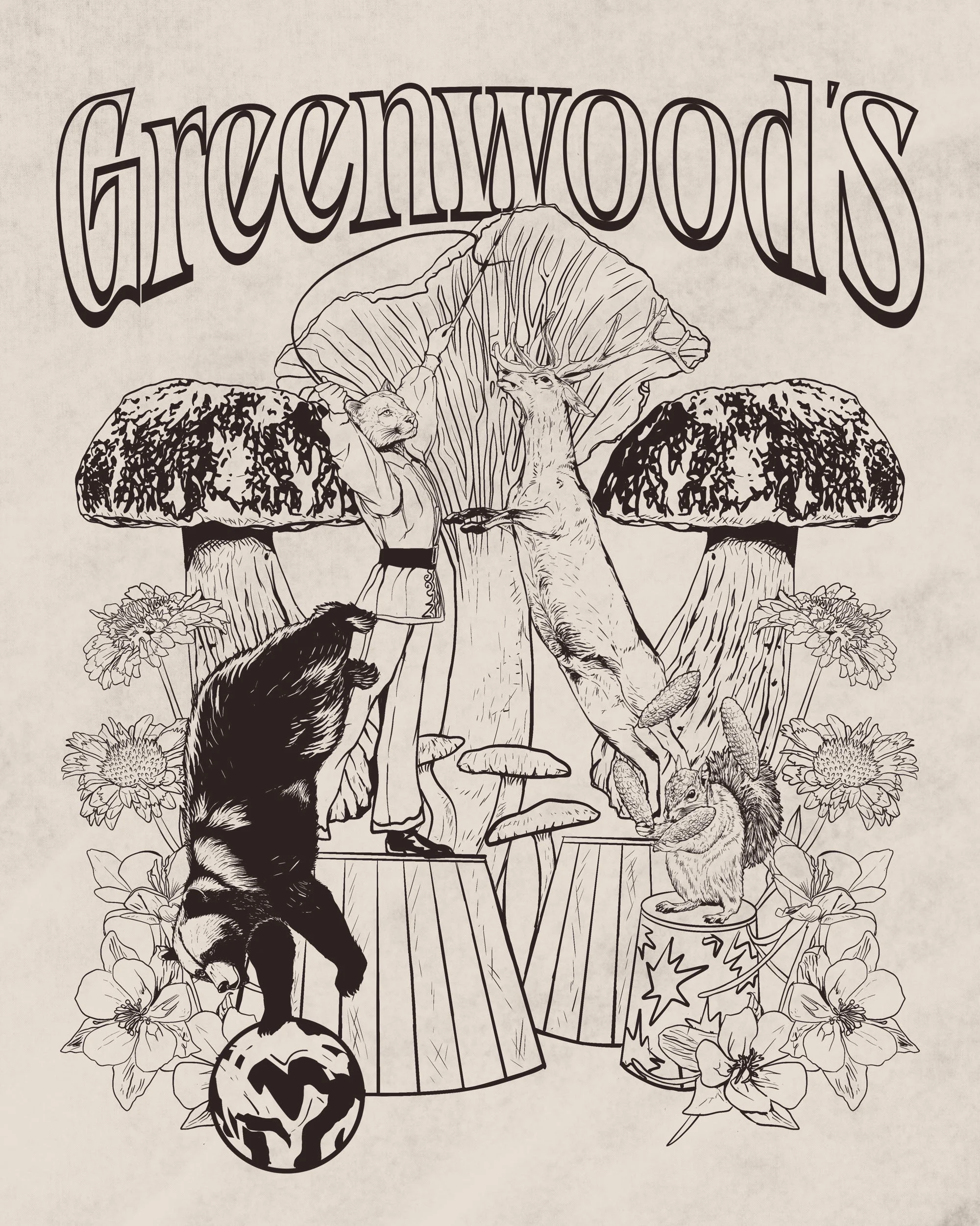 This illustrative project is for a restaurant in Ridgway, Colorado called Greenwood's. It’s for merchandise purposes, especially t-shirts and poster.