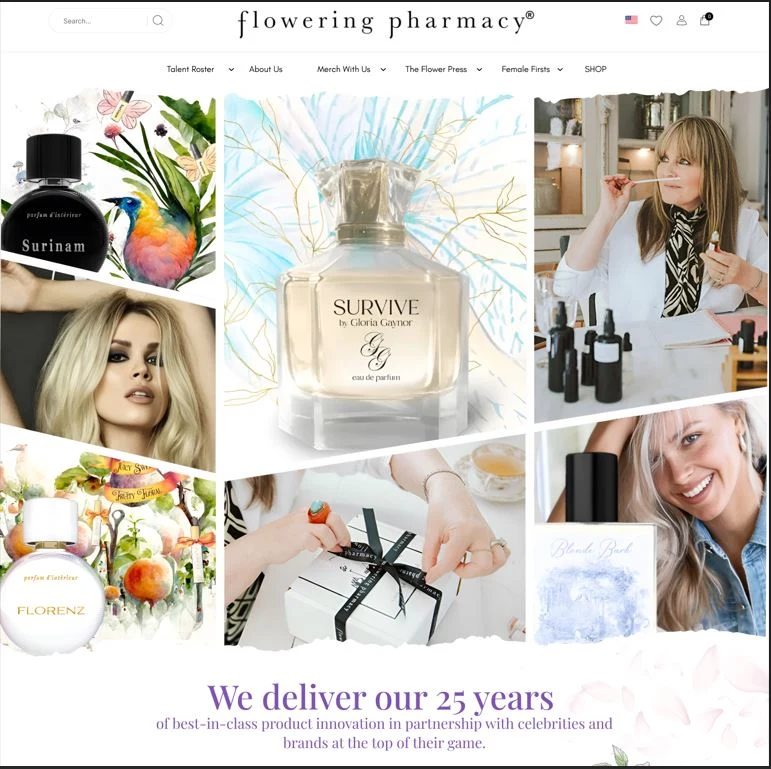 This design benefits the business by positioning Flowering Pharmacy as a premium, luxury fragrance brand while strategically guiding visitors toward purchase. The strong visual storytelling builds emotional connection, the celebrity and partnership sections reinforce credibility, and the structured product highlights with clear pricing and CTAs drive conversion. By blending elegance with eCommerce functionality, the homepage not only enhances brand perception but also increases engagement, trust, and sales potential.