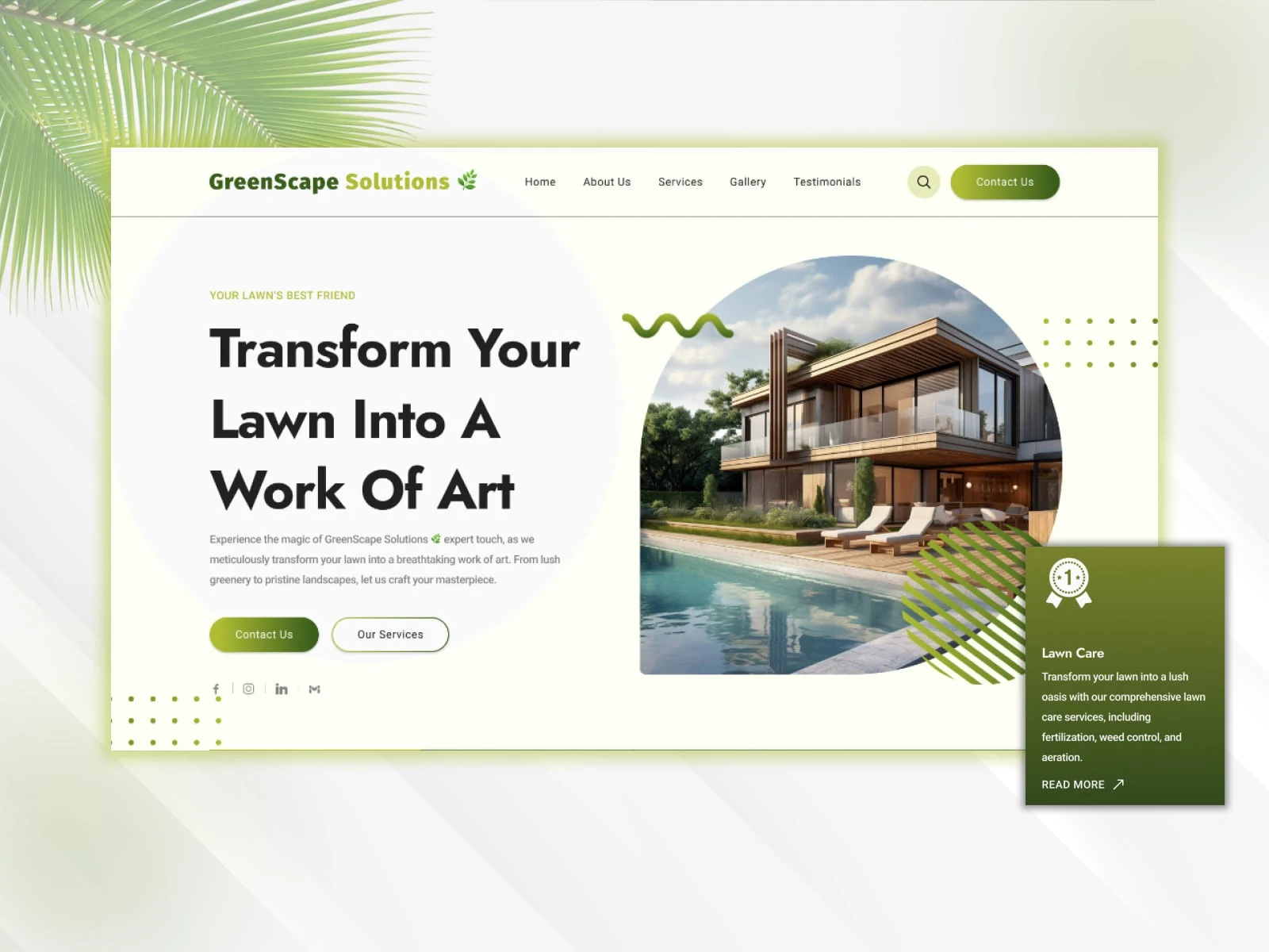 ๐ก Irresistible hero headline โ "Transform Your Lawn Into A Work Of Art" โ speaks directly to every proud homeowner