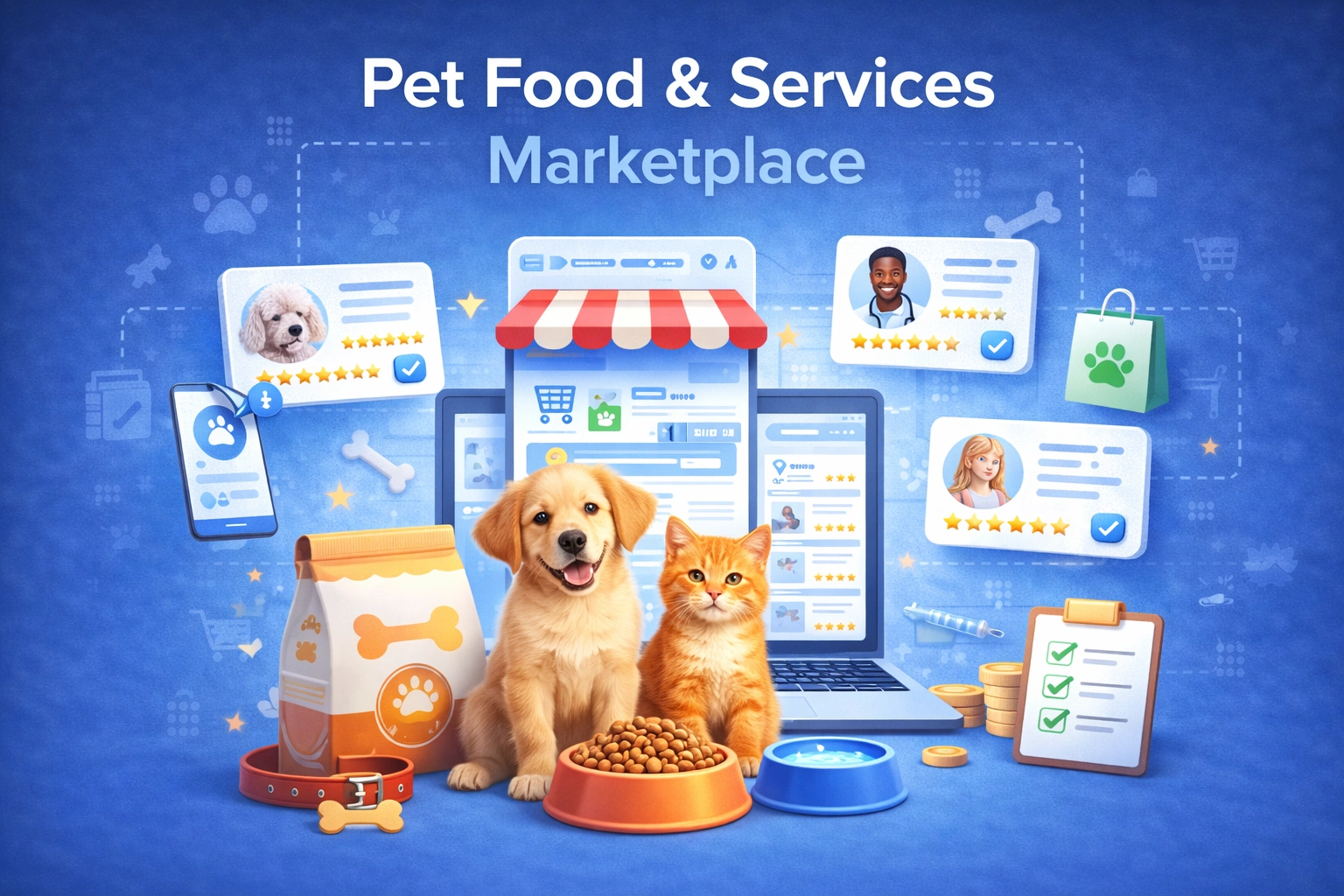 A marketplace mobile application allowing users to book pet services and purchase pet-related products from nearby providers.