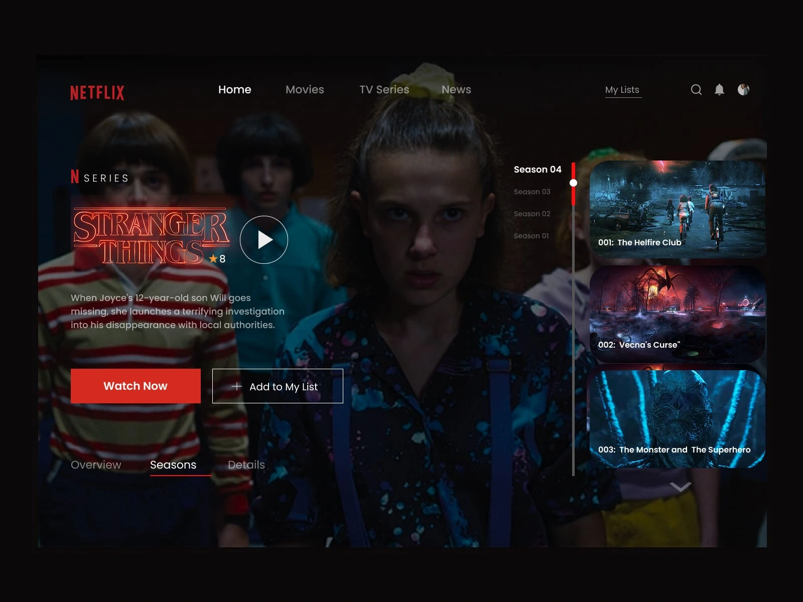 Redesigned the Netflix series interface to heighten user engagement and streamline episode navigation. Focused on intuitive content discovery.