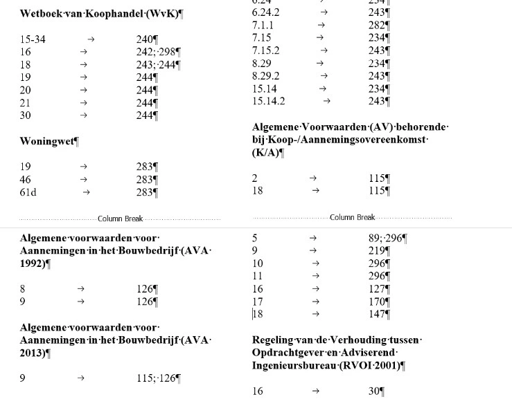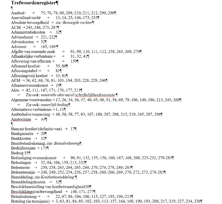 For a big Dutch academic publisher I was requested to created multiple index files for a renowned and authoritative series on Dutch civil law