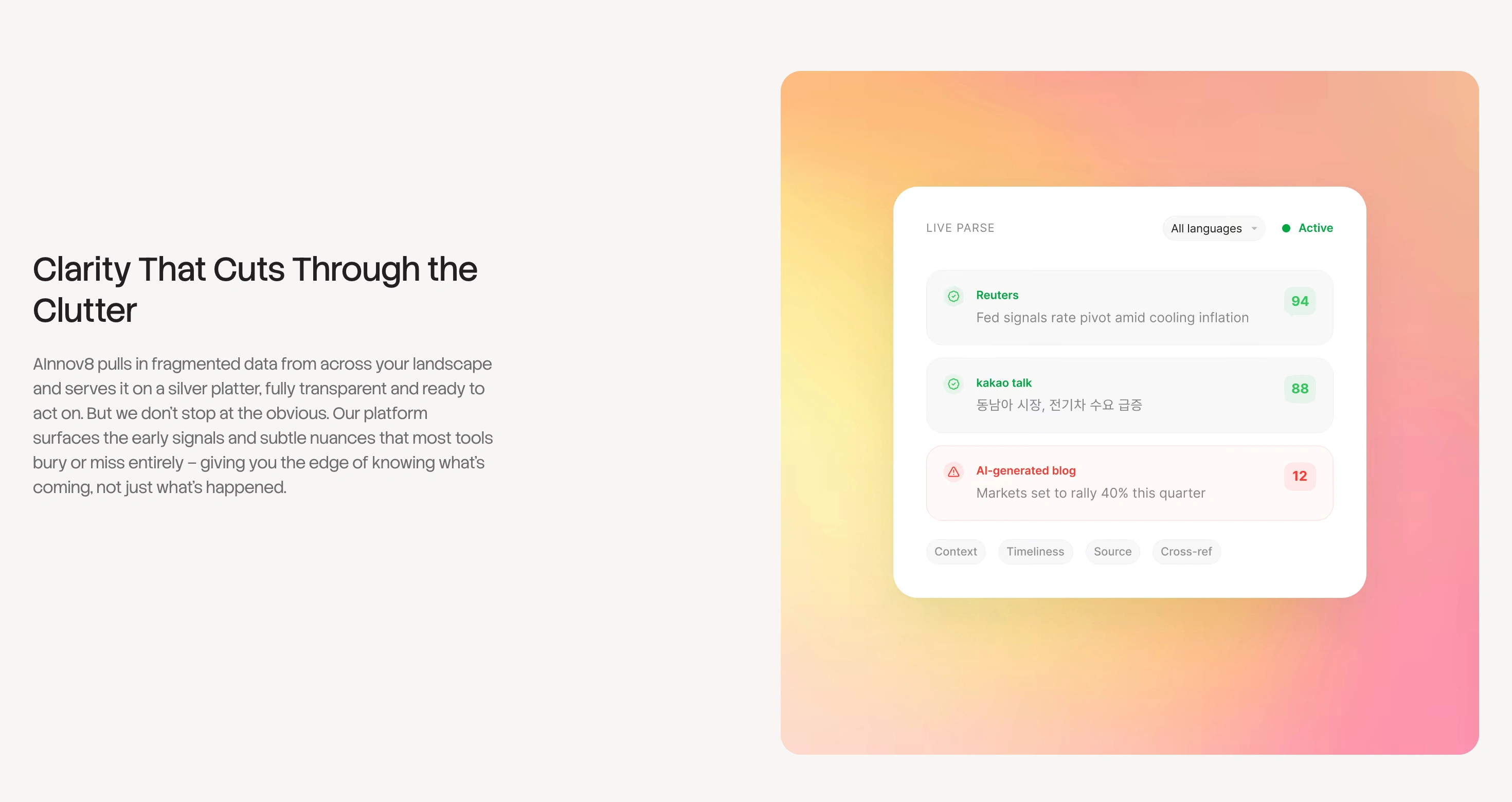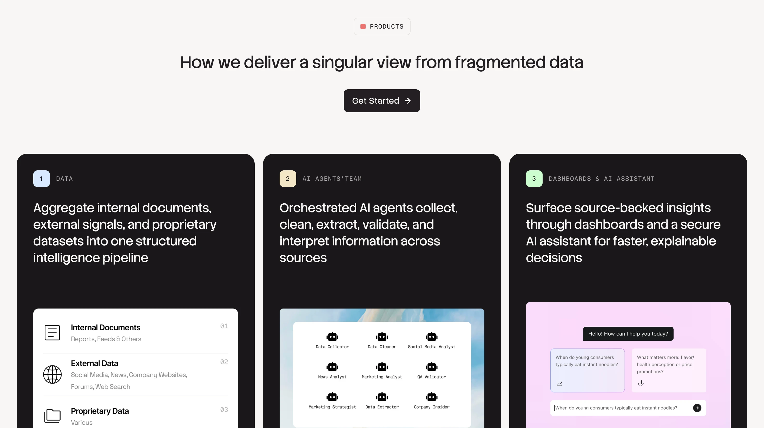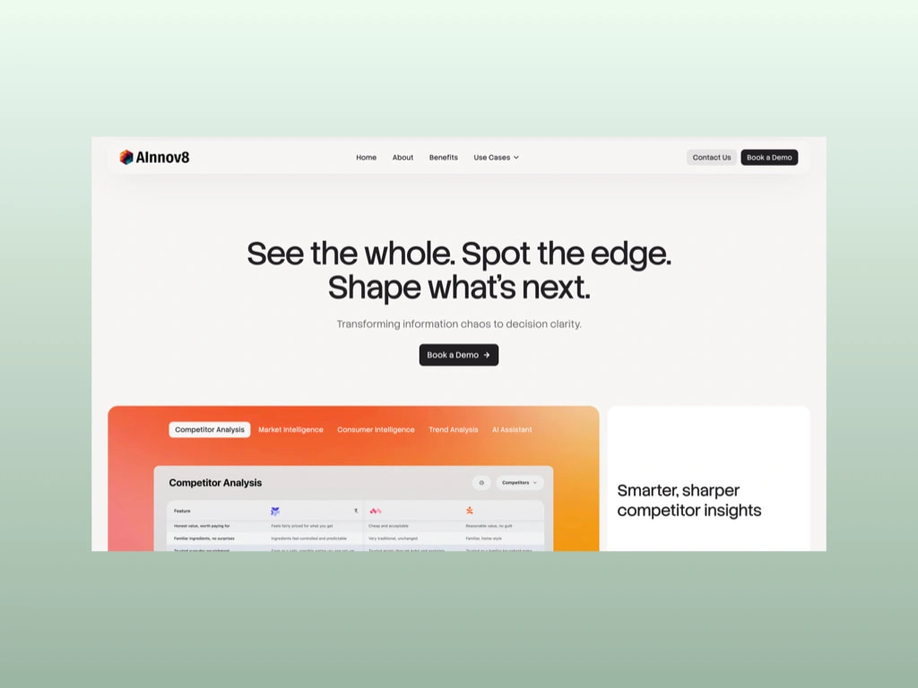 Designed a website for an enterprise AI intelligence platform that pulls messy data from different sources and turns it into decision-ready insights.