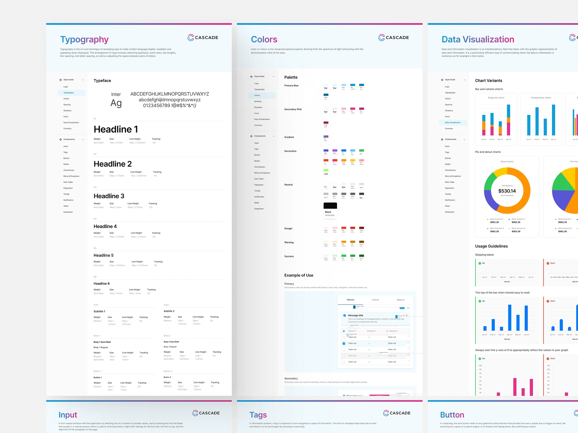 We don’t want to suffer from design inconsistencies and cost so much time in the future. So, while I implemented the app’s visual style into a lot of pages, I also created and provided a base for the consistent UI as Cascade acquired new features. In other words, I created a proper and documented design system.