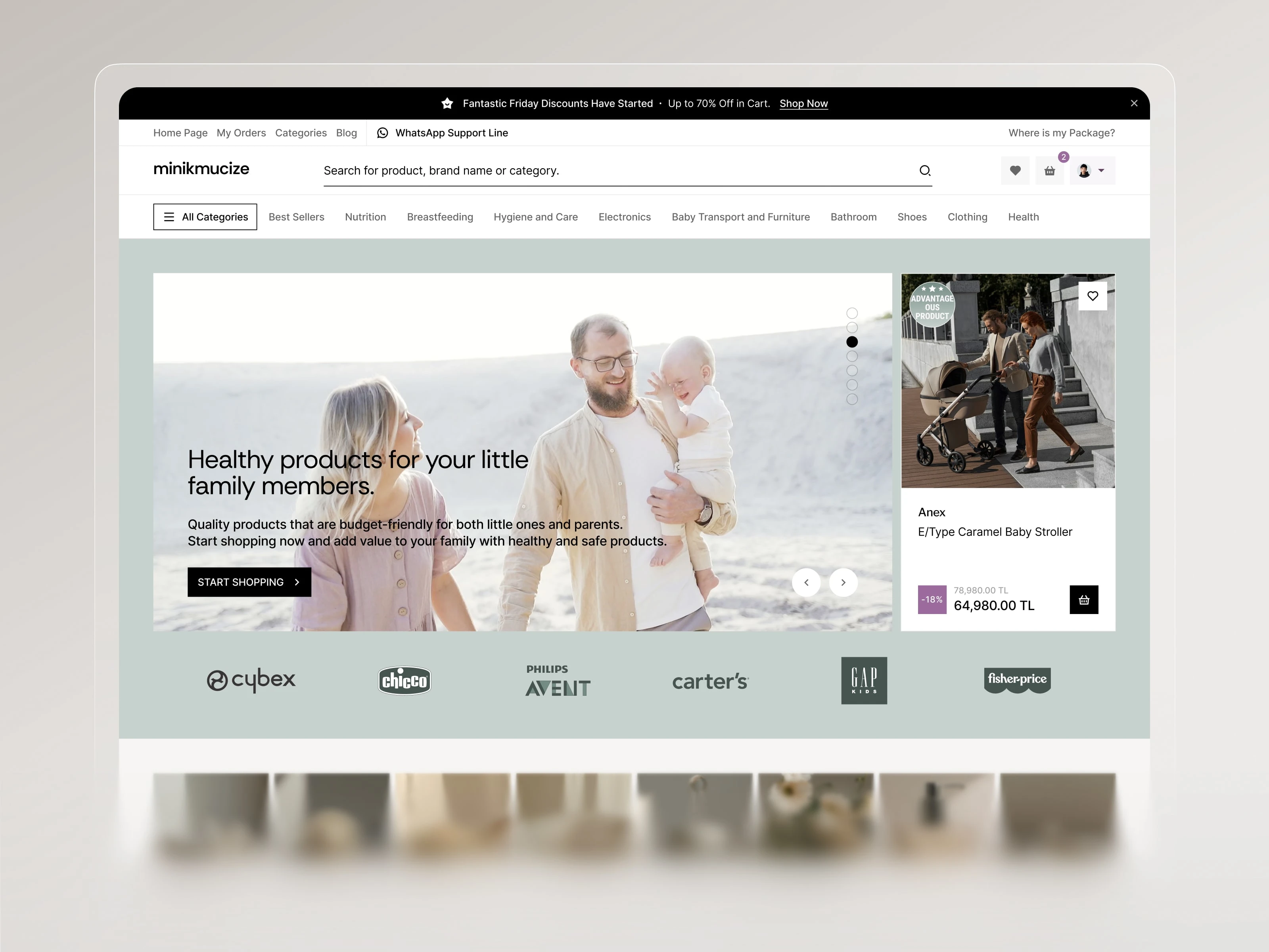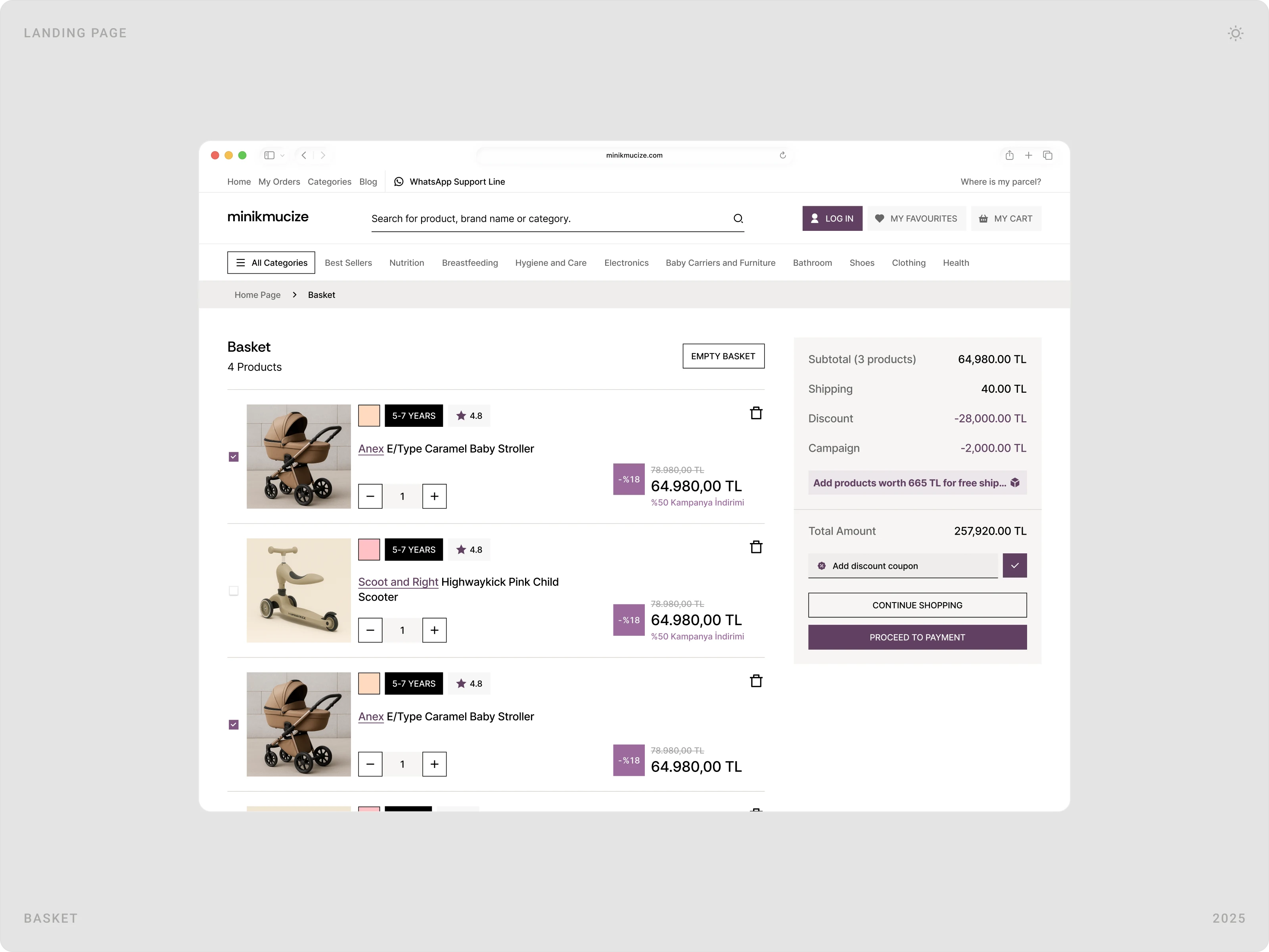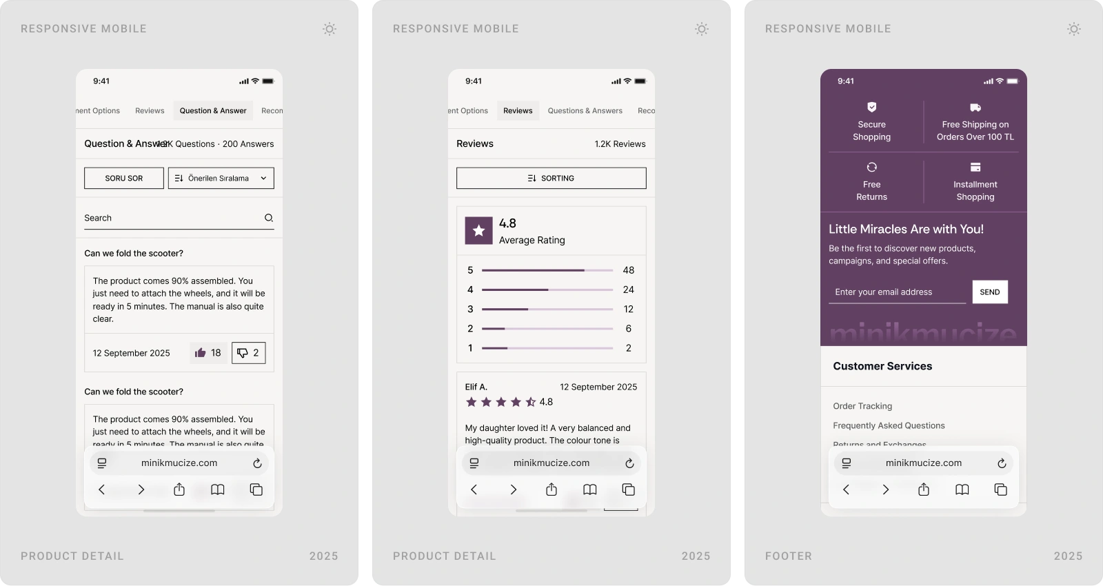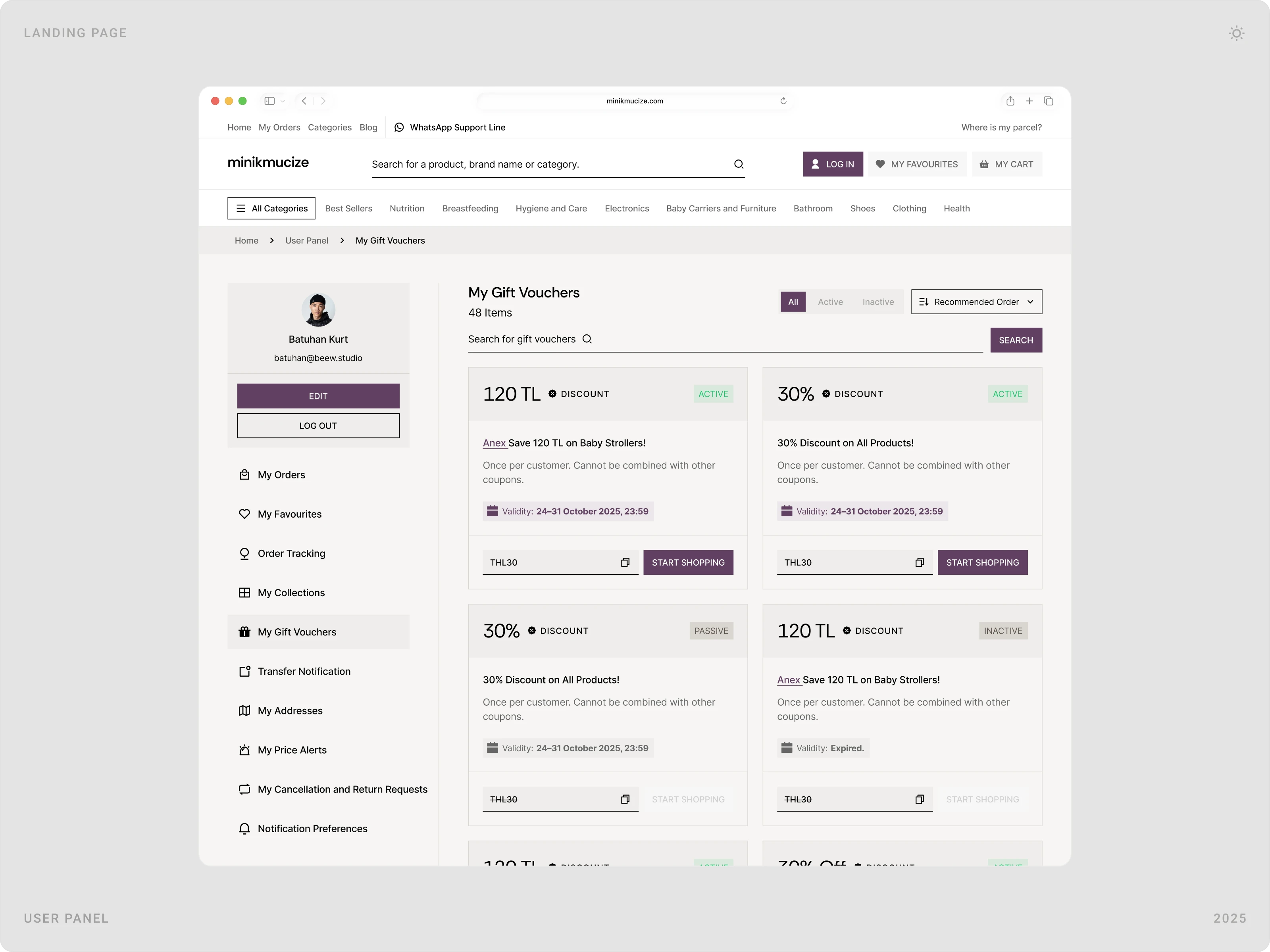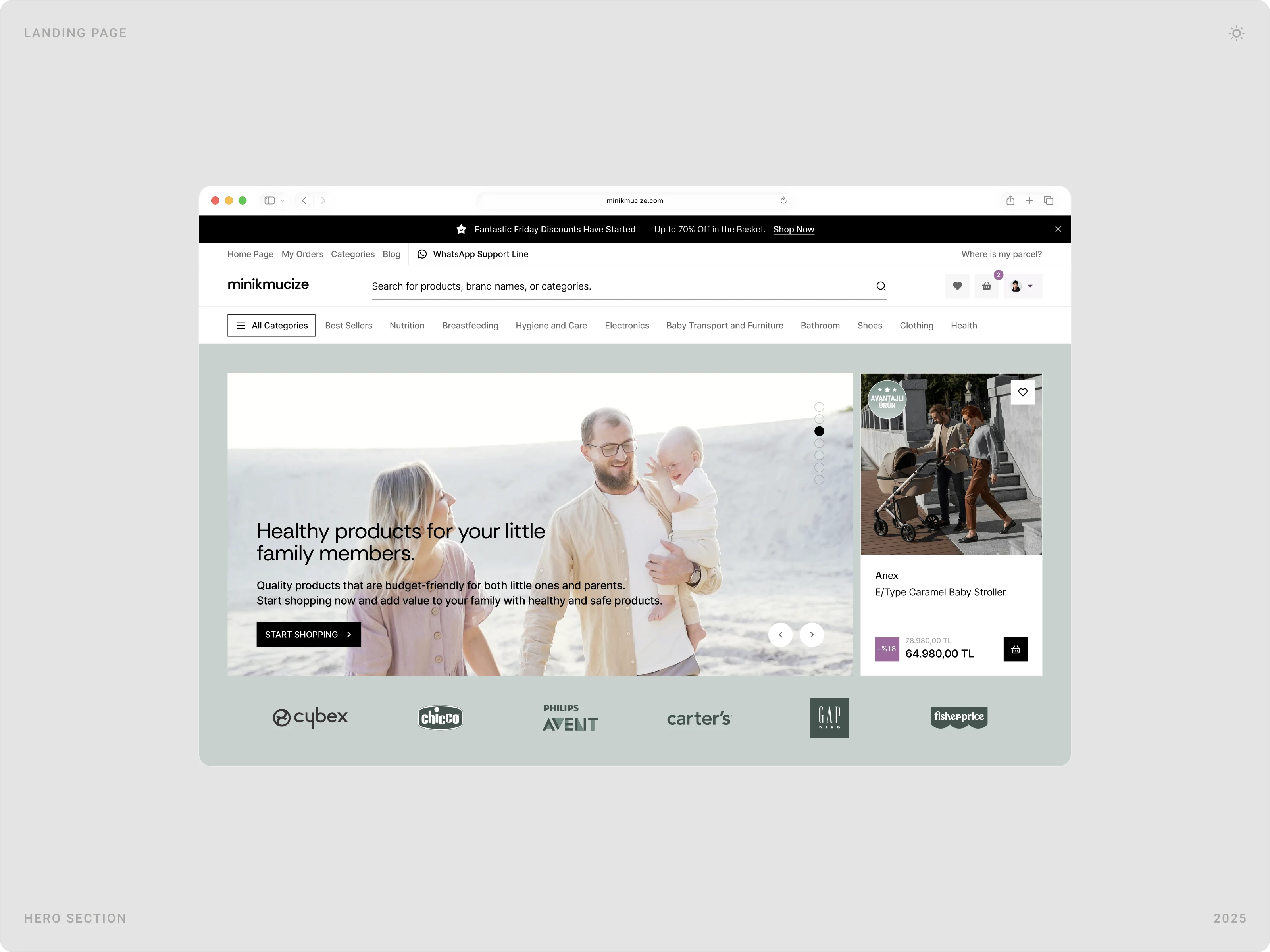 Beew Studio redesigned Minikmucize’s e-commerce UI/UX to achieve a more premium, modern, and feminine brand presence while improving conversion. Using a soft, niche color palette and a clean layout system, we rebuilt key shopping flows to reduce clicks and increase trust for health-focused mom, baby, and maternity products. The scope covered ~60 responsive pages, including homepage, category and product pages, cart & checkout, and the user account.