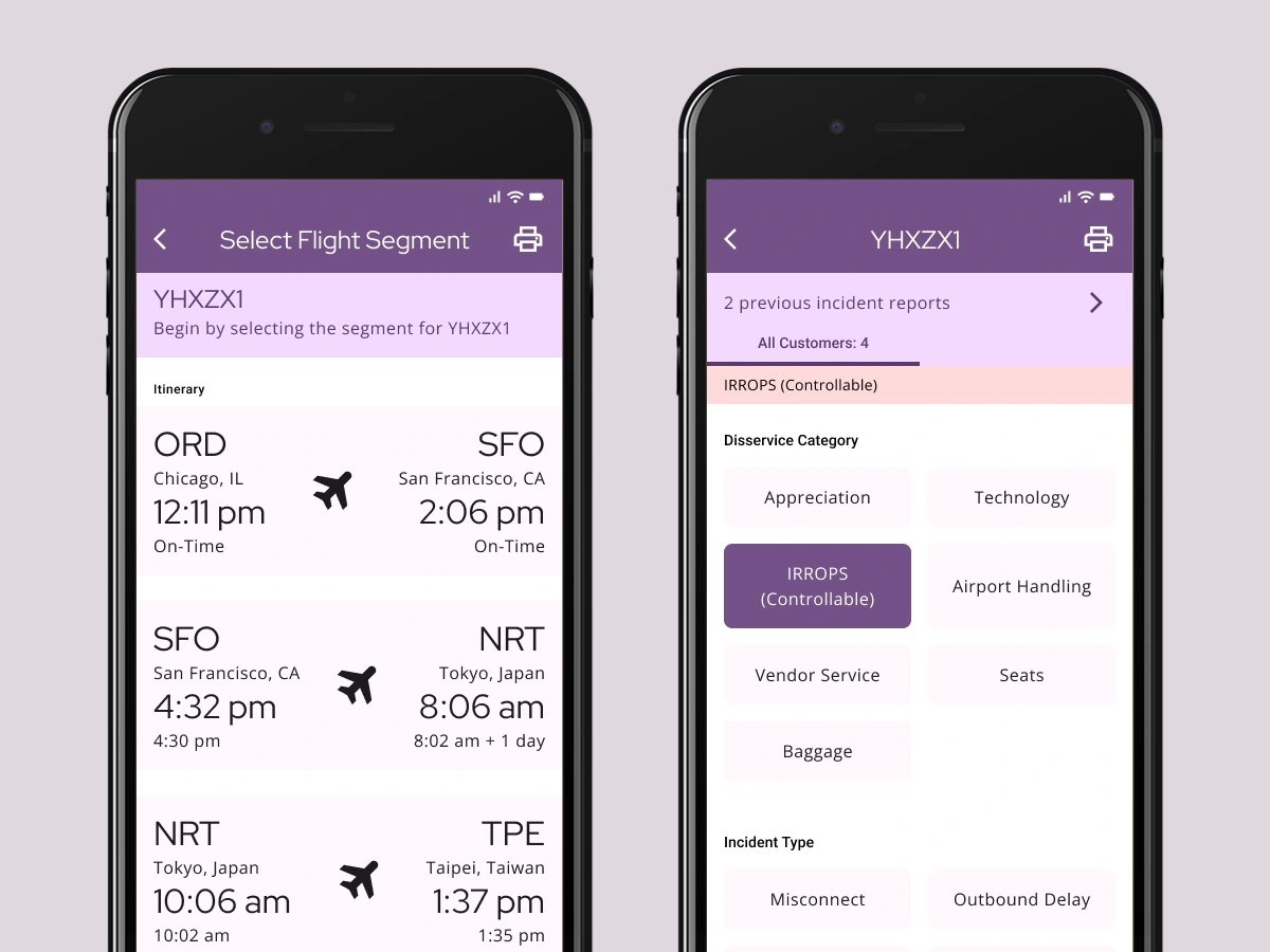 Following a highly publicized customer incident, I led UX strategy and design for CareNow, a mobile tool enabling airline agents to issue real-time compensation and de-escalate disruptions directly at the gate.