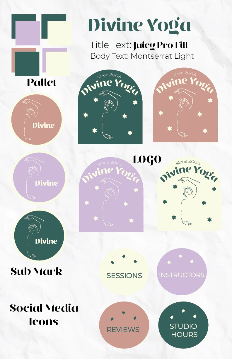 Divine Yoga now has a beautifully designed logo and sub-mark. Furthermore, 4 unique social media icons, a strong sense of branding, and model sheet for future needs.