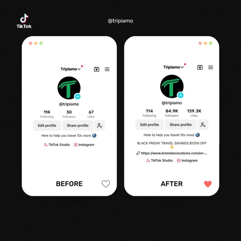 Grew Tripiamo's TikTok and Instagram followers significantly in 3 weeks.